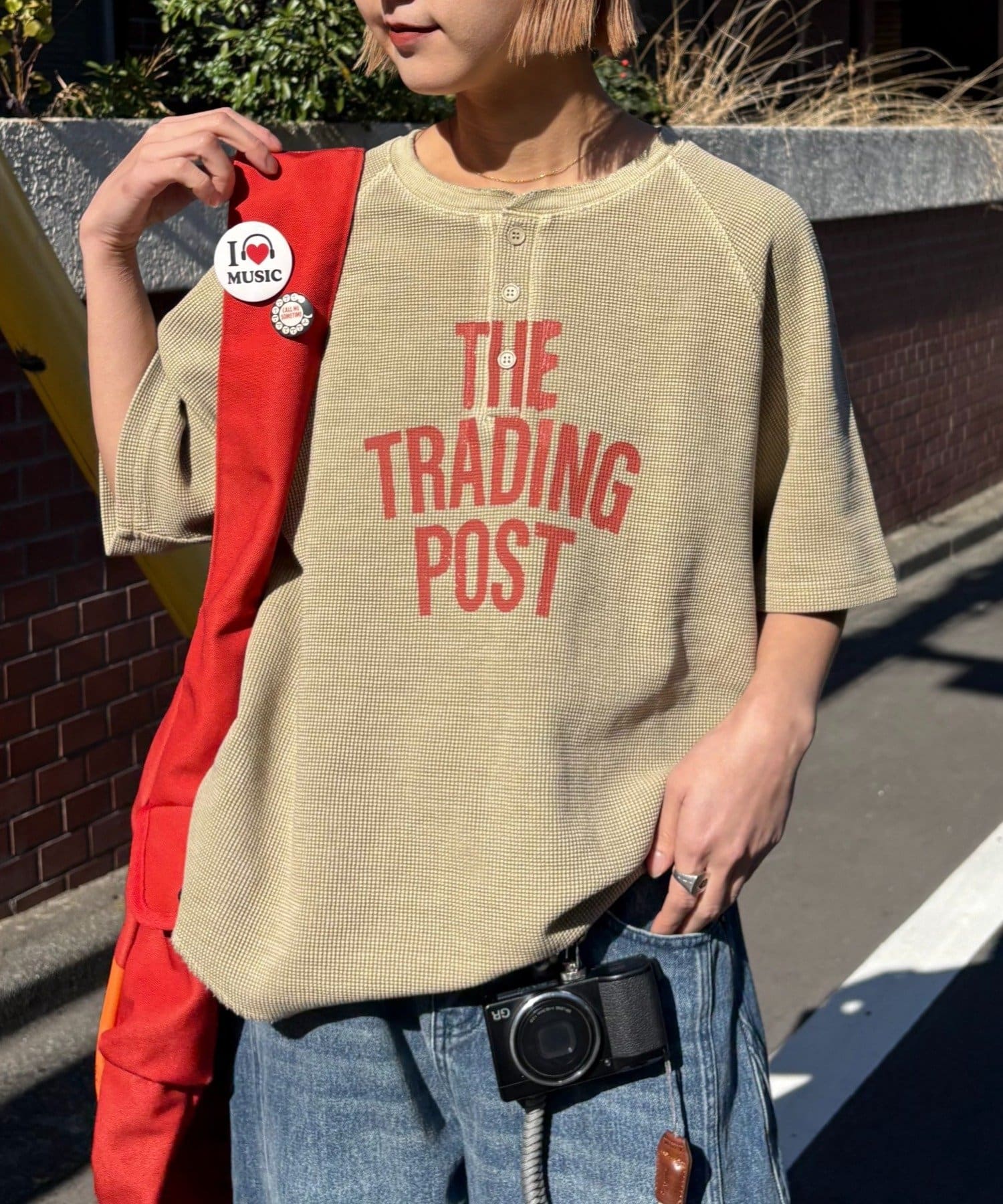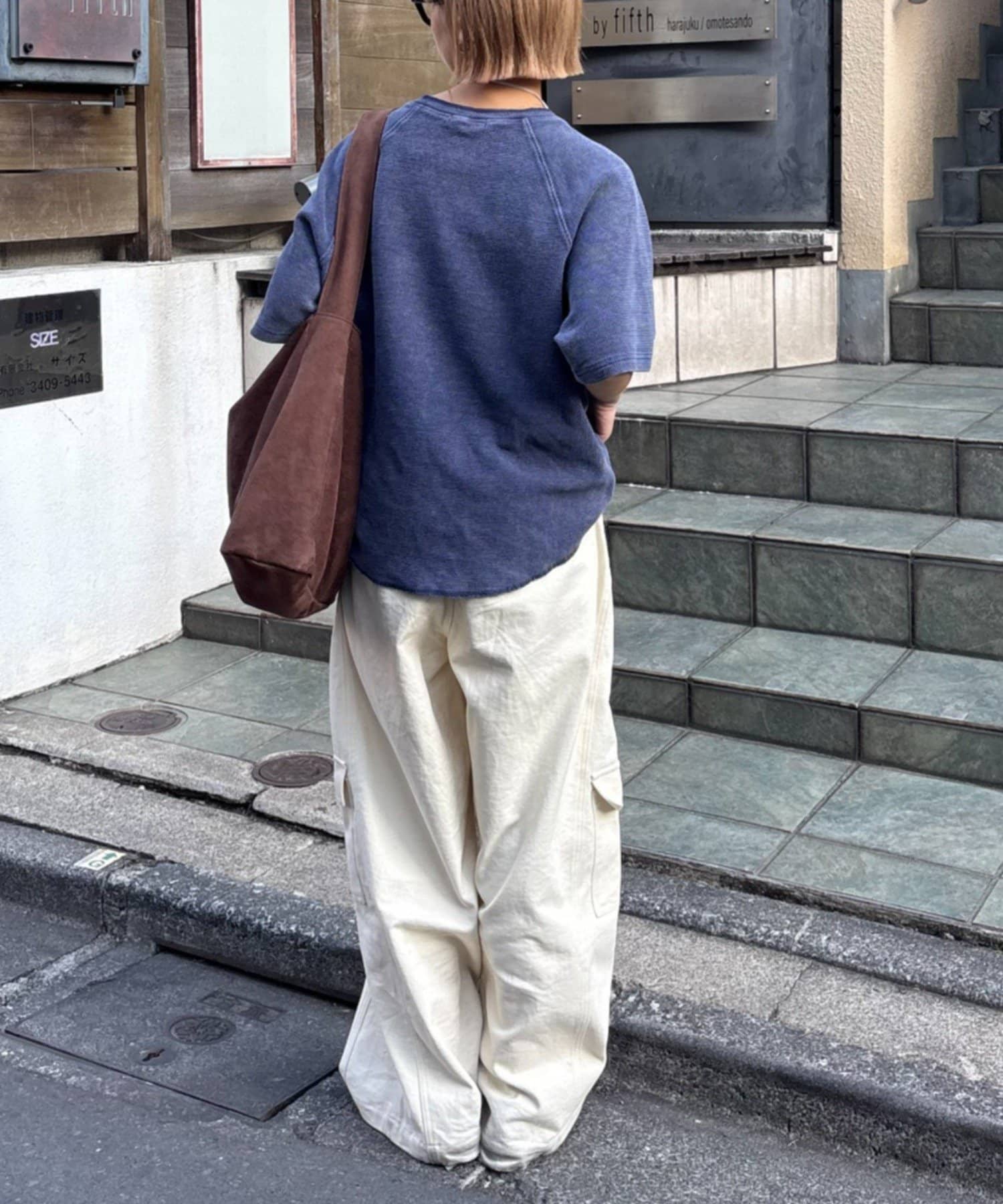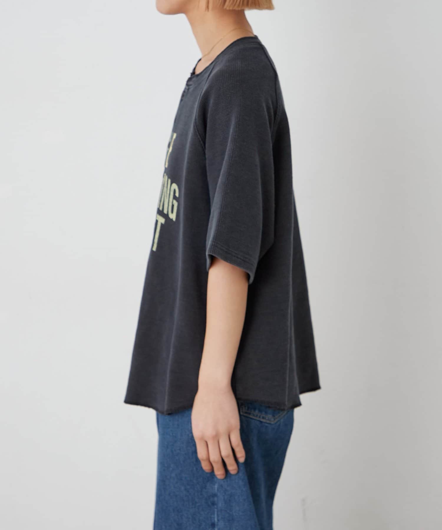 【UNISEX】ピグメント加工ラグランワッフルヘンリーTEE