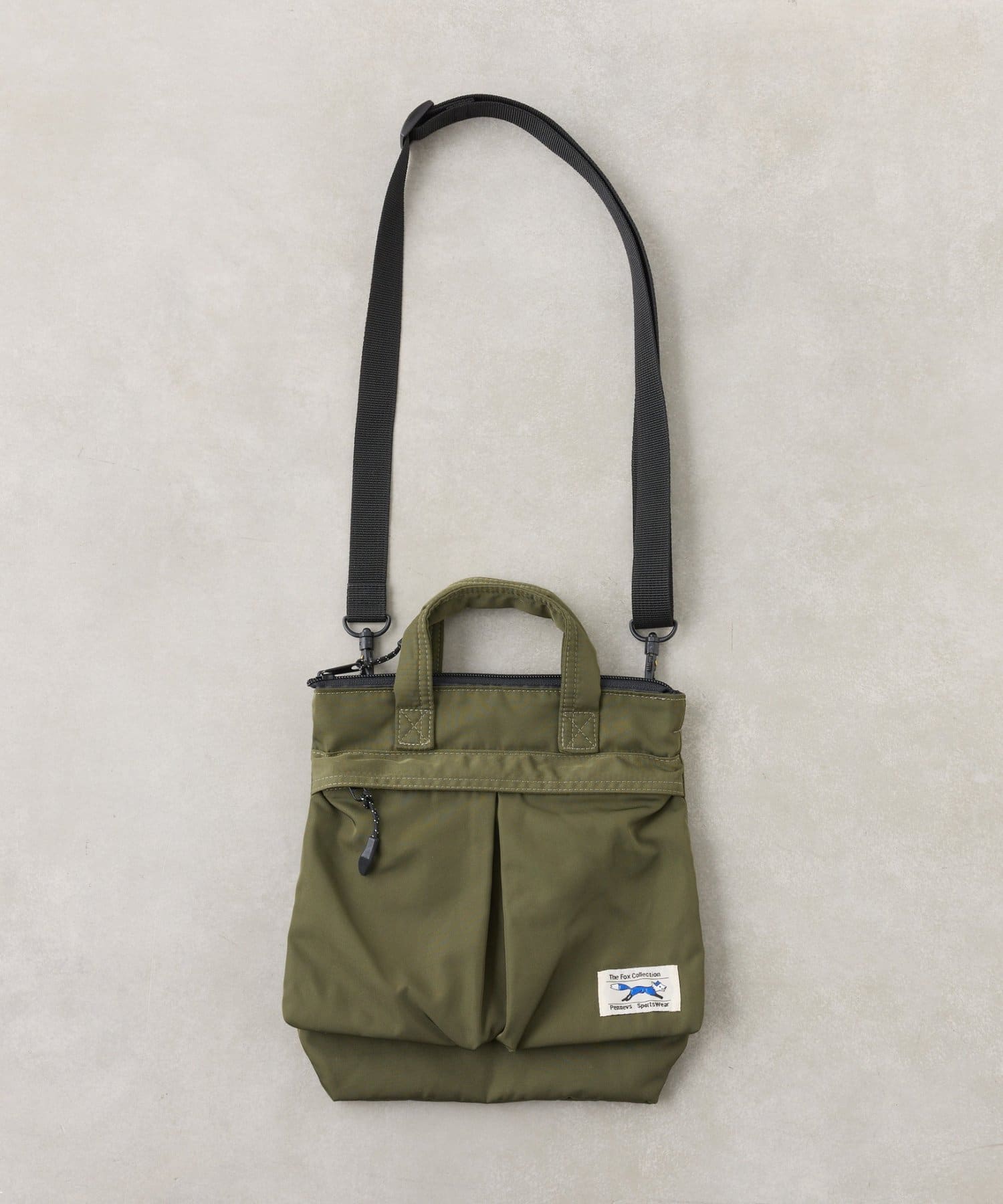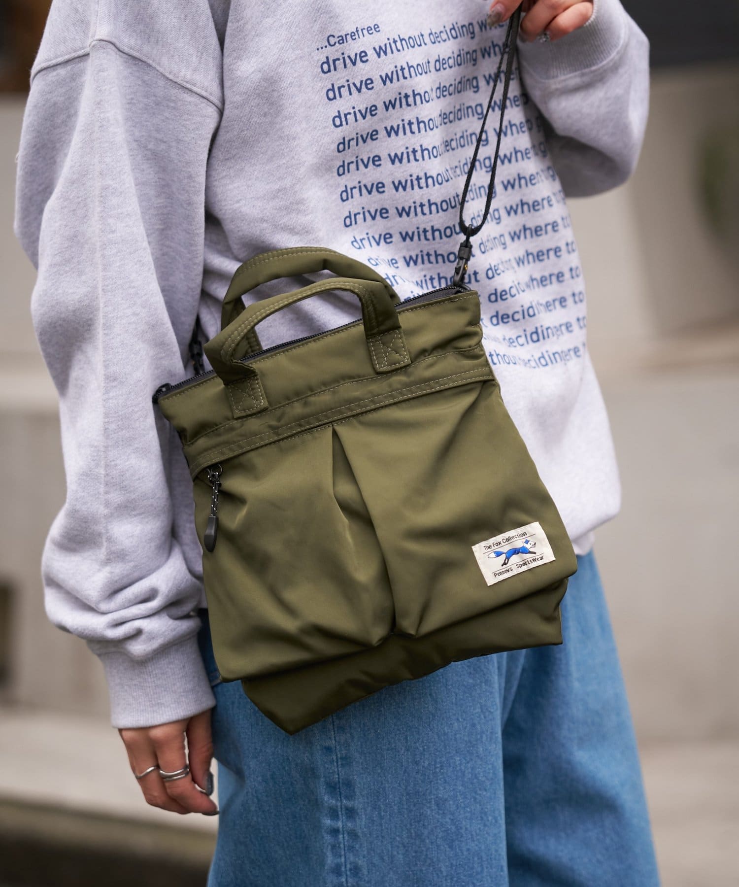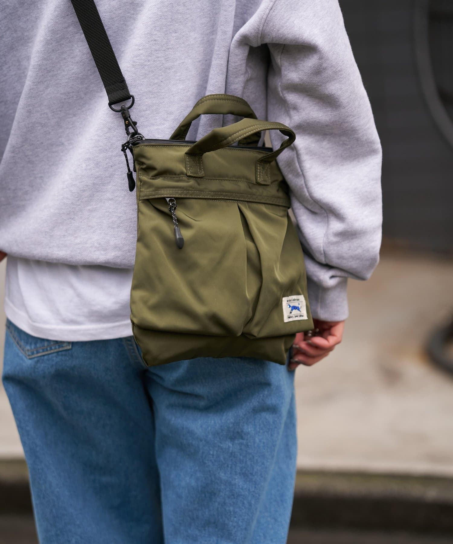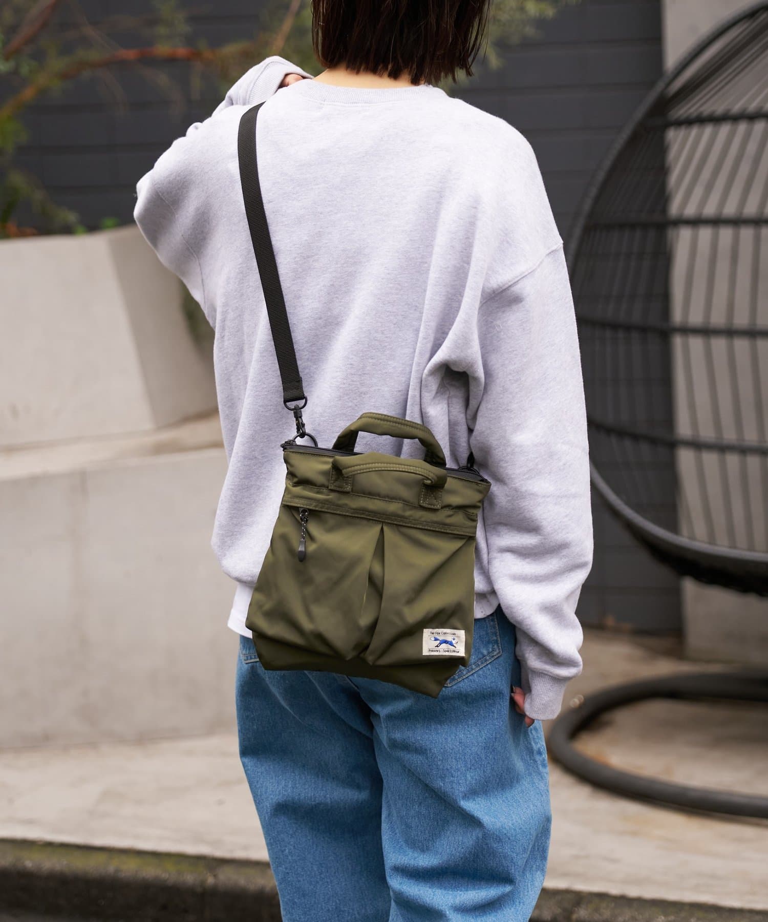 ミリタリーからとったディテールのヘルメットバッグを、デザインそのままにコンパクトなサイズで再現。