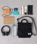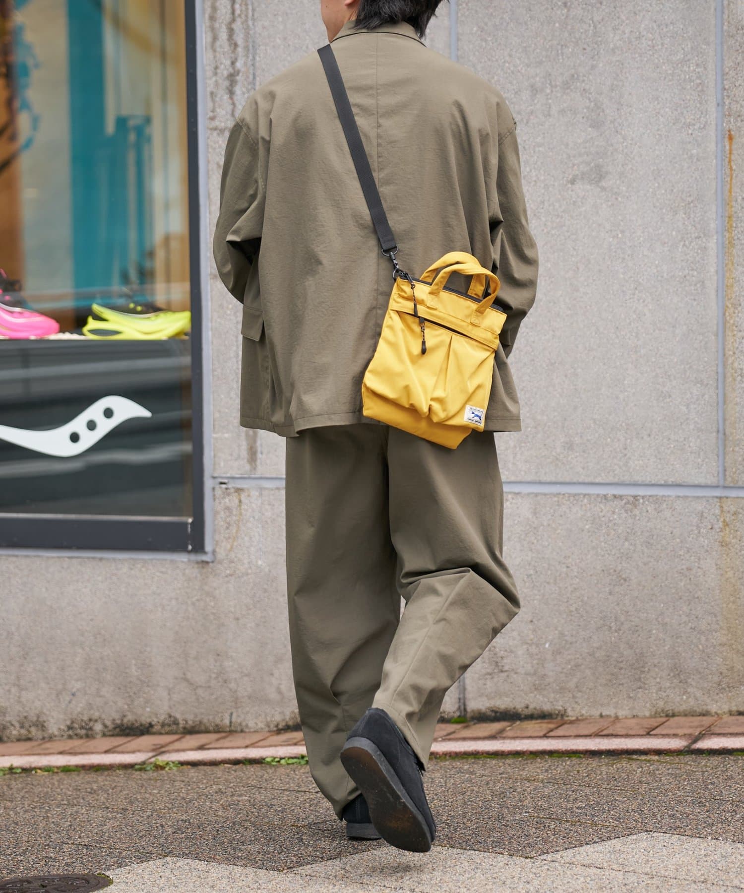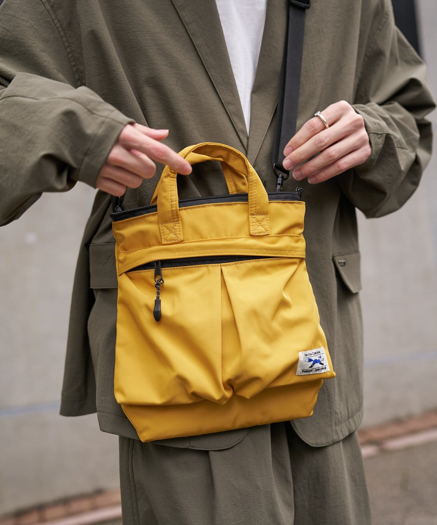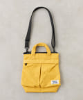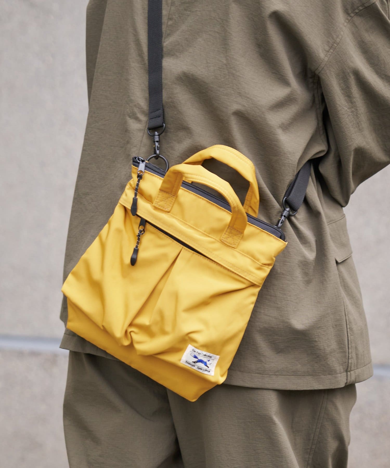 ミリタリーからとったディテールのヘルメットバッグを、デザインそのままにコンパクトなサイズで再現。