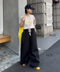圧倒的な存在感から、トップスはシンプルにまとめるのがおすすめです。