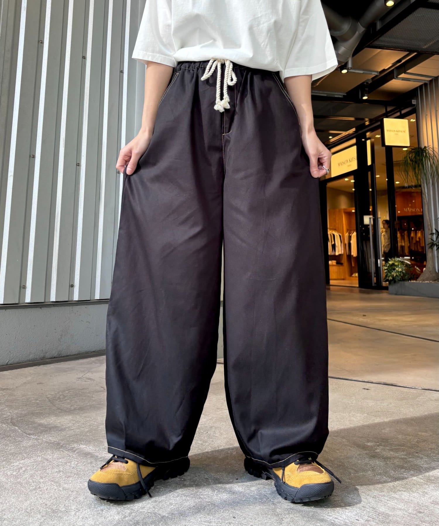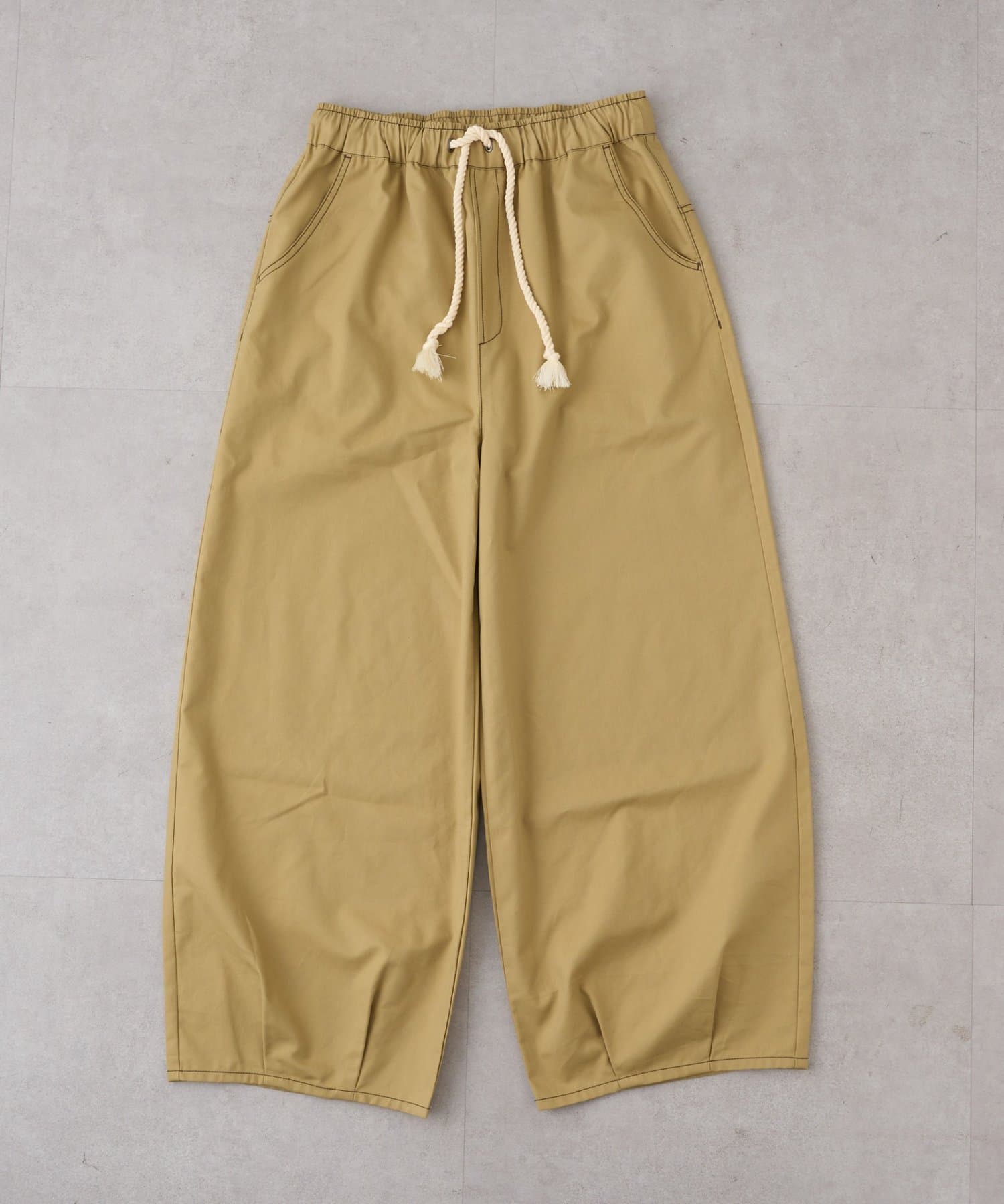 ウエストはドローストリング仕様で、紐の先にフリンジのようなデザインが施されているのがポイント。