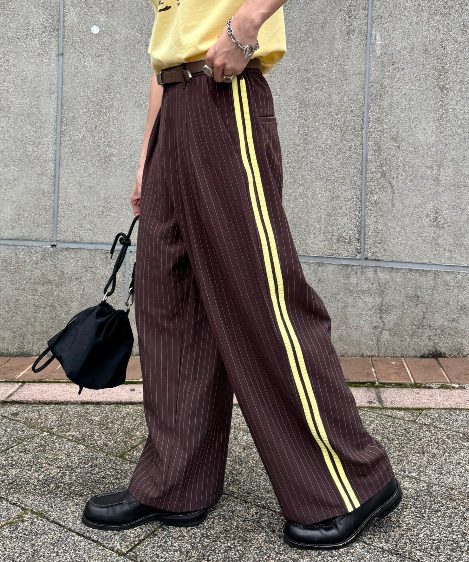 【UNISEX】タックボリュームワイドスラックスパンツ/サイドラインスラックス