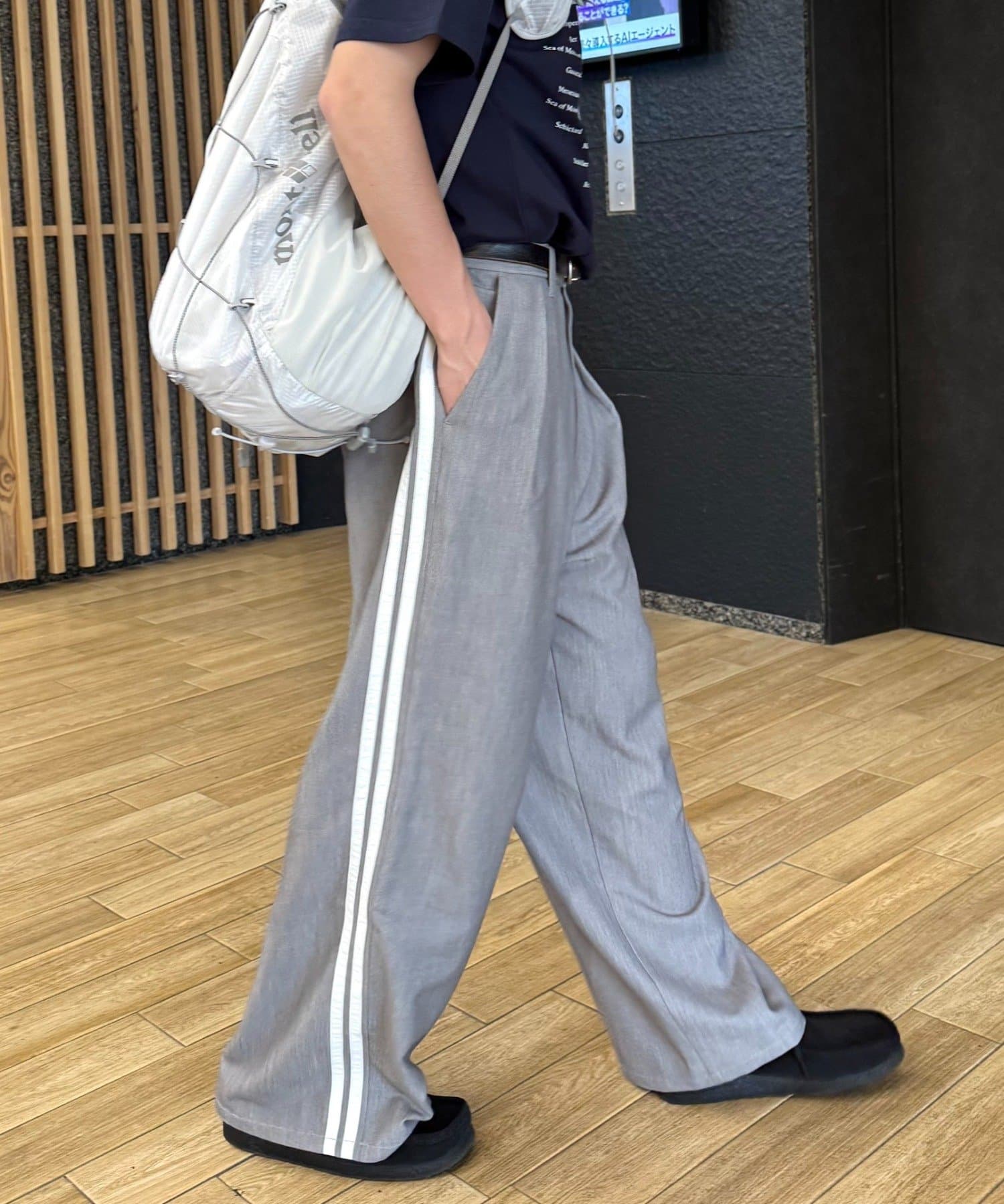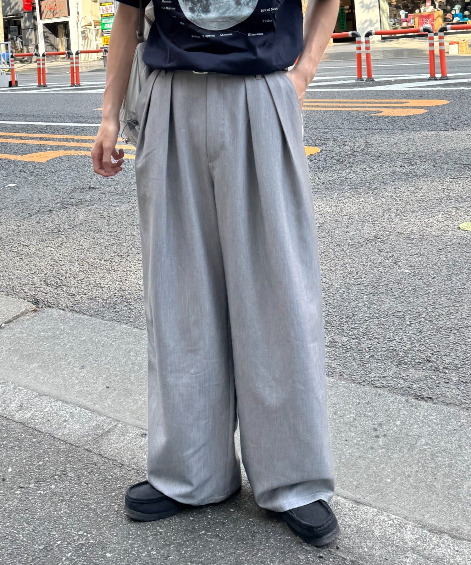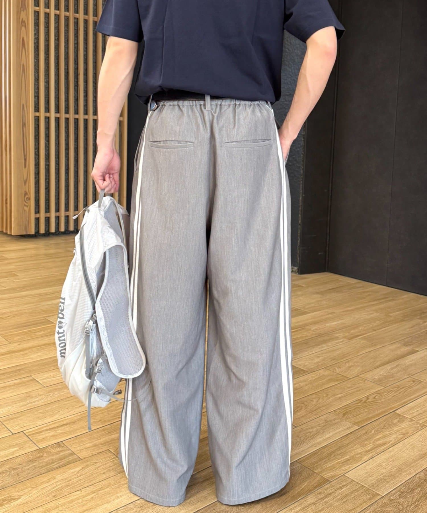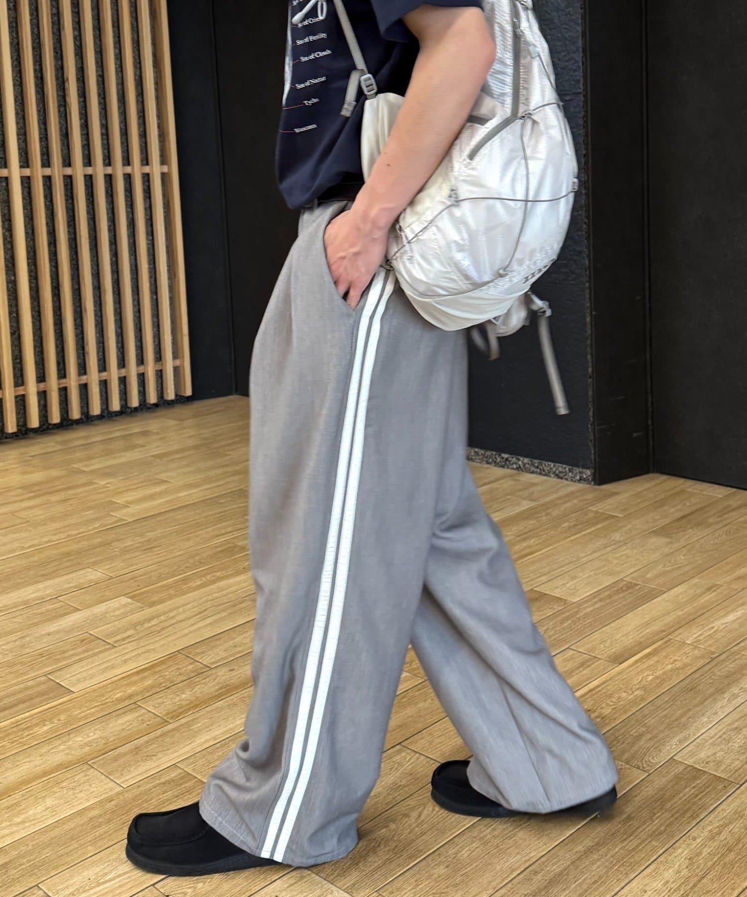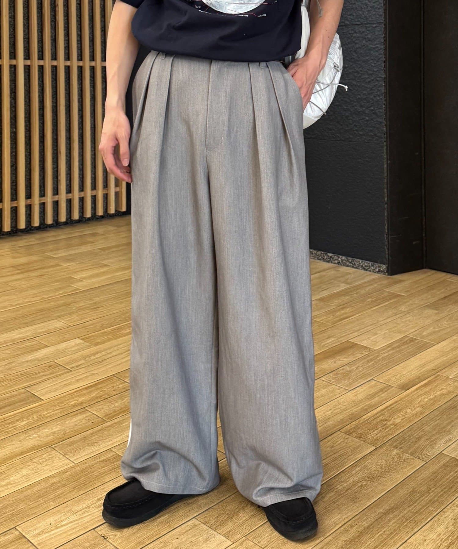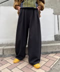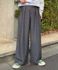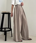 【UNISEX】タックボリュームワイドスラックスパンツ/サイドラインスラックス