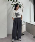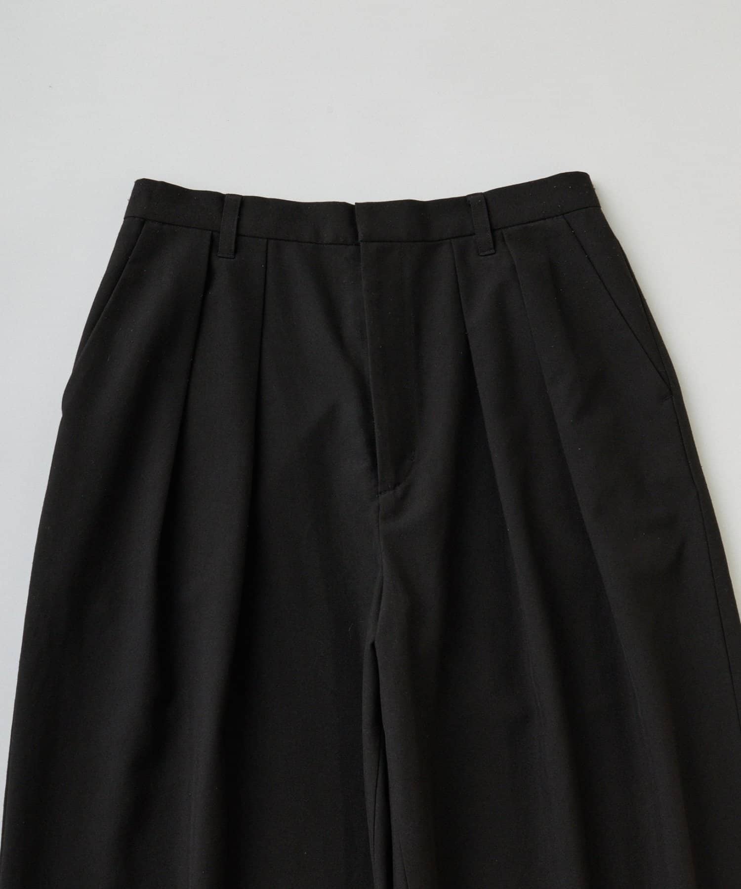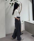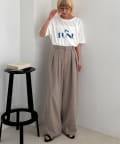 ウエスト部分から入ったタックデザインが魅力のワイドパンツ。