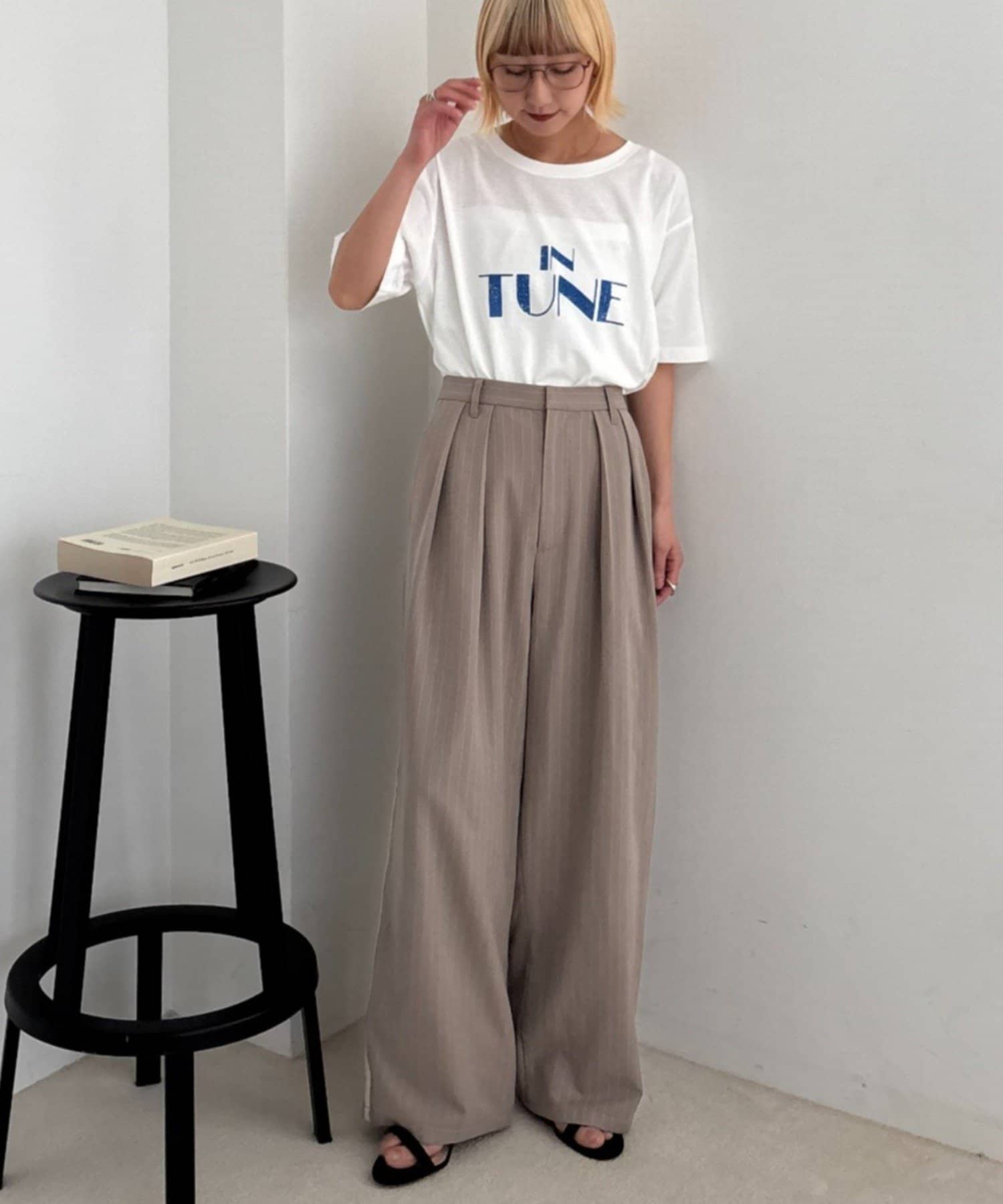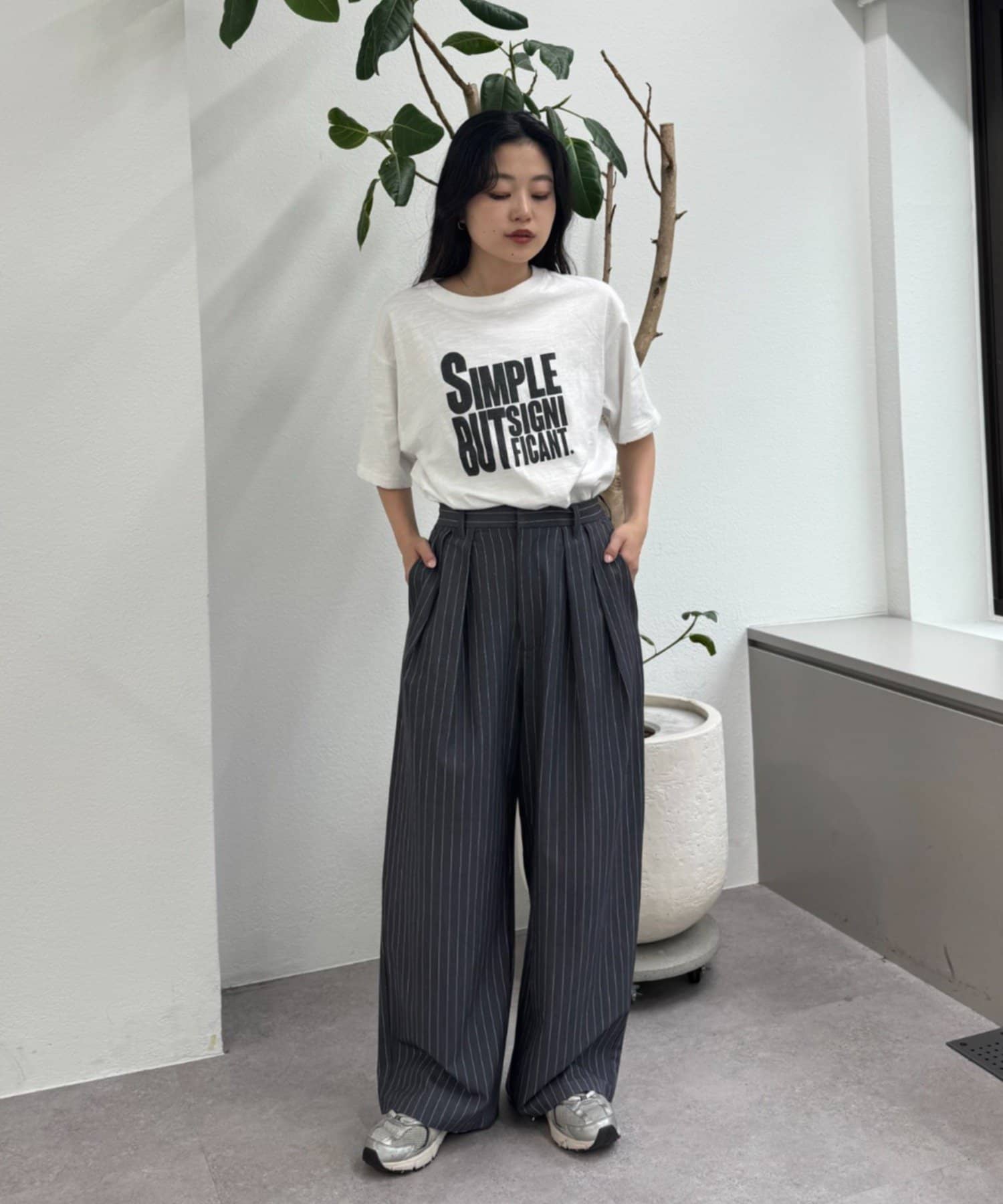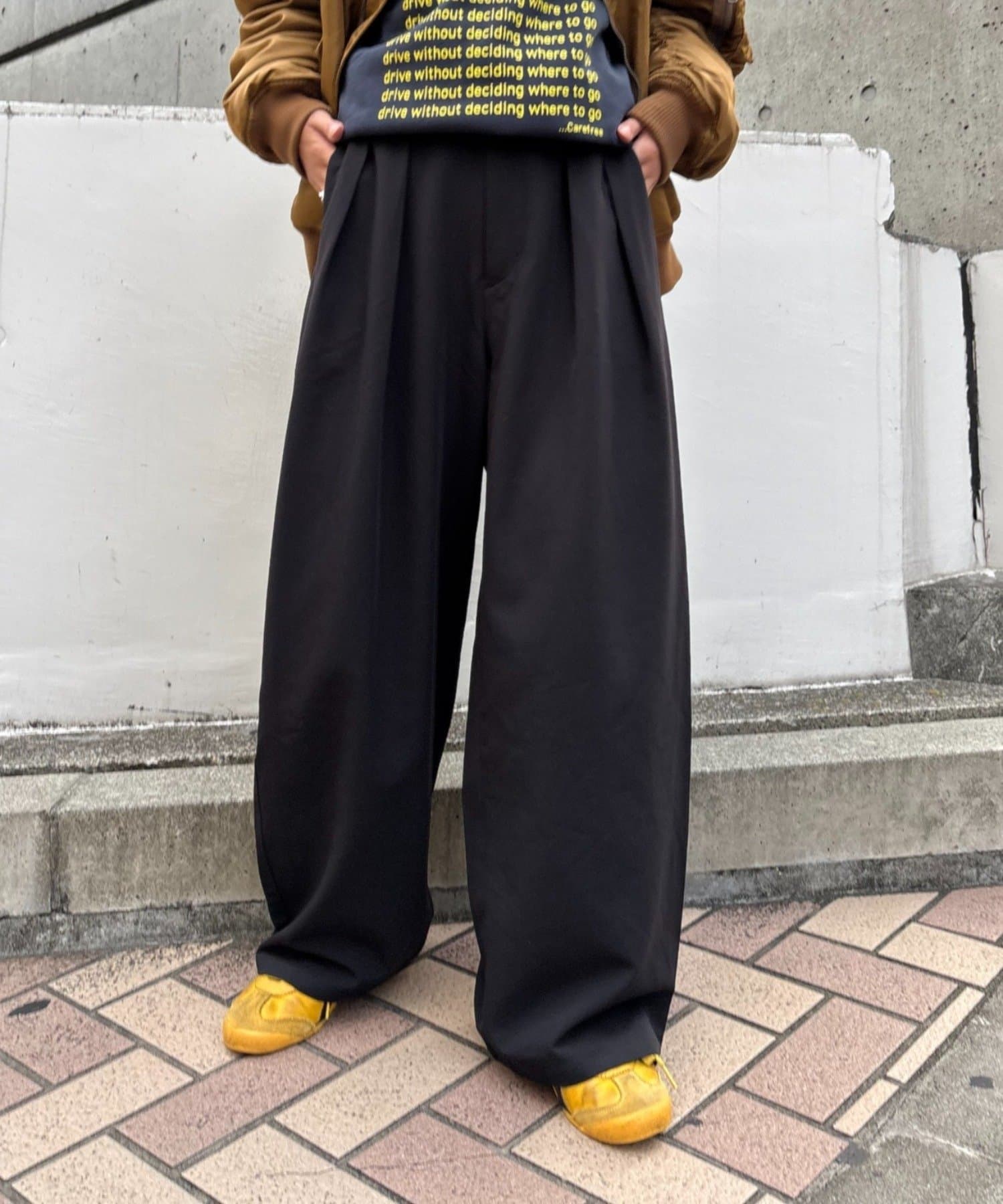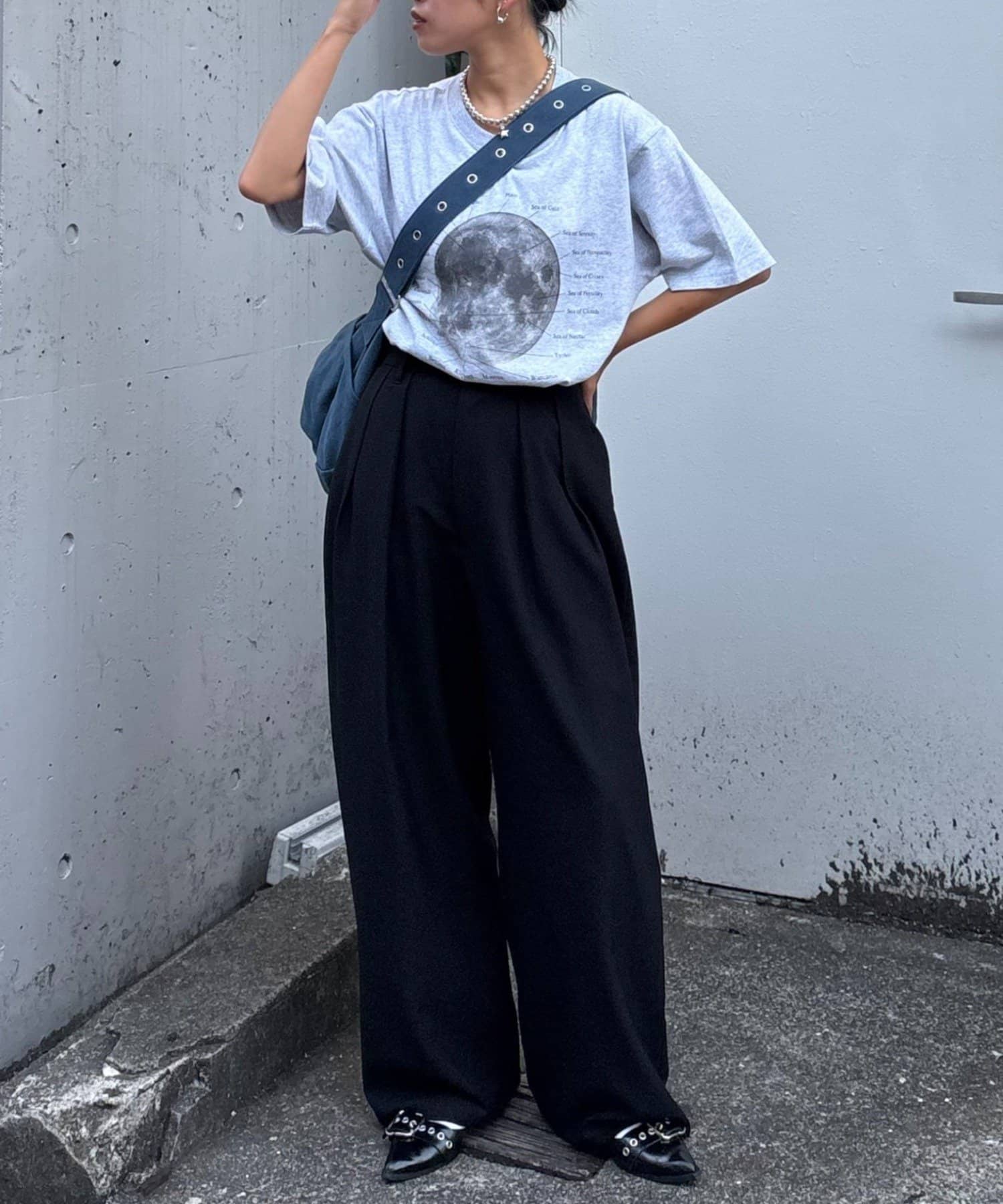 ワイドシルエットで、体型カバーしつつトレンドライクな印象に。
