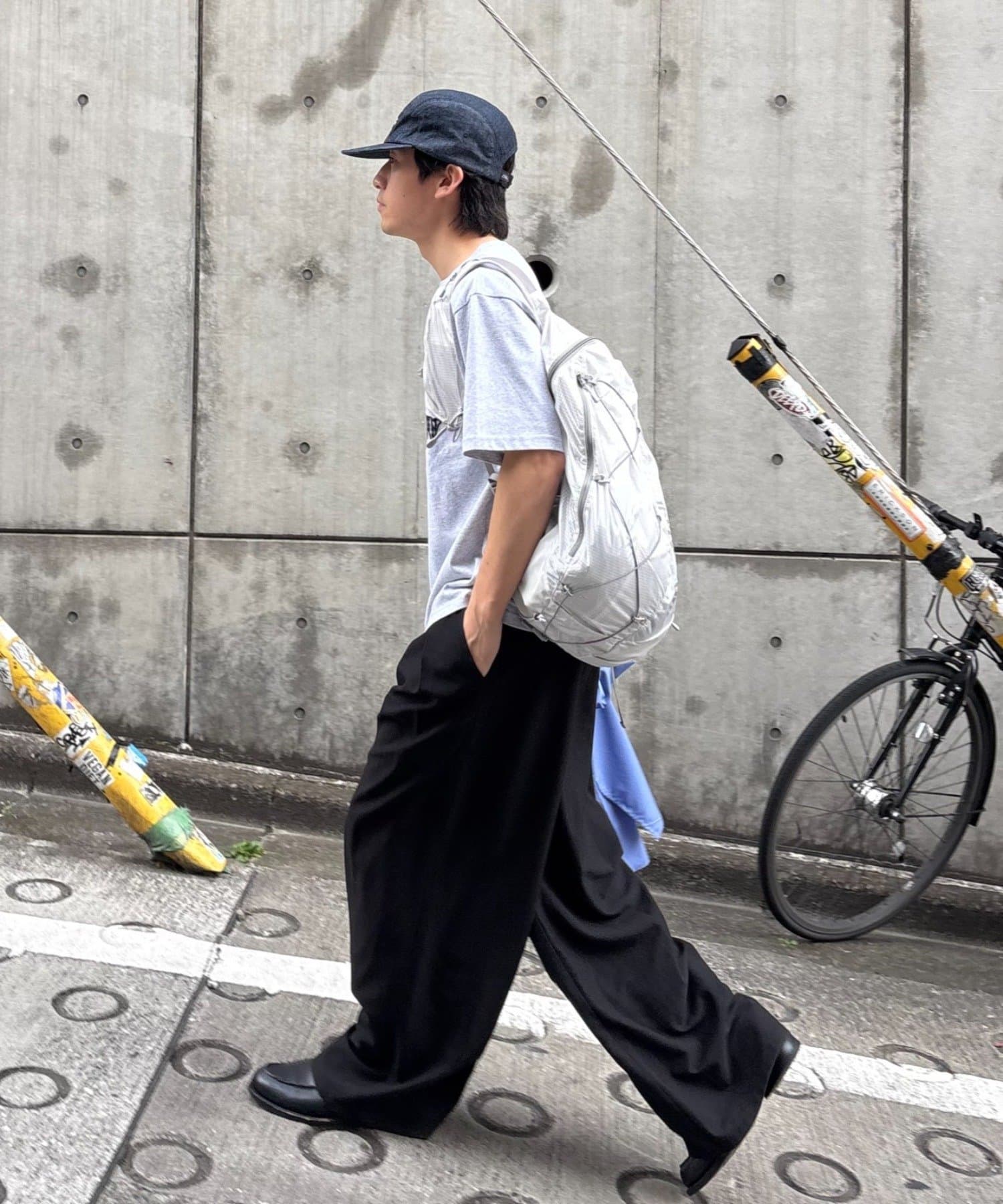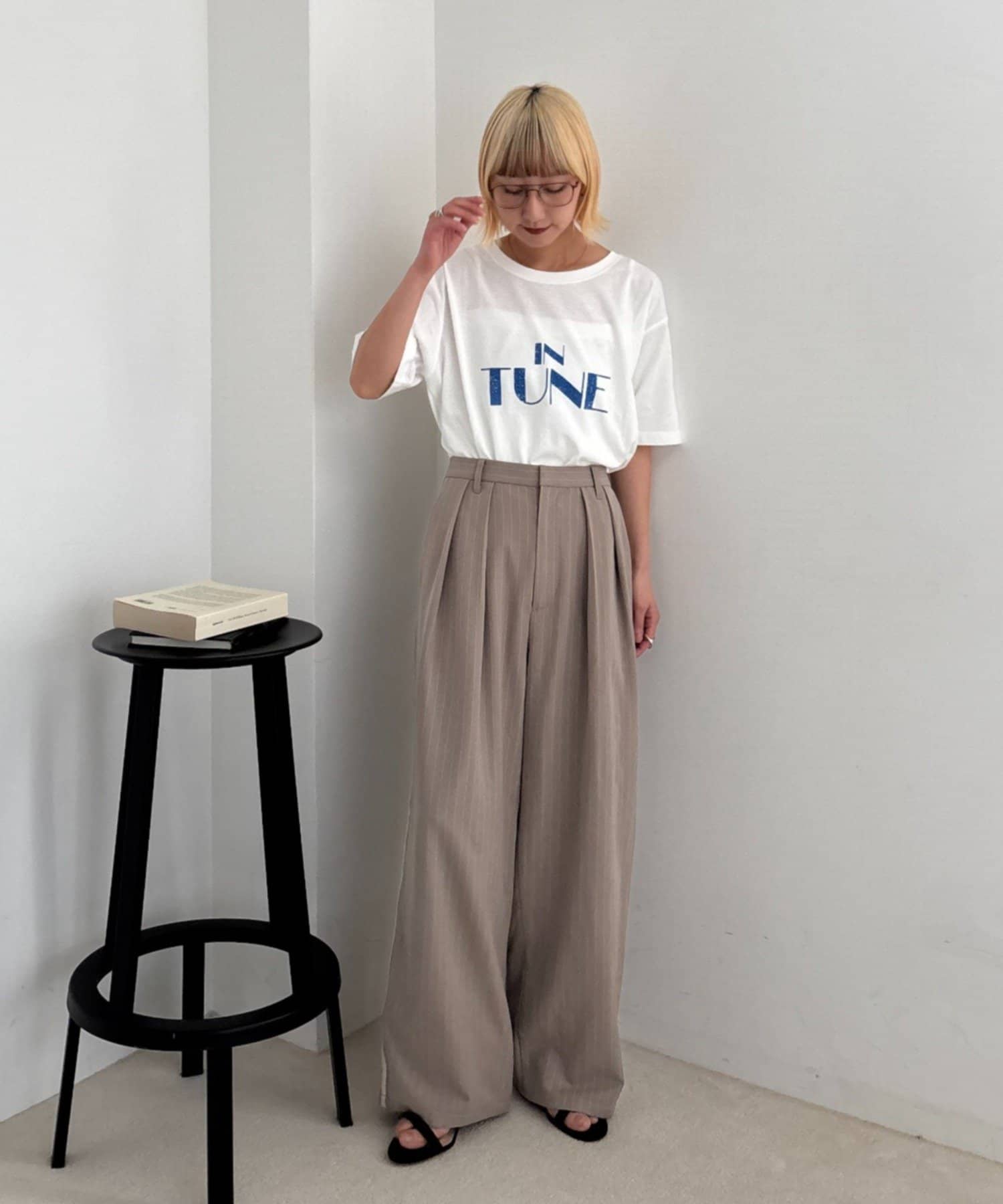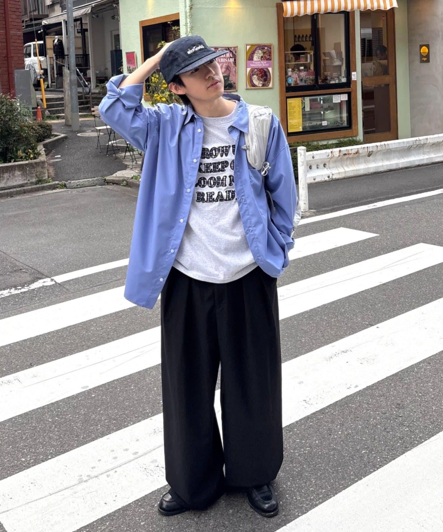 ワイドシルエットで、体型カバーしつつトレンドライクな印象に。