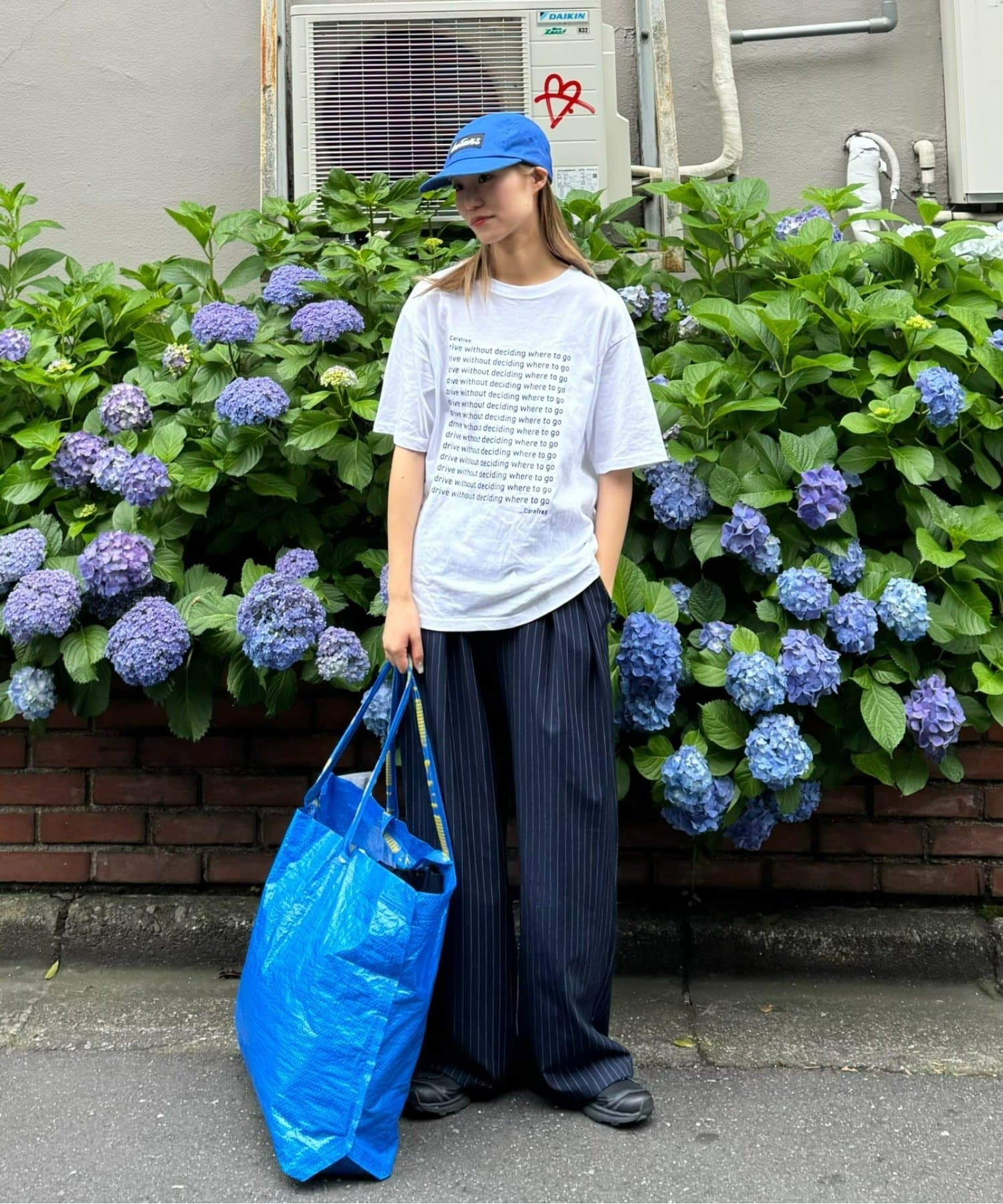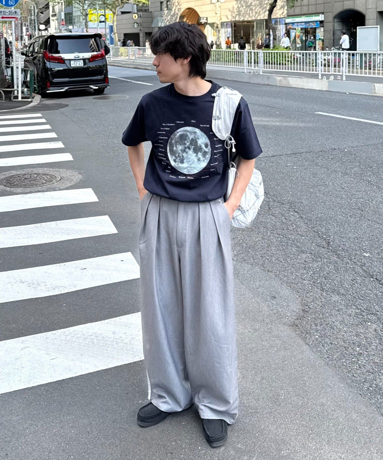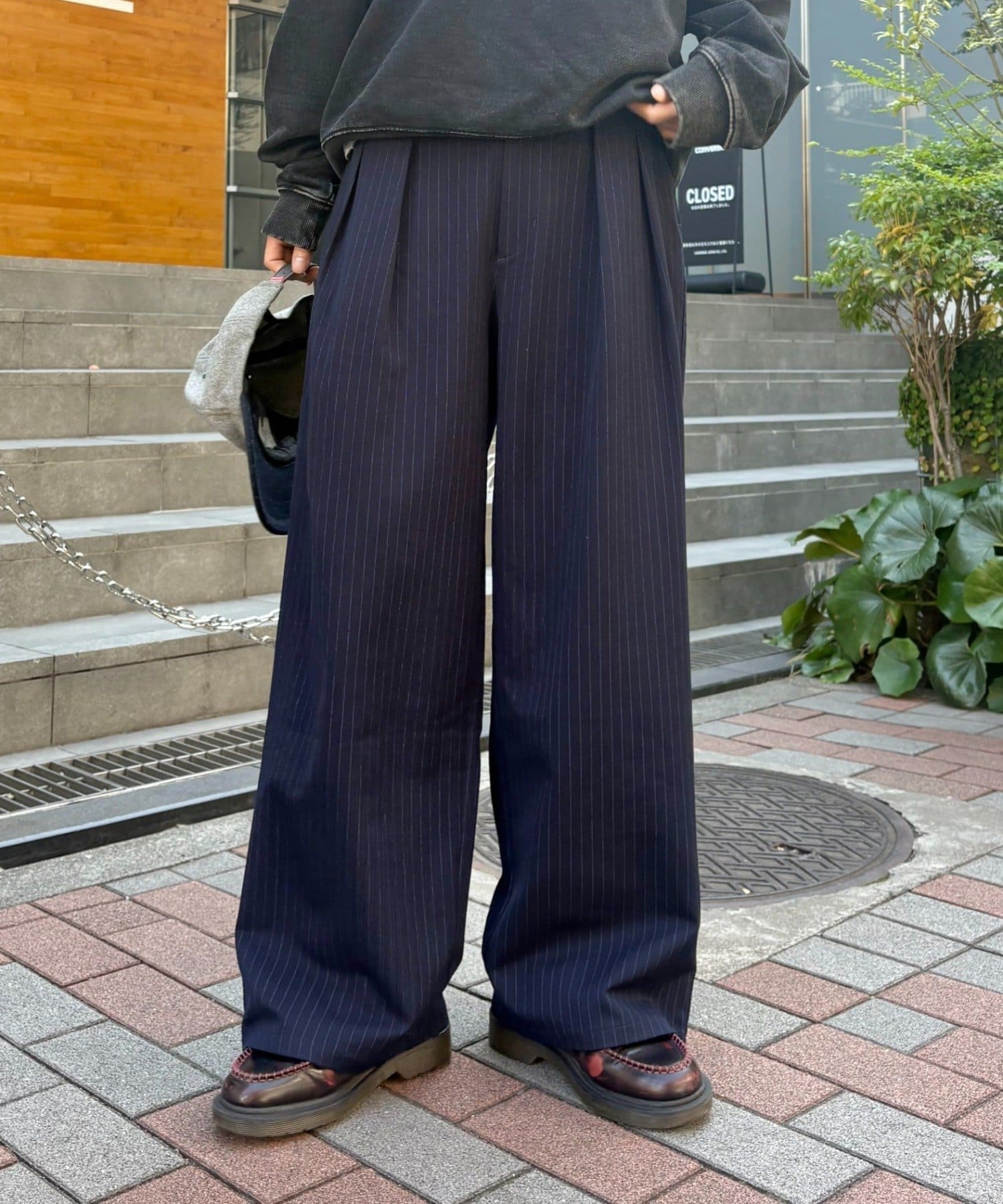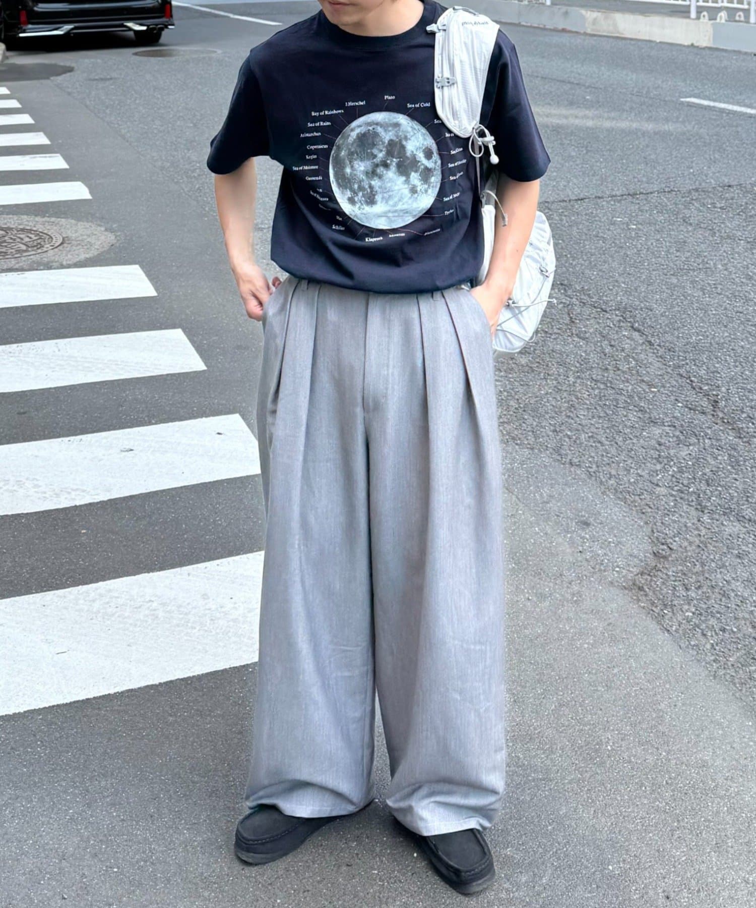 ワイドシルエットで、体型カバーしつつトレンドライクな印象に。