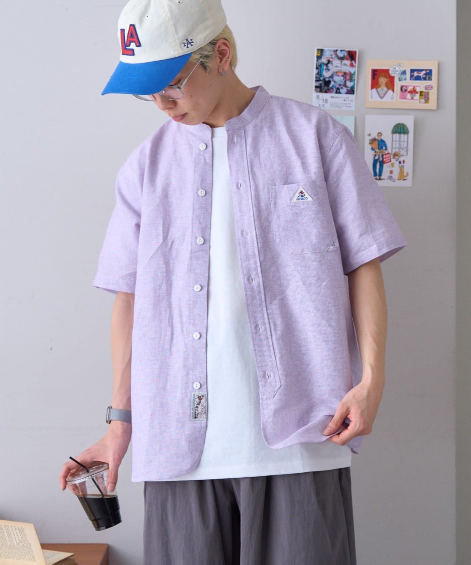 【GEVACO】綿麻バンドカラーシャツ