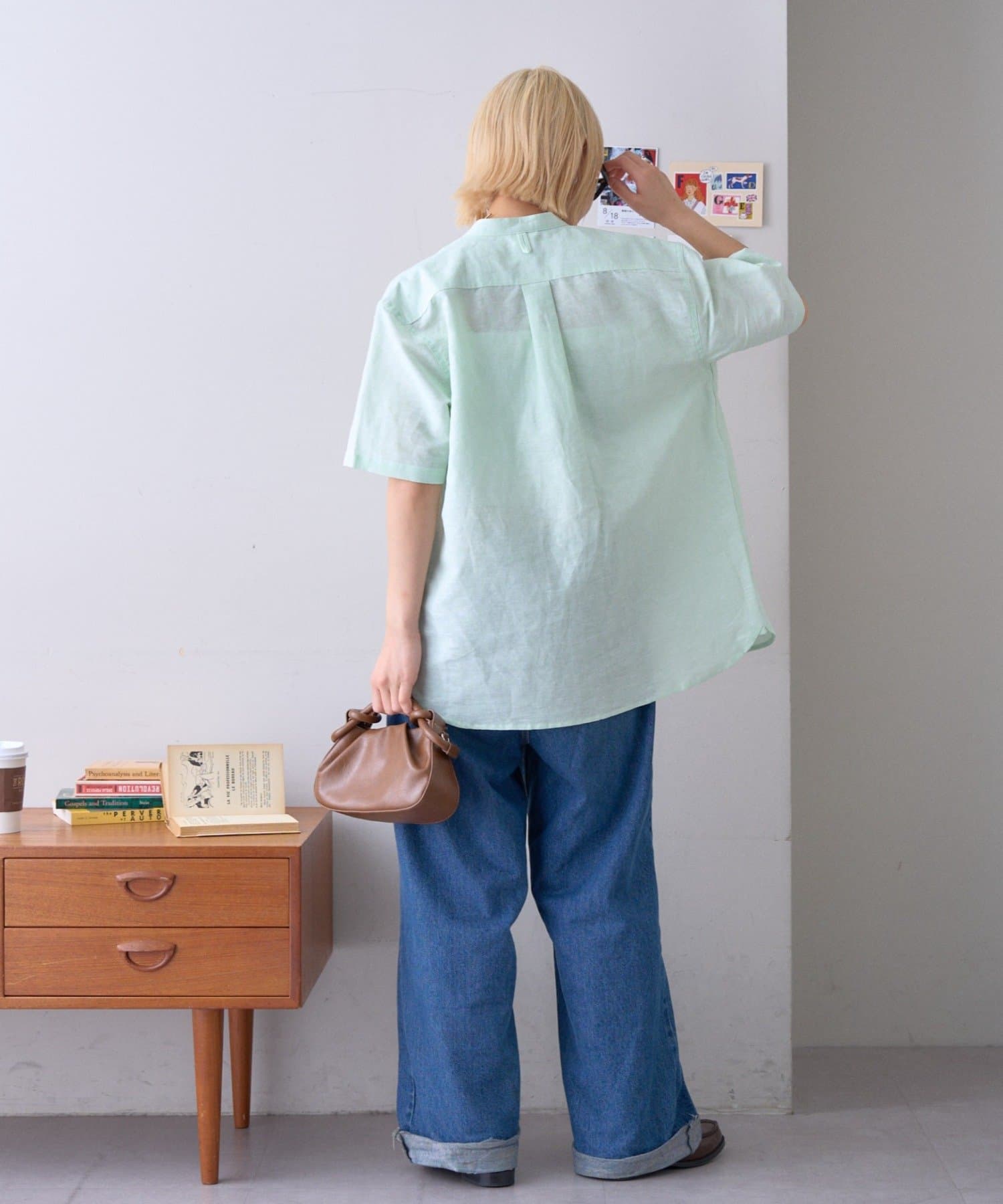 シャツやニットに変えることで、ラフ過ぎずきれいめな日にもおすすめです。