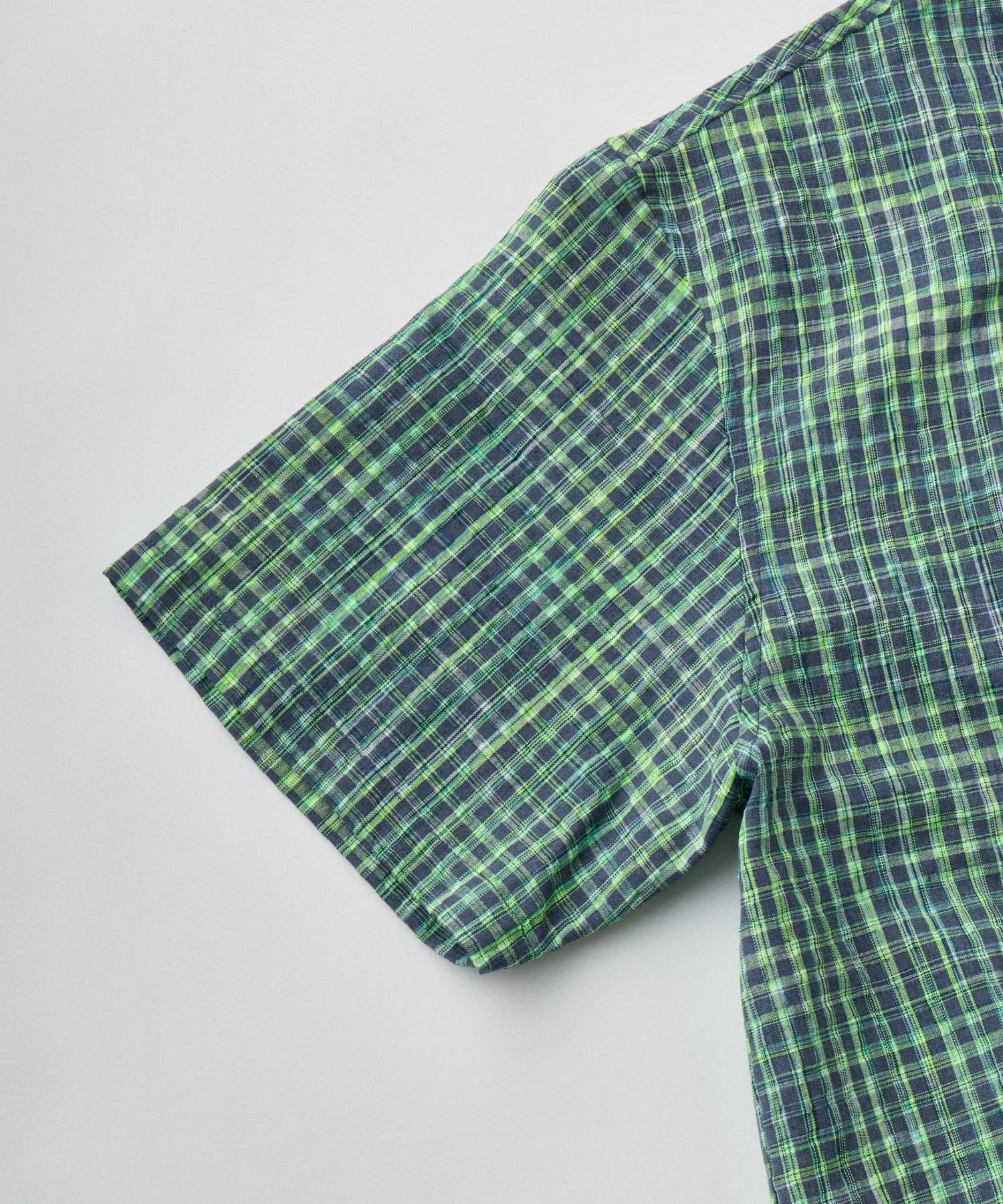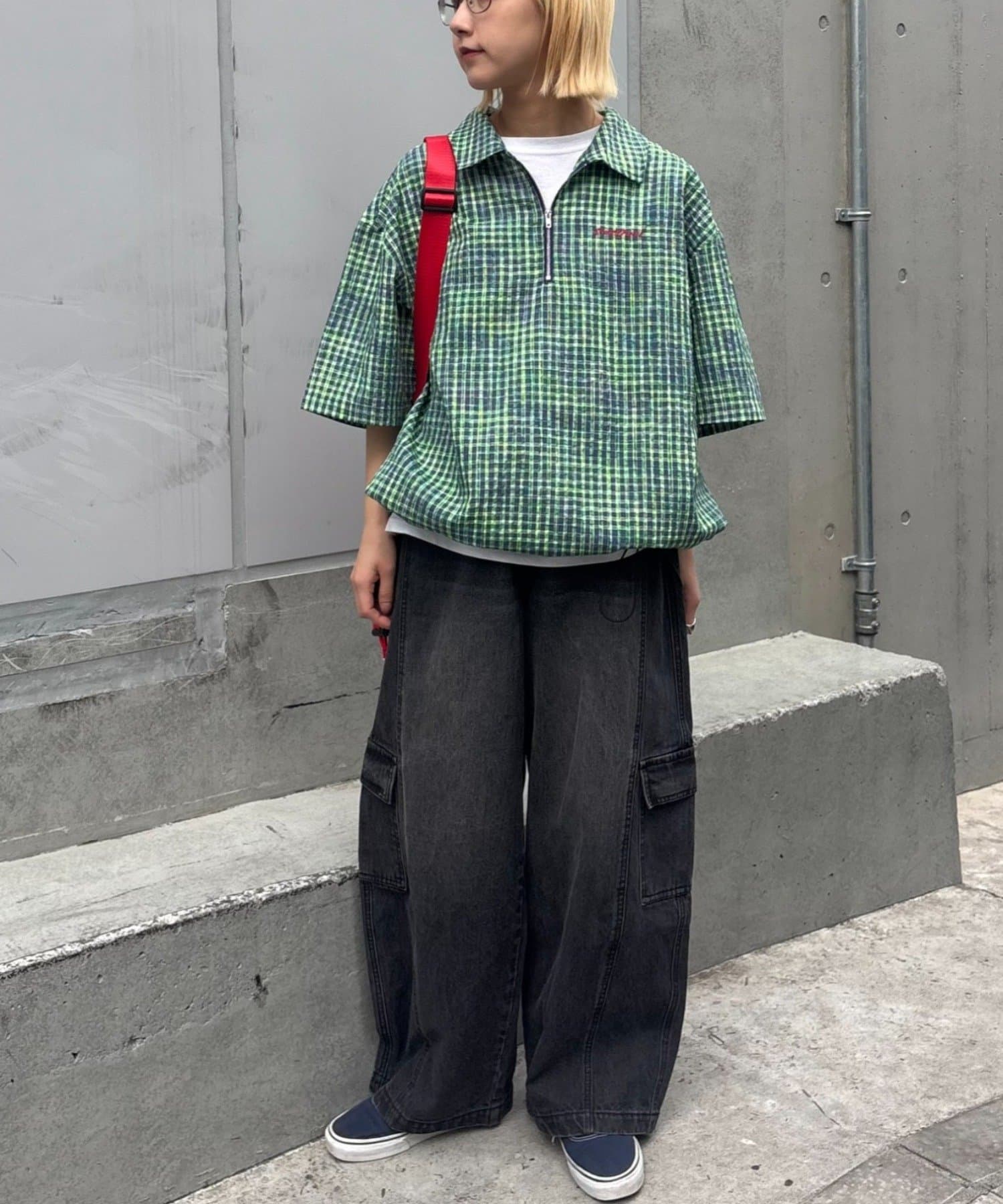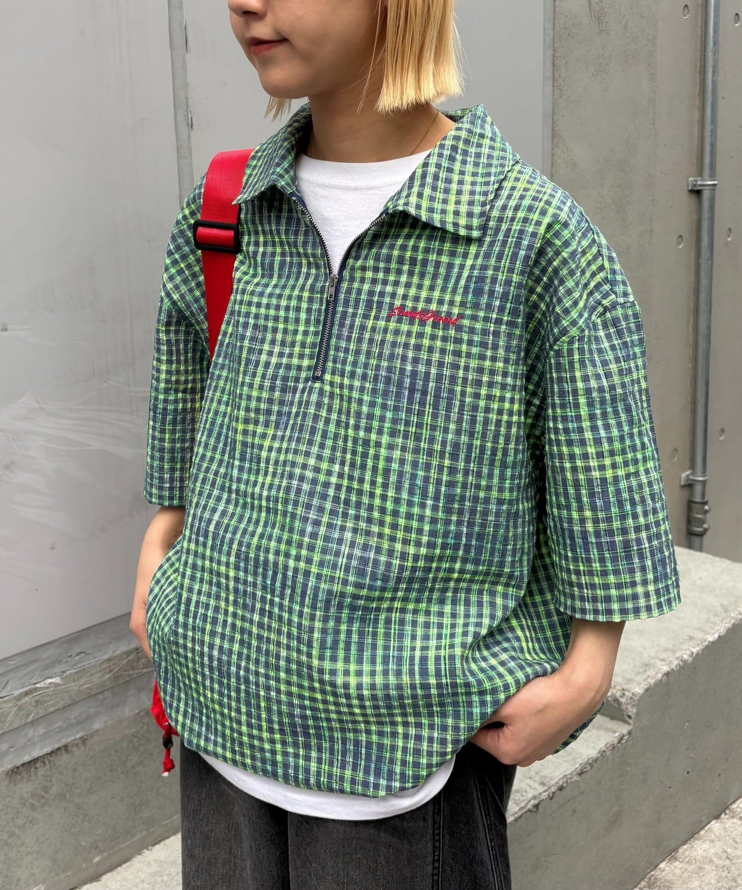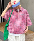 ネオンカラーが目を引く、ハーフジップのチェック柄シャツ。