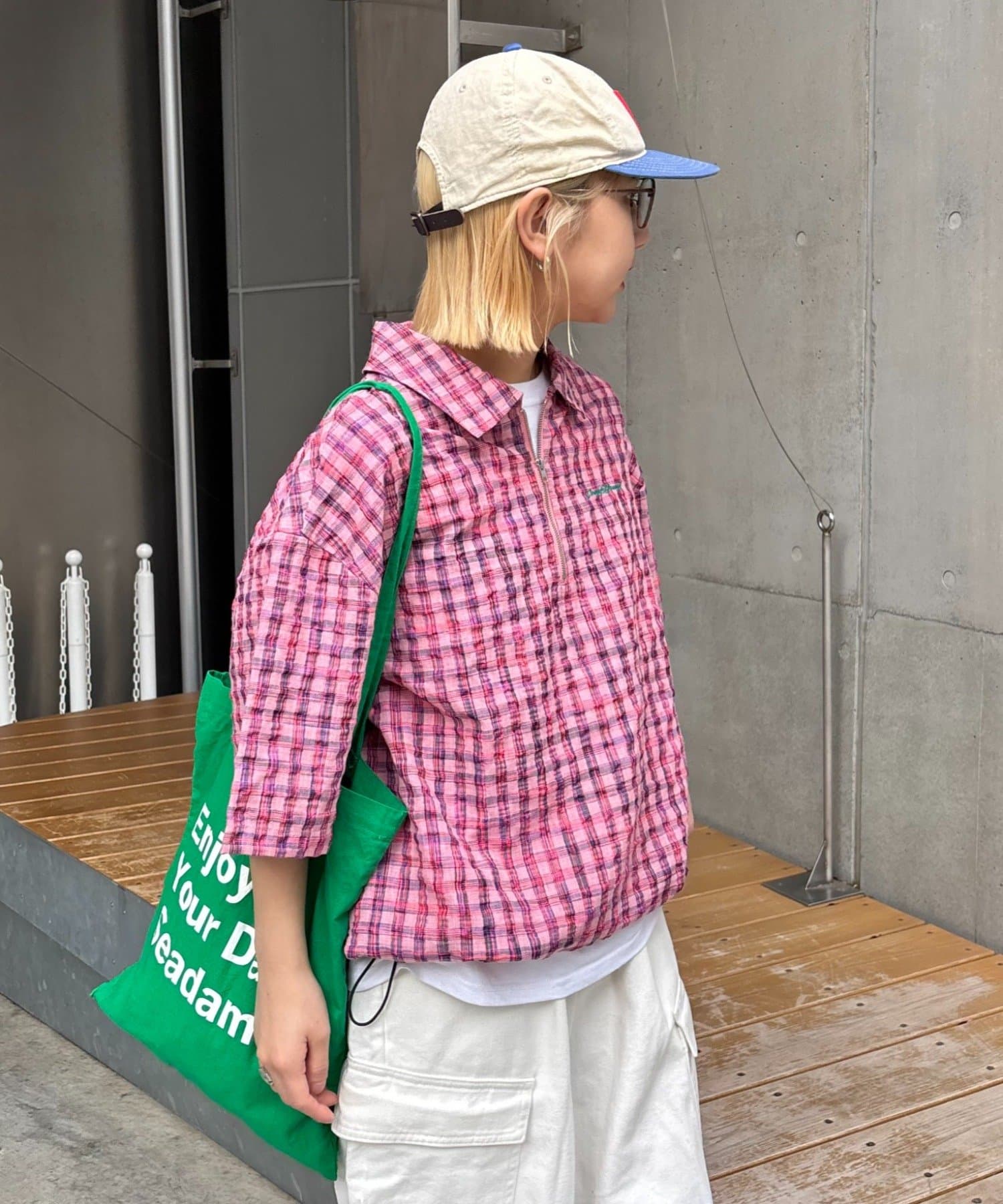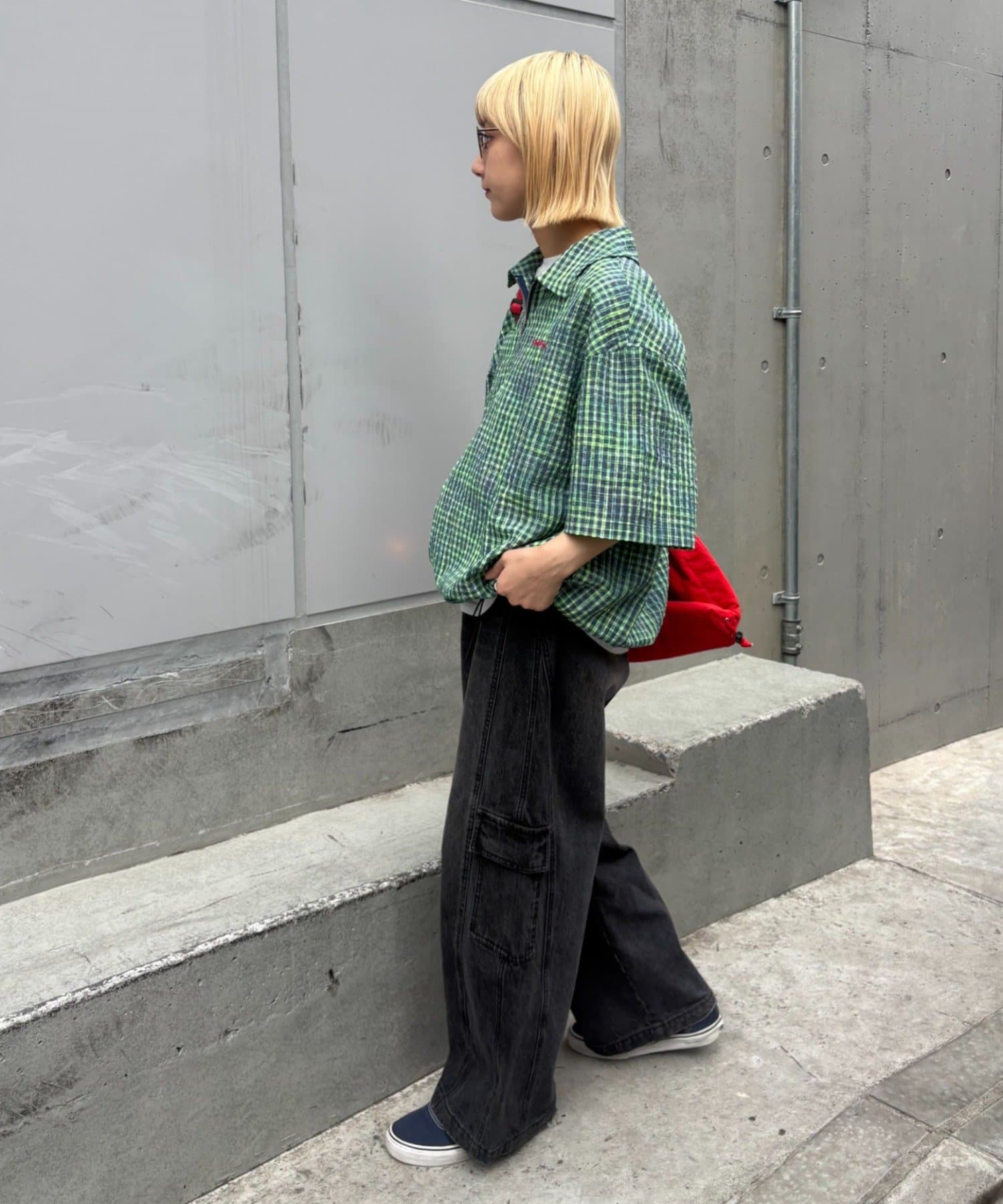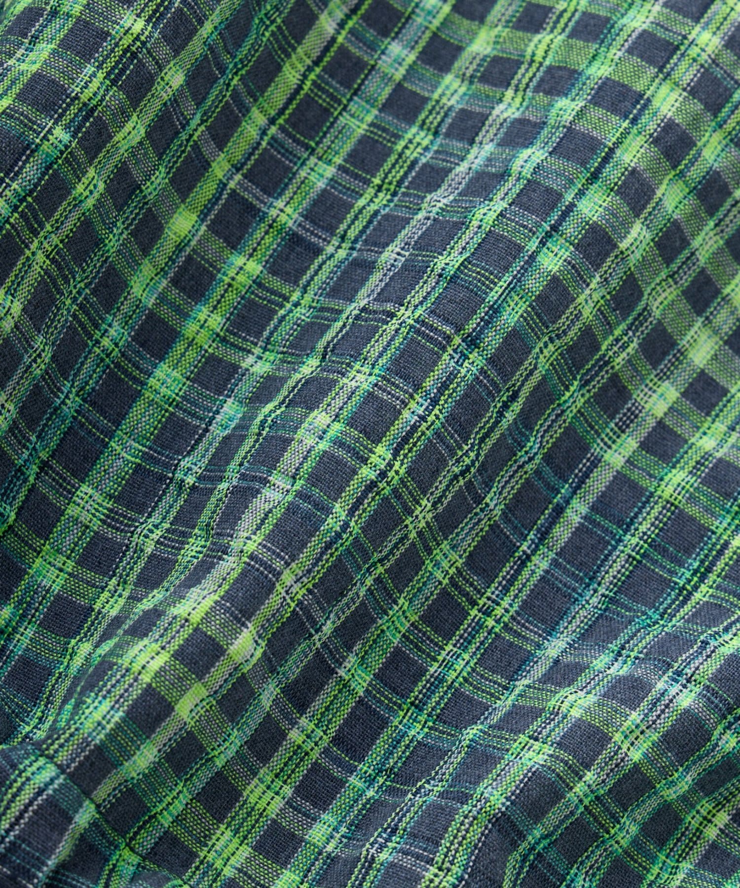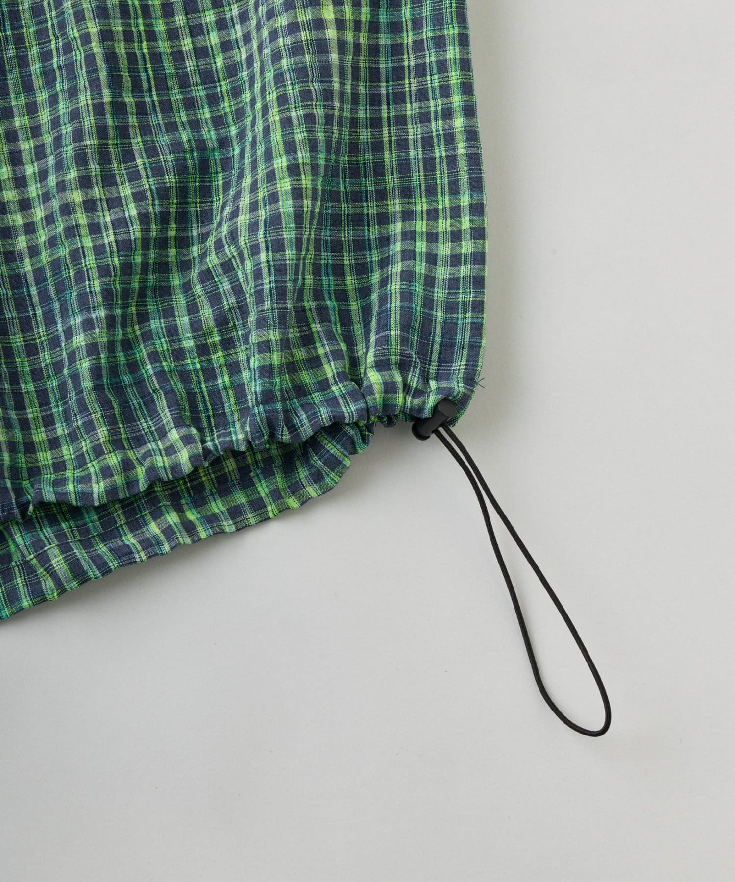 ネオンカラーが目を引く、ハーフジップのチェック柄シャツ。