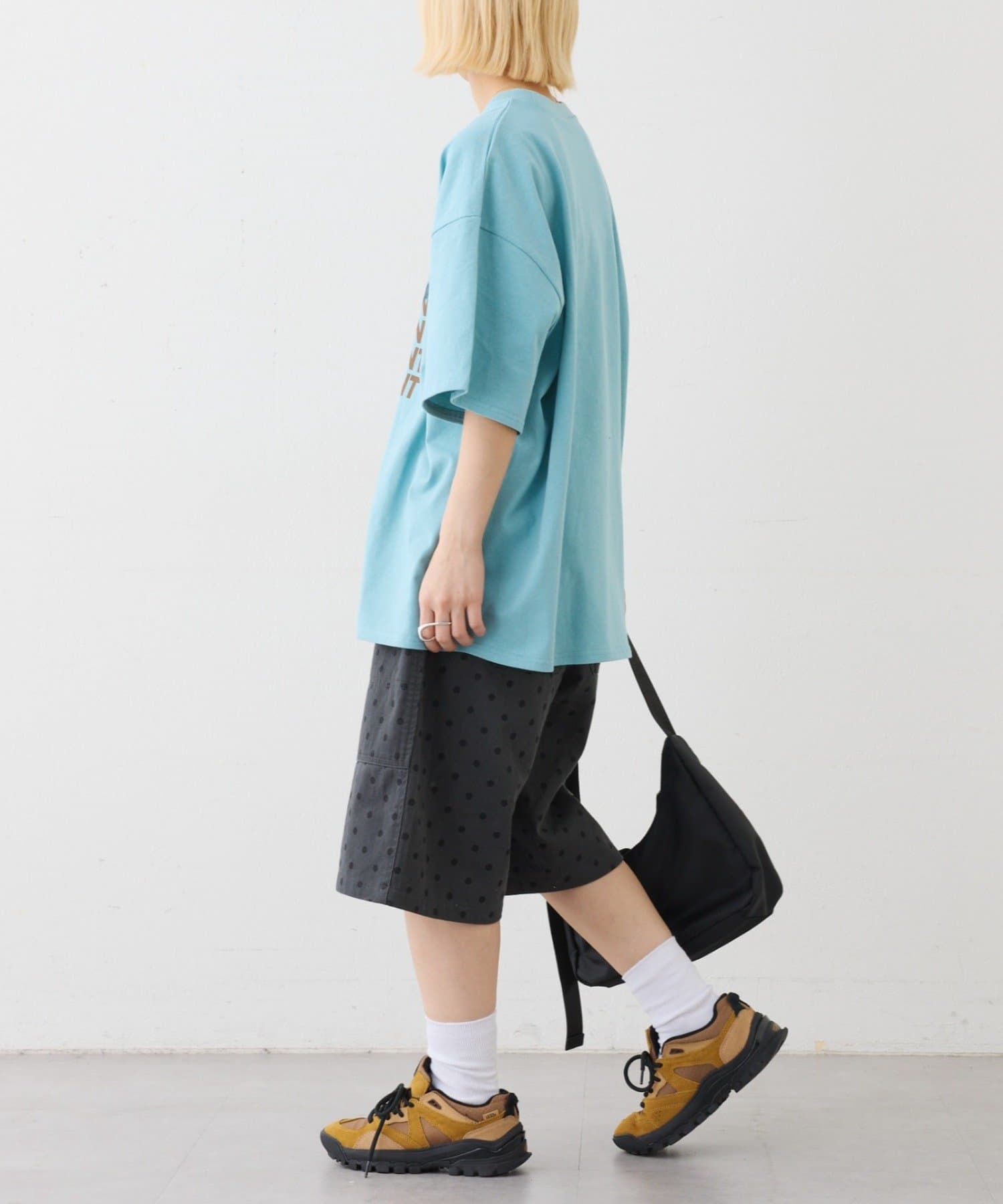 Tシャツのグラフィックが活きるようにアクセサリーは、シンプルなネックレスやピアスをプラスすると、より洗練された印象になります。