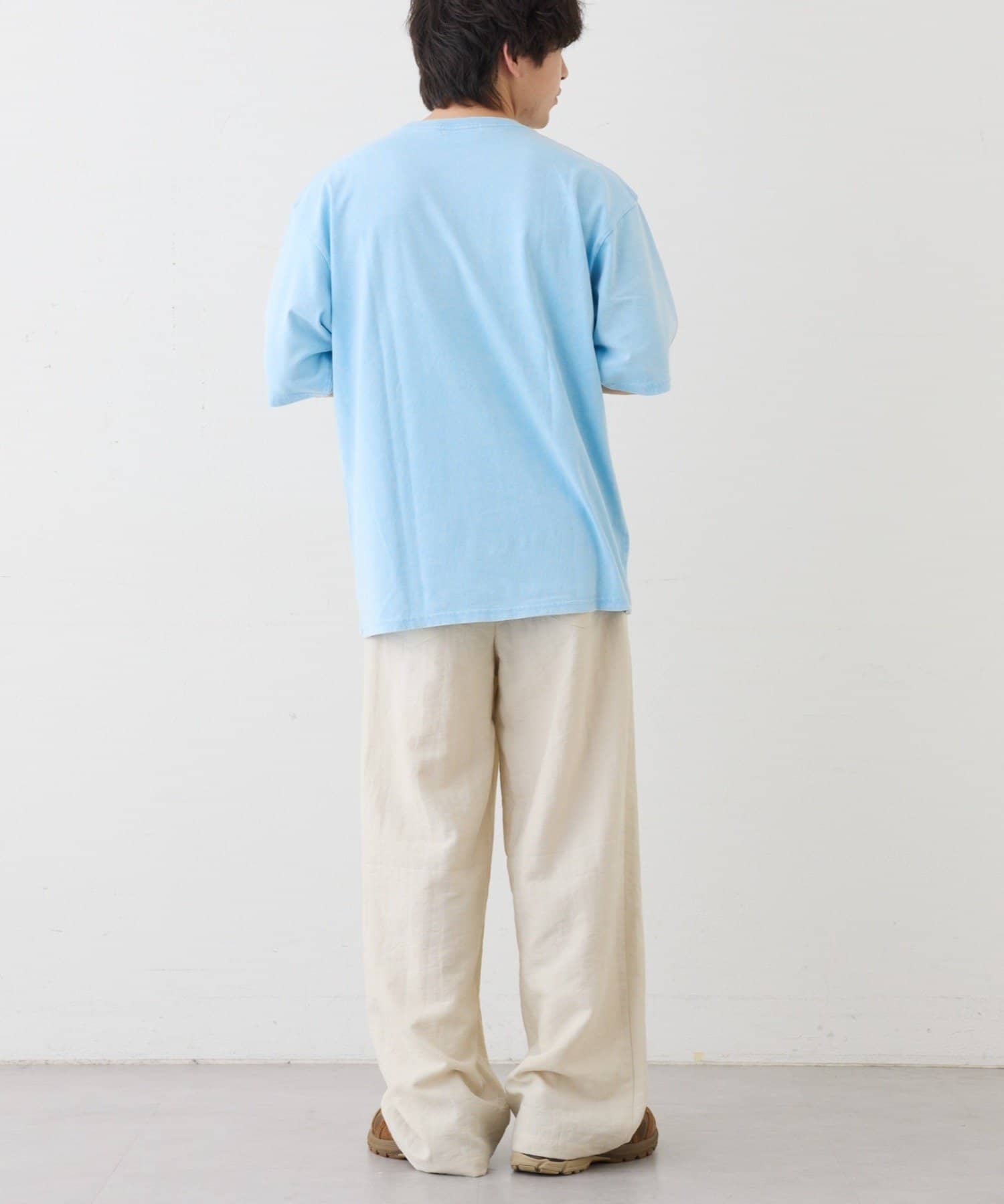カジュアルに着こなすなら、Tシャツをラフにタックアウトして、スニーカーを合わせるのがおすすめです。