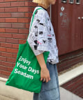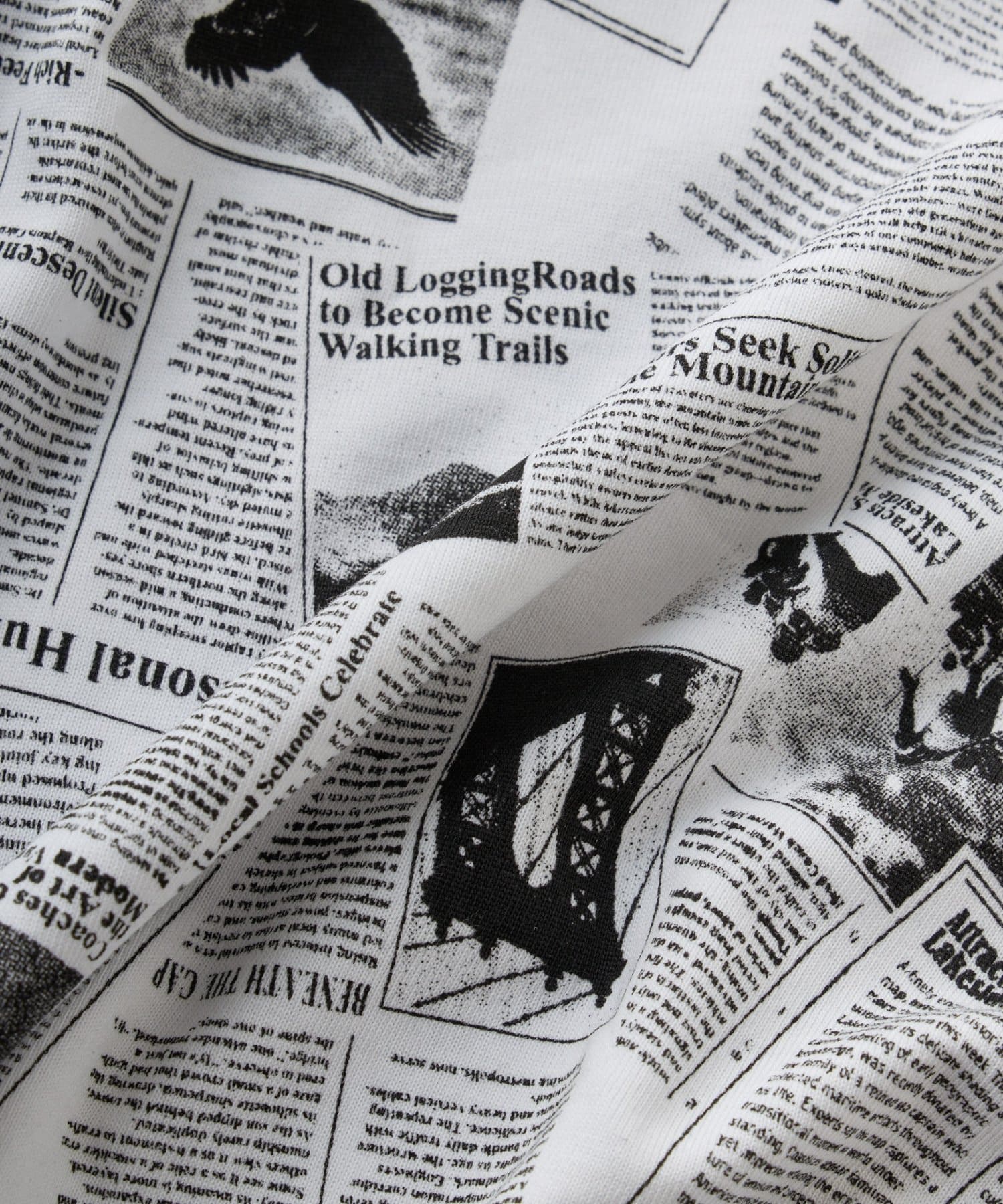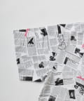 モノトーンの新聞柄がユニークで、着るだけでトレンド感のあるスタイルが完成します。