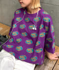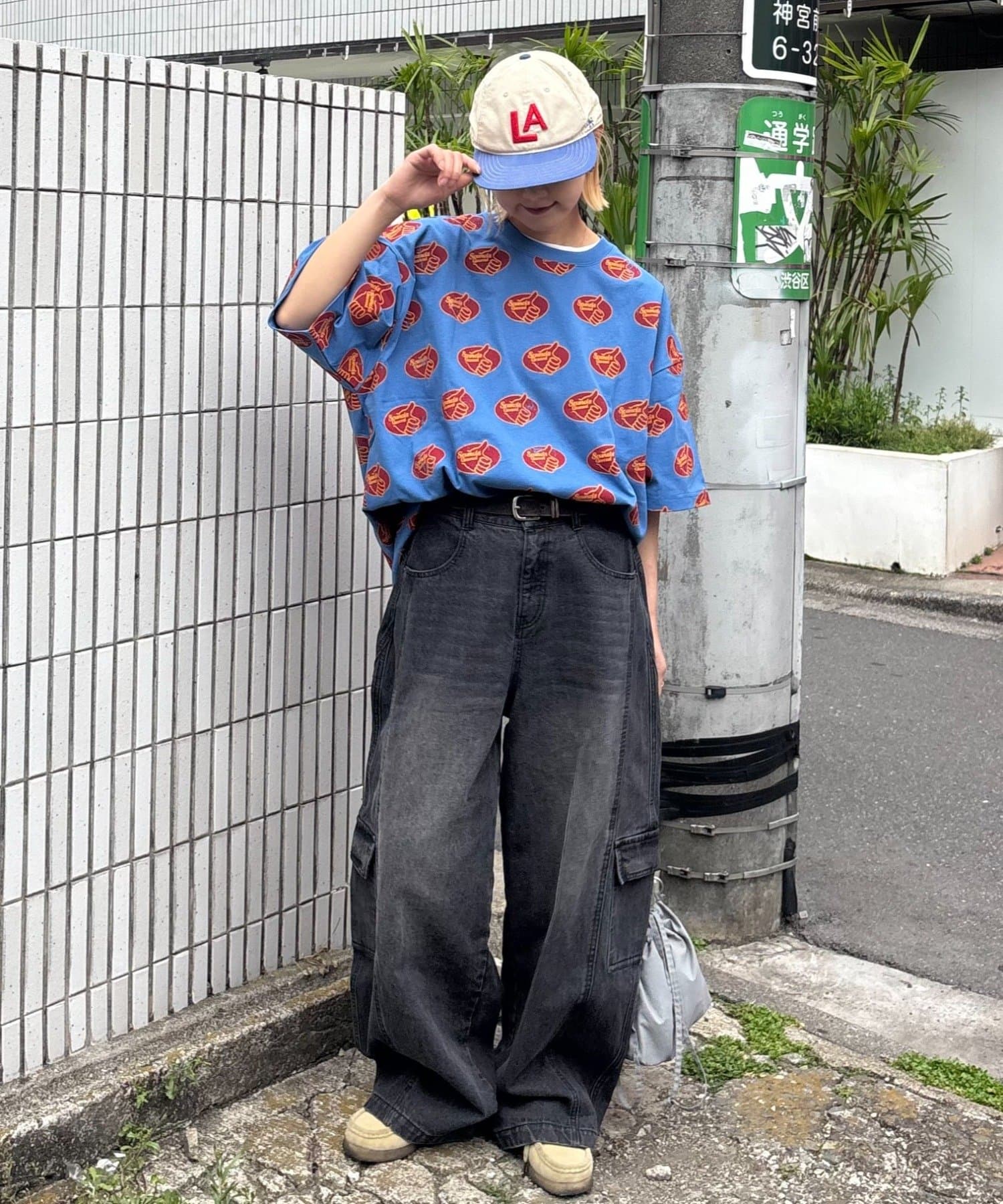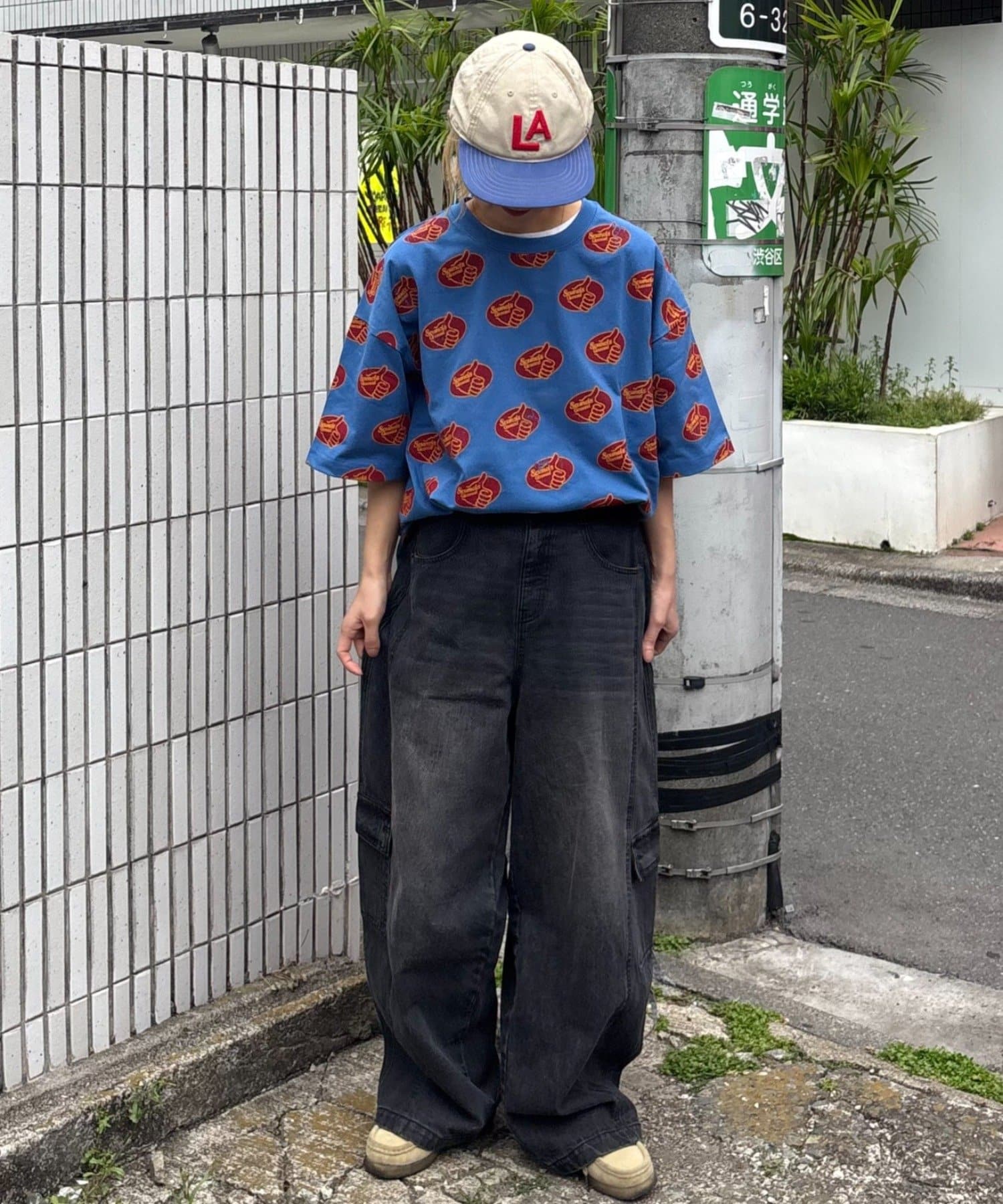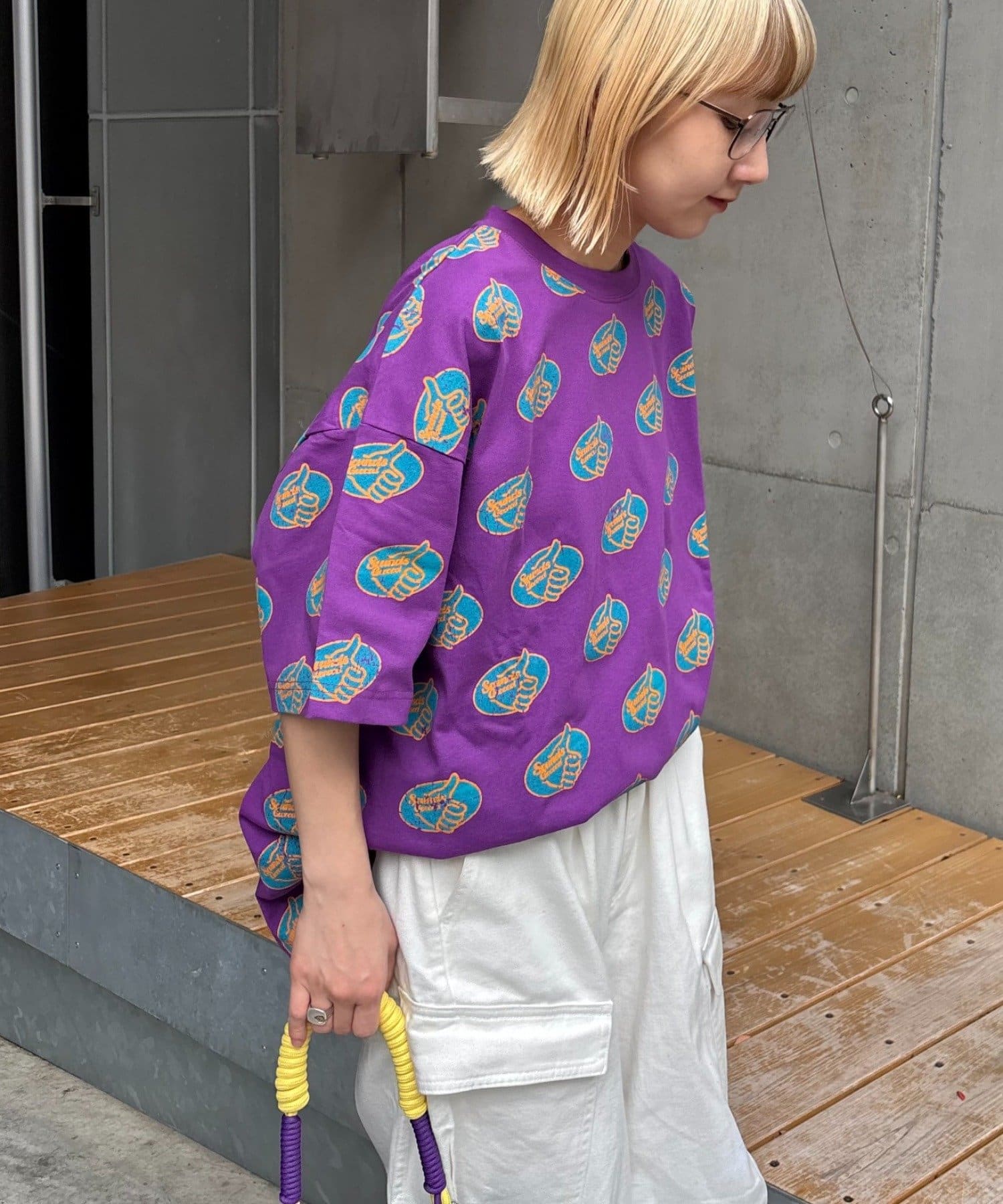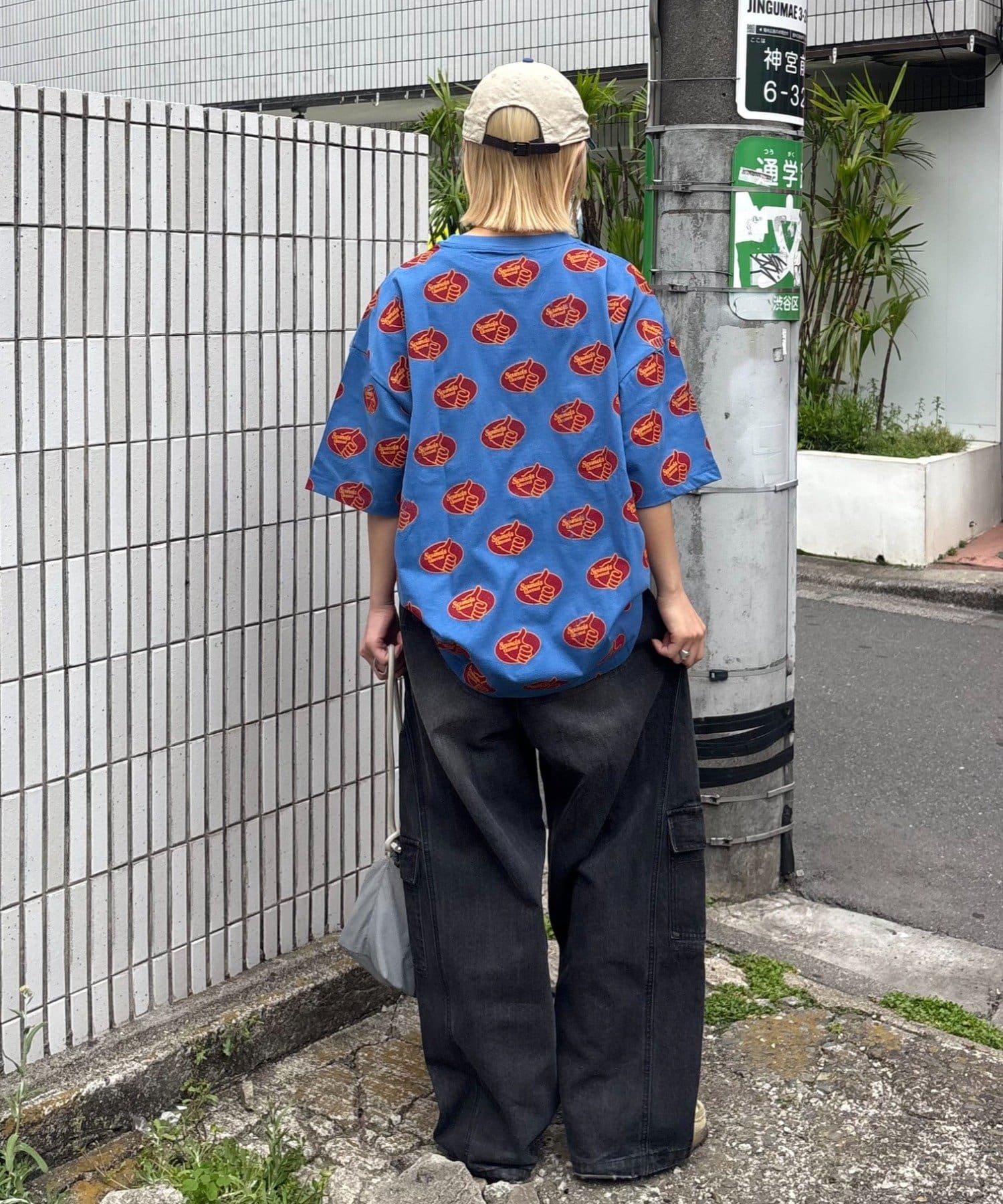 ポップな総柄デザインが目を引く半袖Tシャツ。