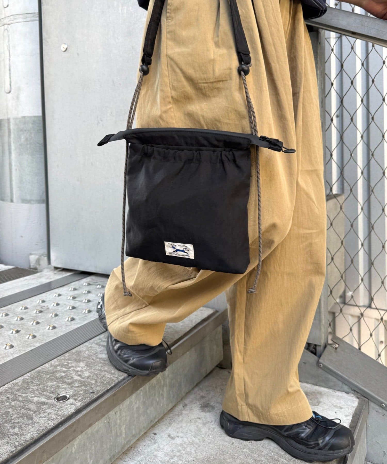 軽量でカジュアルな巾着型ショルダーバッグ