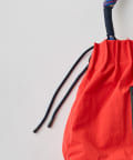 目を引くカラーリングが魅力のドローストリングバッグ。