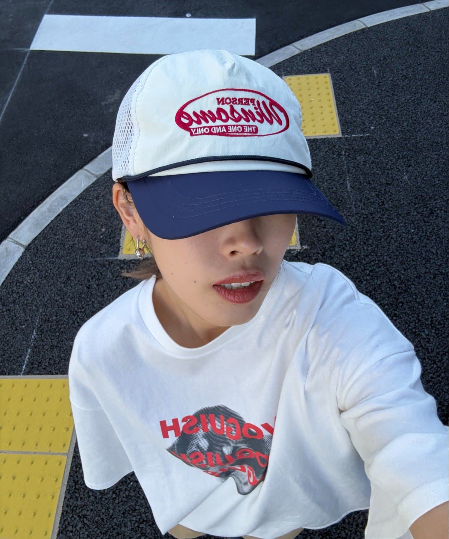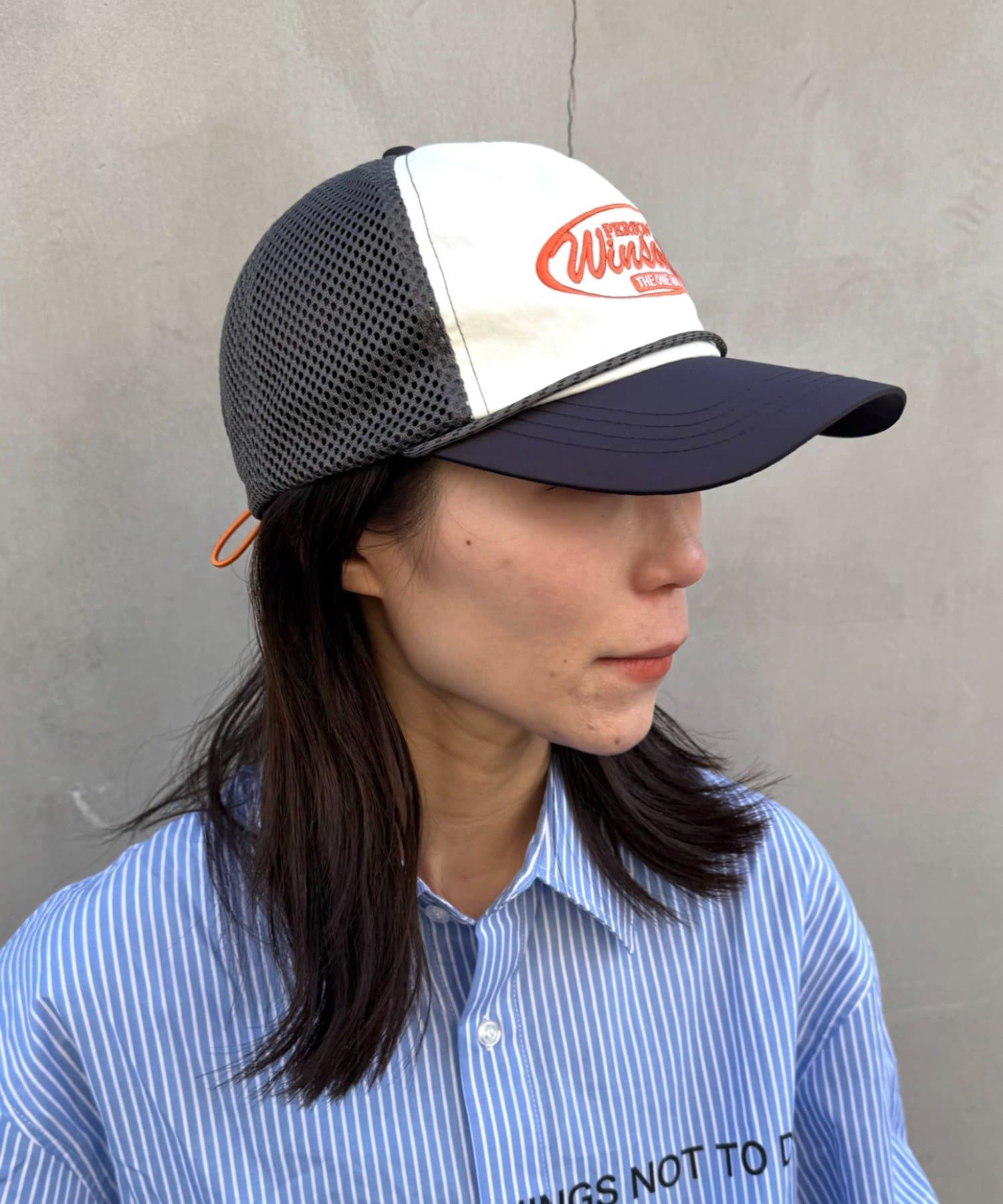 ツバ部分の配色がポイントで、いつものコーデにプラスするだけでこなれ感を演出