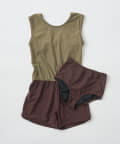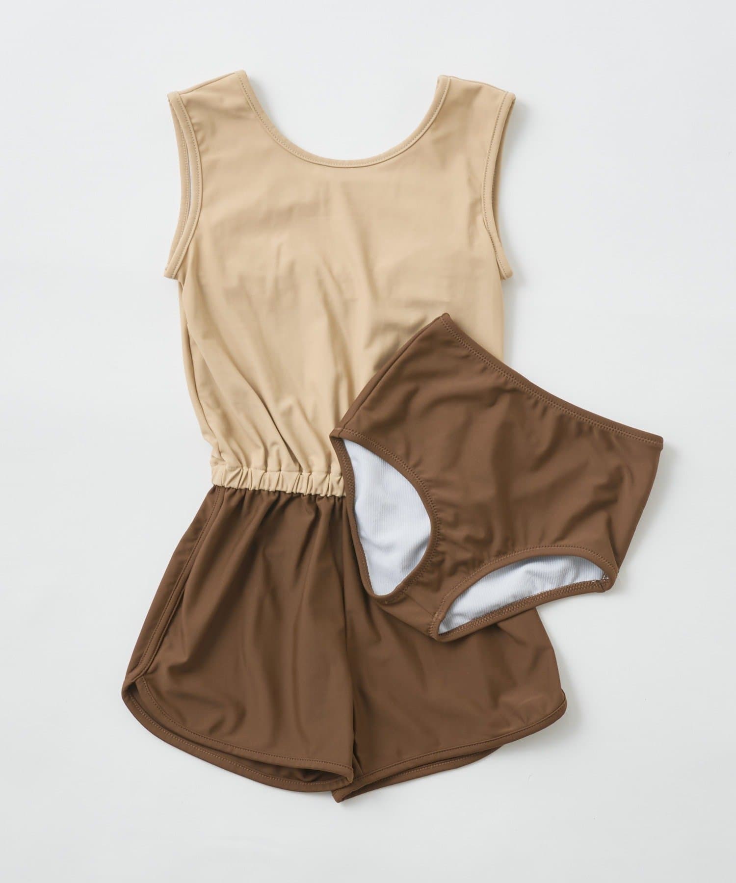 オールインワンにショーツがセットになったセット水着。バイカラーとバッククロスが大人顔負けのシンプルなデザインです。ショーツもセットになっているので安心して着ていただけます。LADYSもお揃いをご用意していますので、せひリンクコーデをお楽しみください。