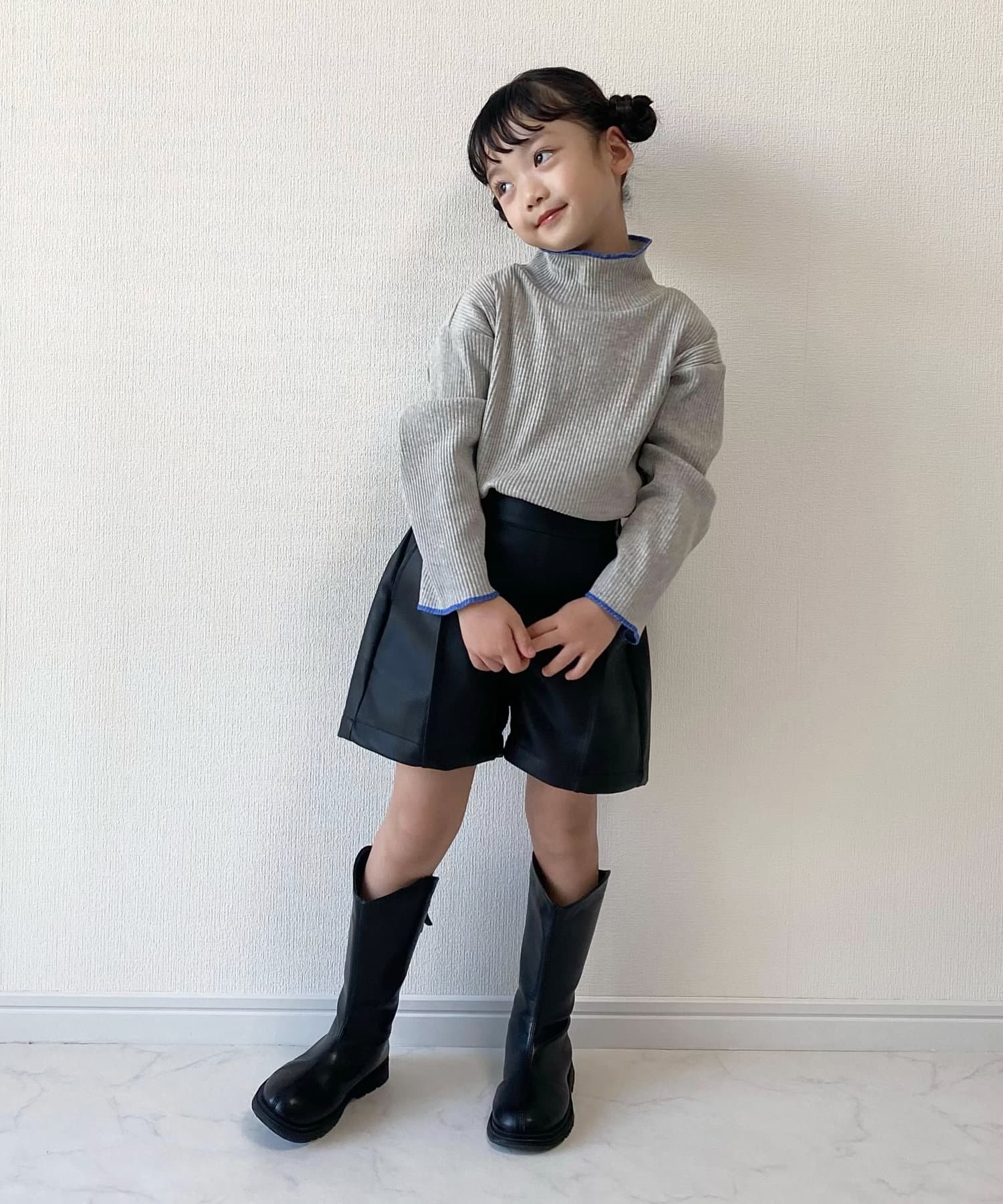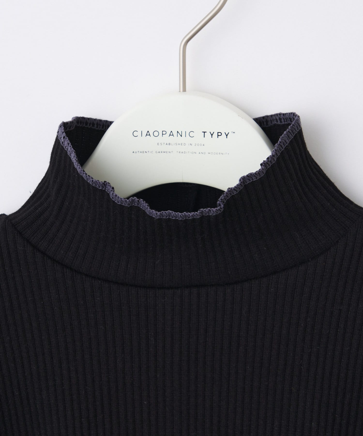 【CIAOPANIC TYPY】【KIDS】配色ステッチハイネックリブカットソー