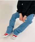 ロゴスウェットやニットカーディガン、ブラウスなど合わせるトップスを選ばない万能デニムです。