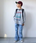 ロンTやロゴスウェットを合わせた定番カジュアルスタイルがおすすめ。