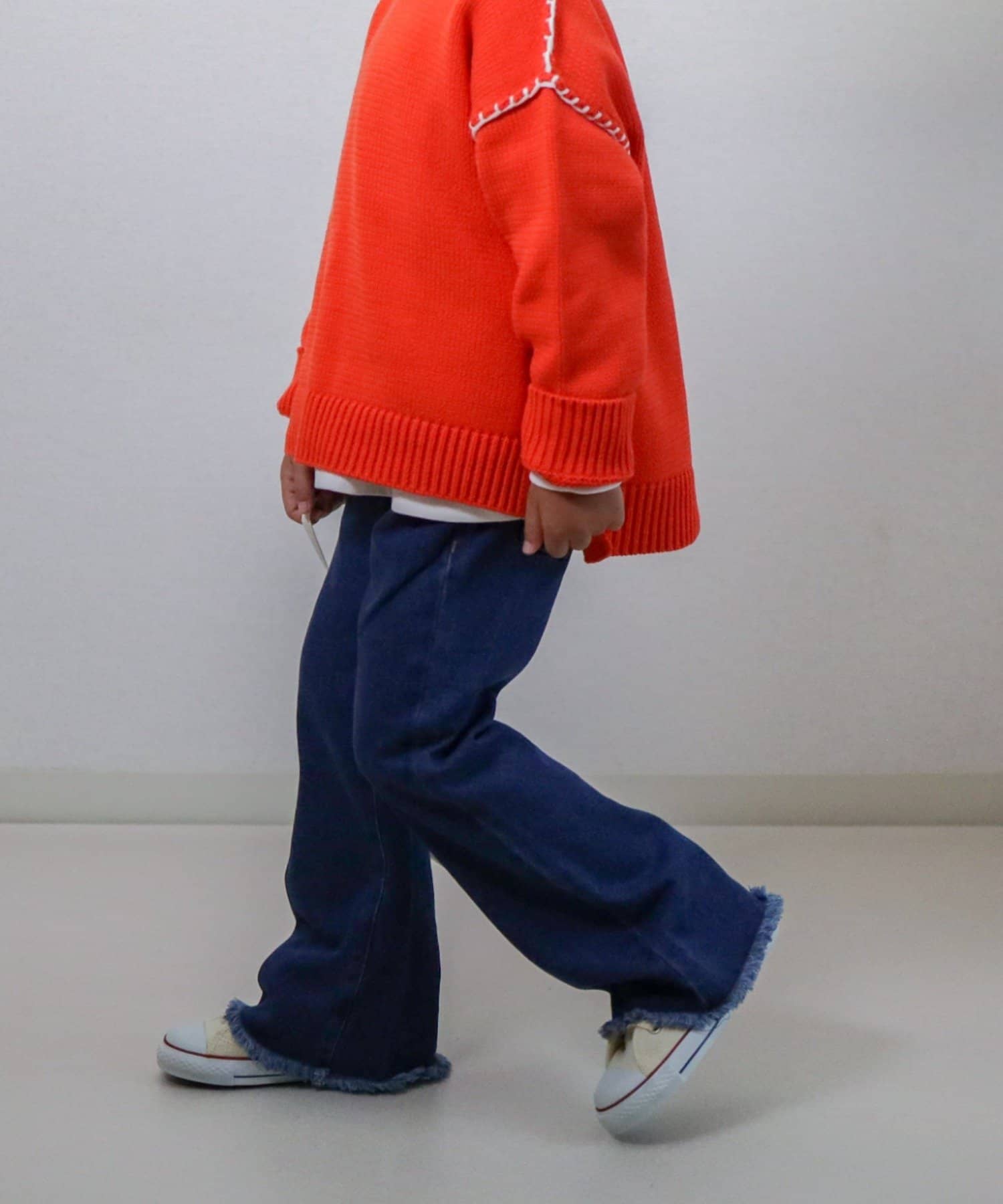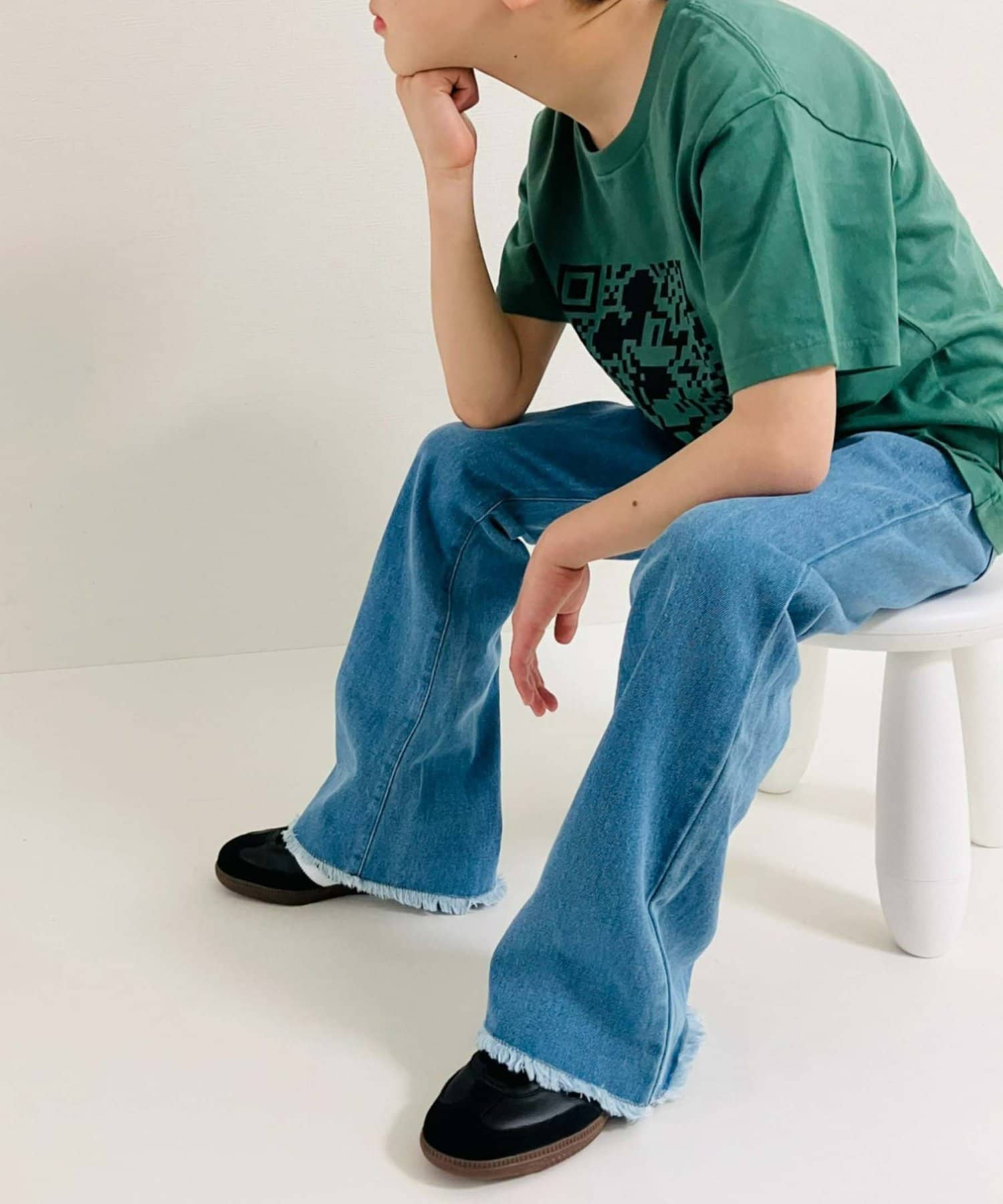 【KIDS】【TYPY DENIM】甘織り裾フリンジフレアデニム