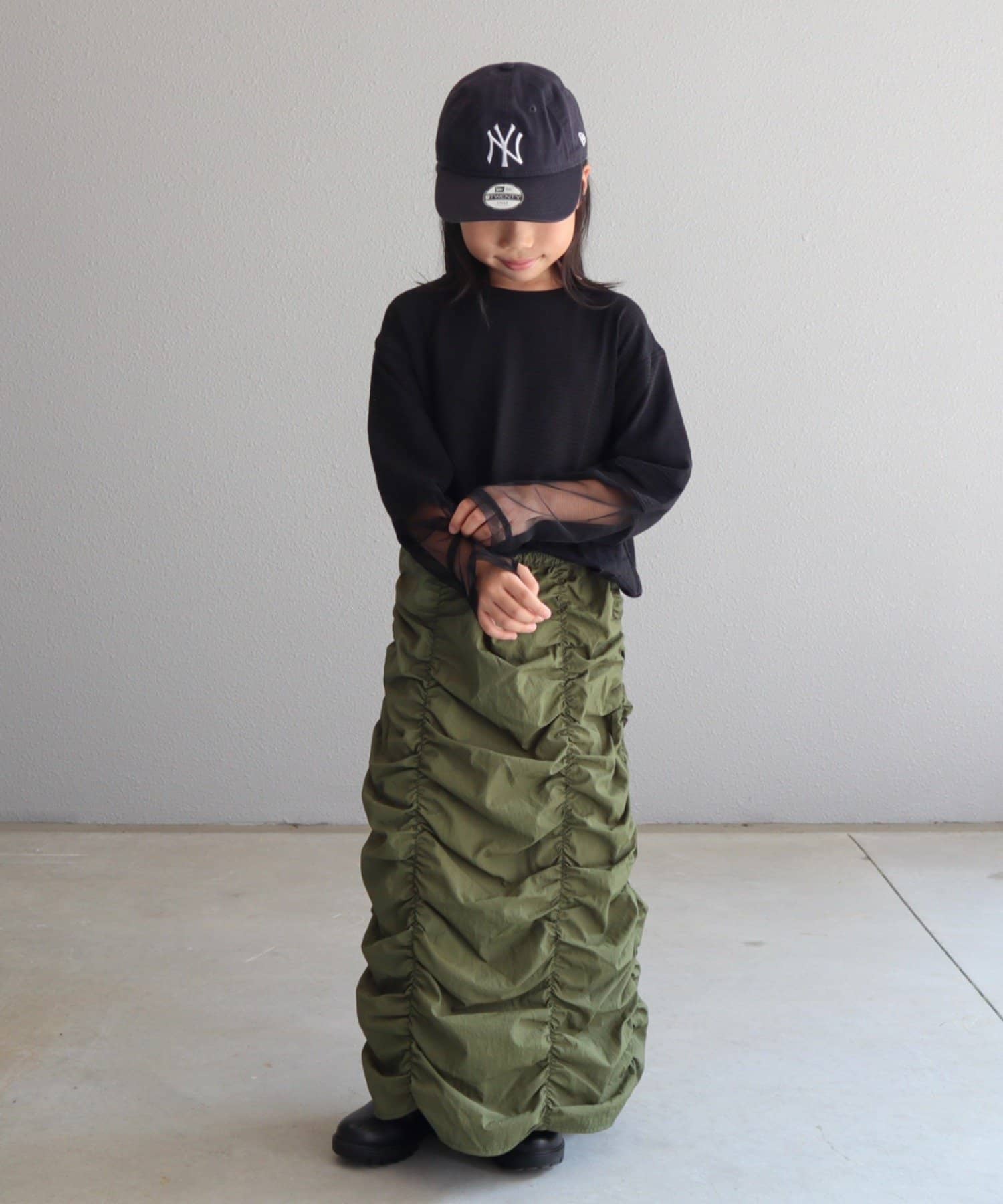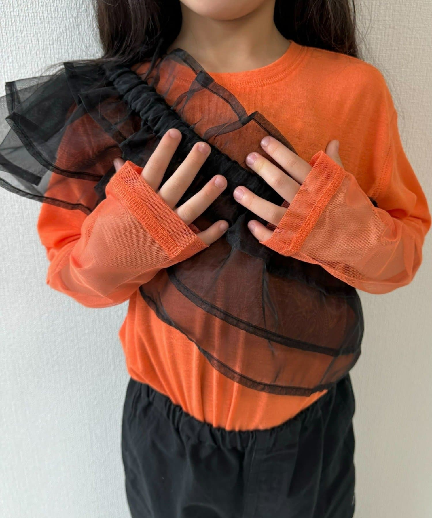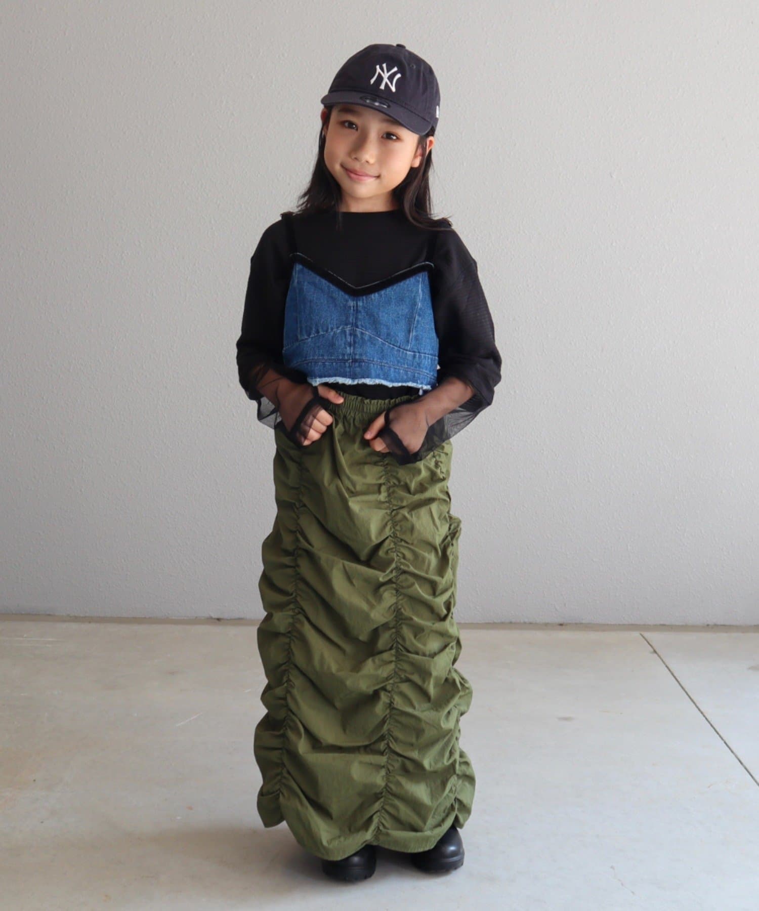 チュール素材の切り替えデザインを施し、周りと差が付くこなれた雰囲気に!