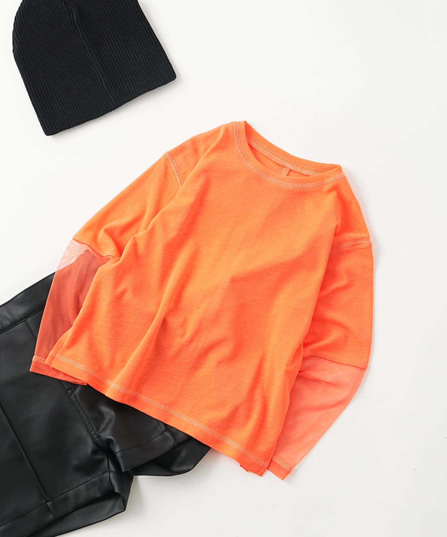 シアー感と袖切り替えがポイントなので、1枚でもインナー使いでも活躍します。