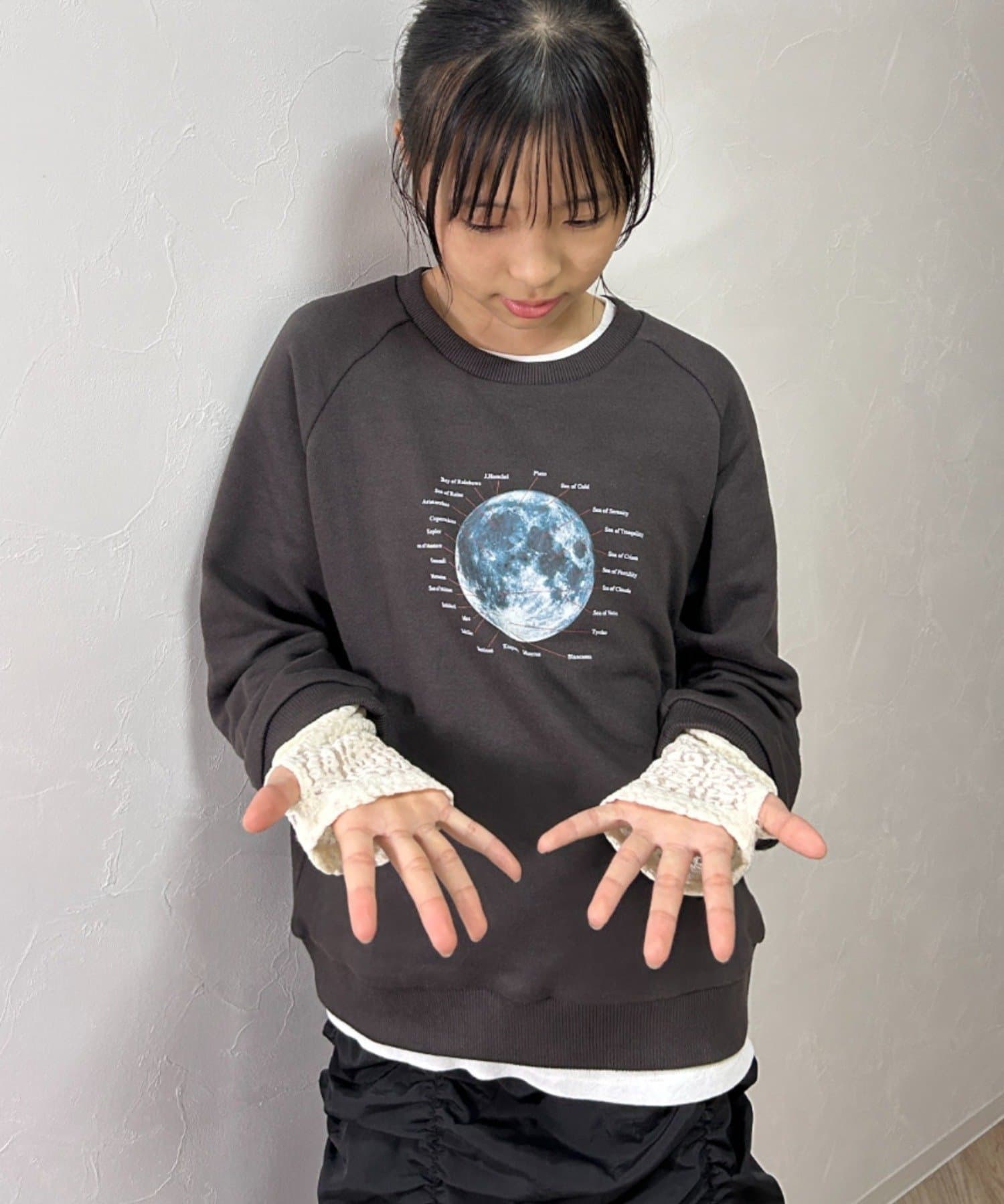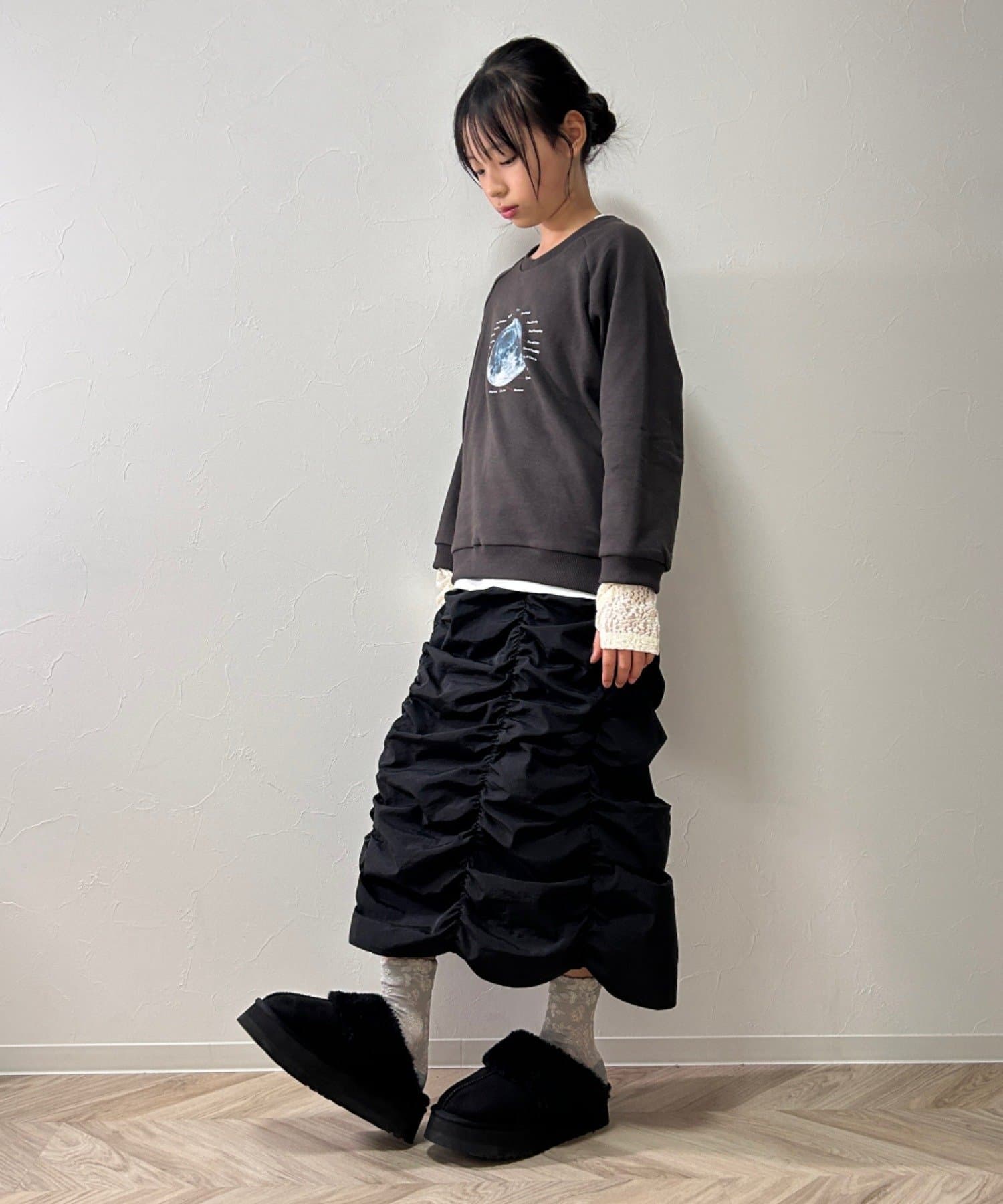 袖口の指穴に通して、袖をクシュっとさせるのも♩