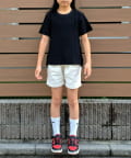 ふわっとしたスカートや、ショートパンツと合わせた女の子っぽいコーデもおすすめ◎