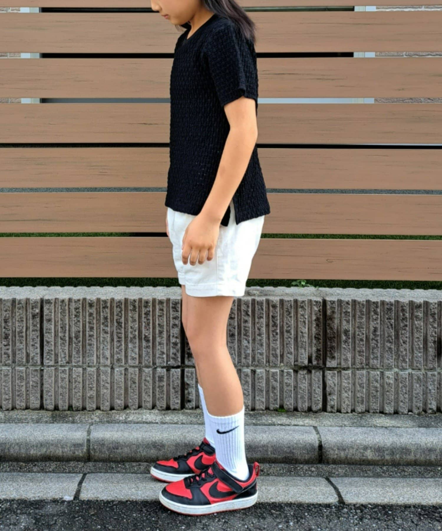 素材 本体:綿48% ナイロン42% 再生繊維7% ポリウレタン3%、リブ部分:綿72% ポリエステル24% ポリウレタン4%