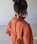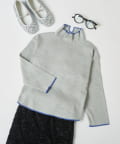 ネック部分の後ろにはスリットを施し、窮屈感を軽減させるとともに、こなれ感もプラス。
