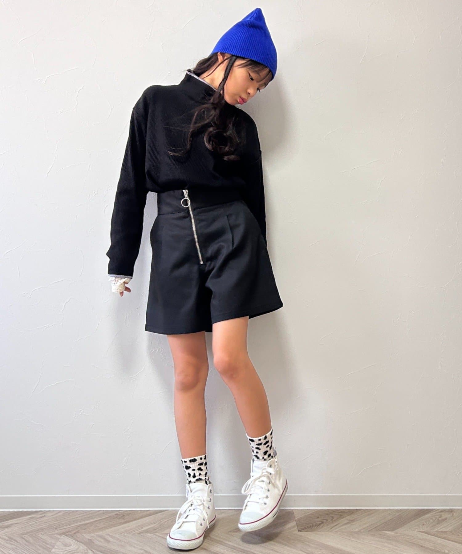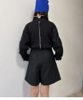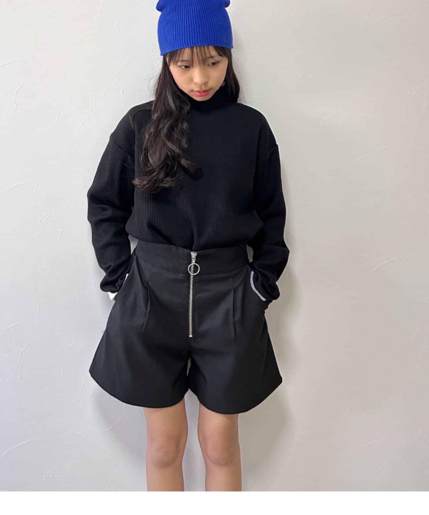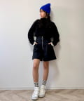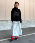 すっきりとしたシルエットのアイテムなので、ボトムにインして合わせるのがおすすめです。