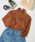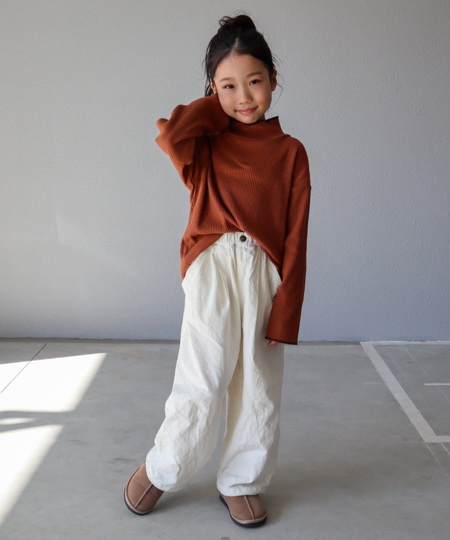 一枚で着るのはもちろん、オーバーオールやワンピースなどのインナーとしても使えるアイテム。
