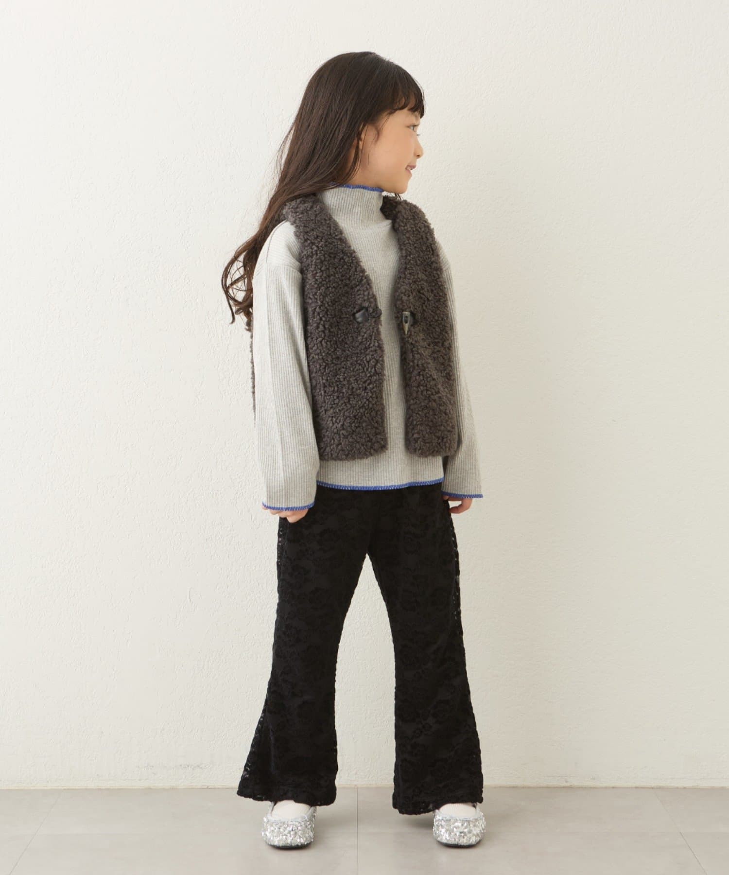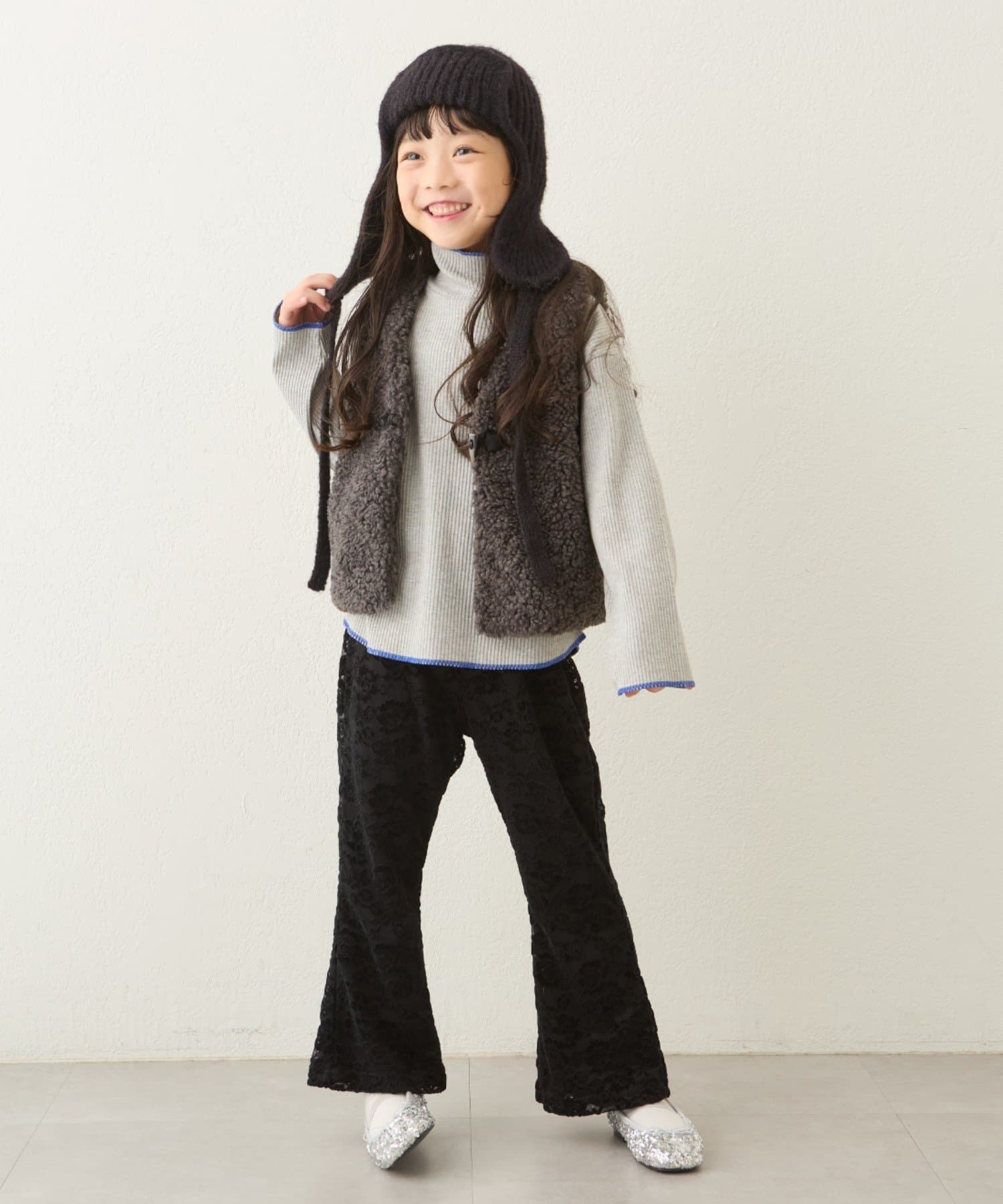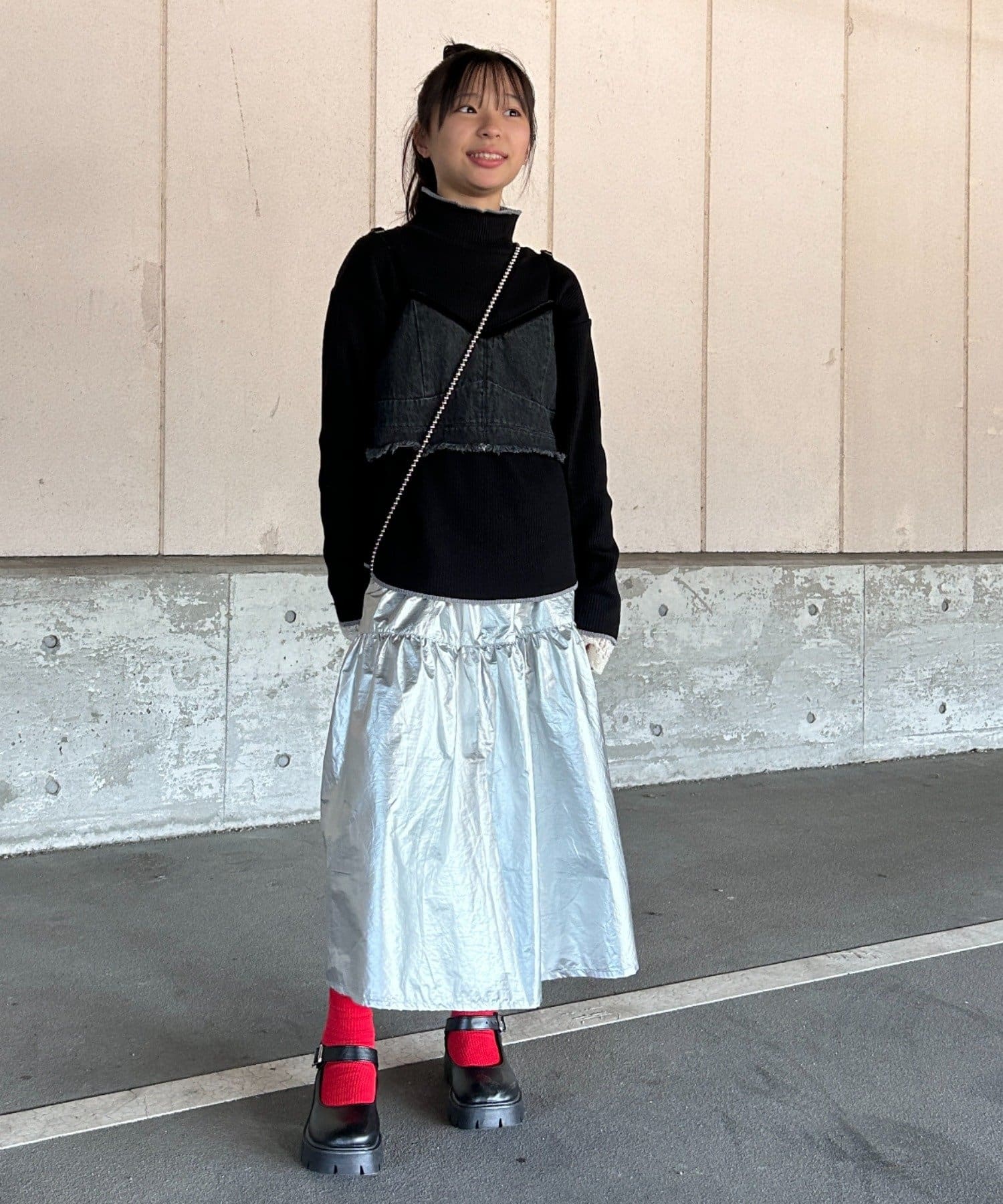 パールビスチェやベストなどと合わせると、トレンド感がアップした着こなしに!