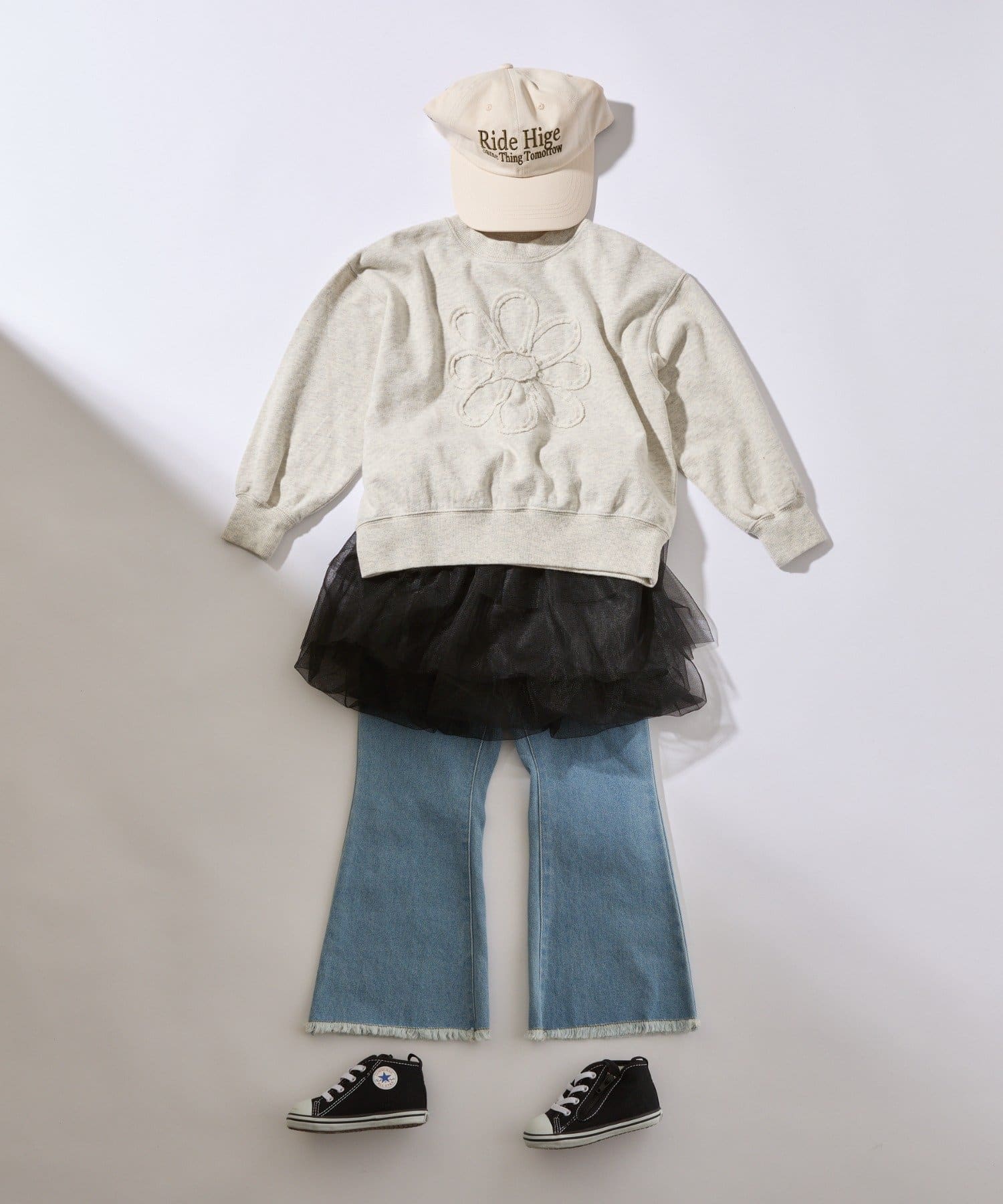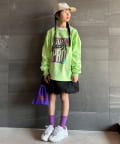 ゆるっとしたスウェットやカットソーと合わせたスタイリングで