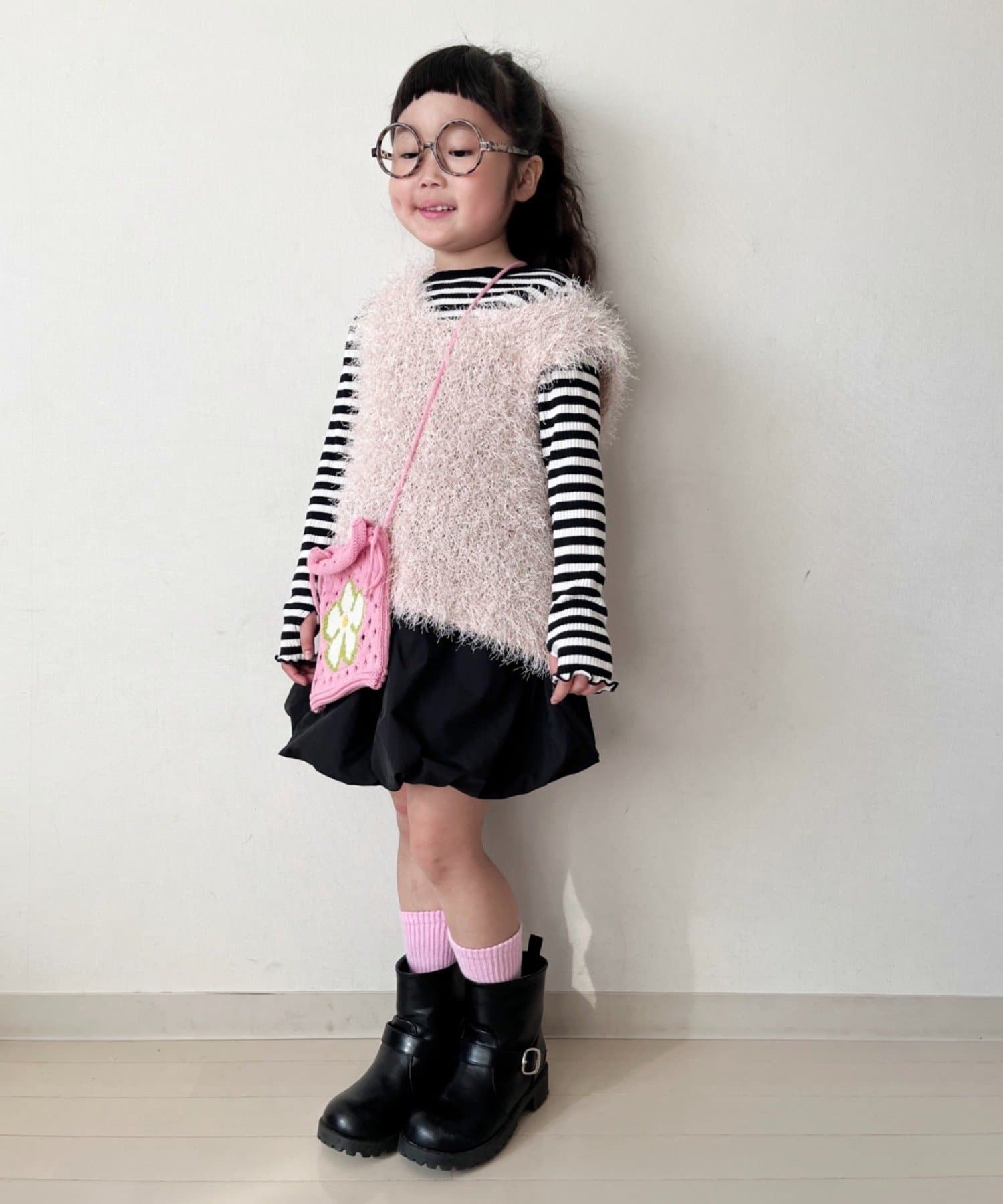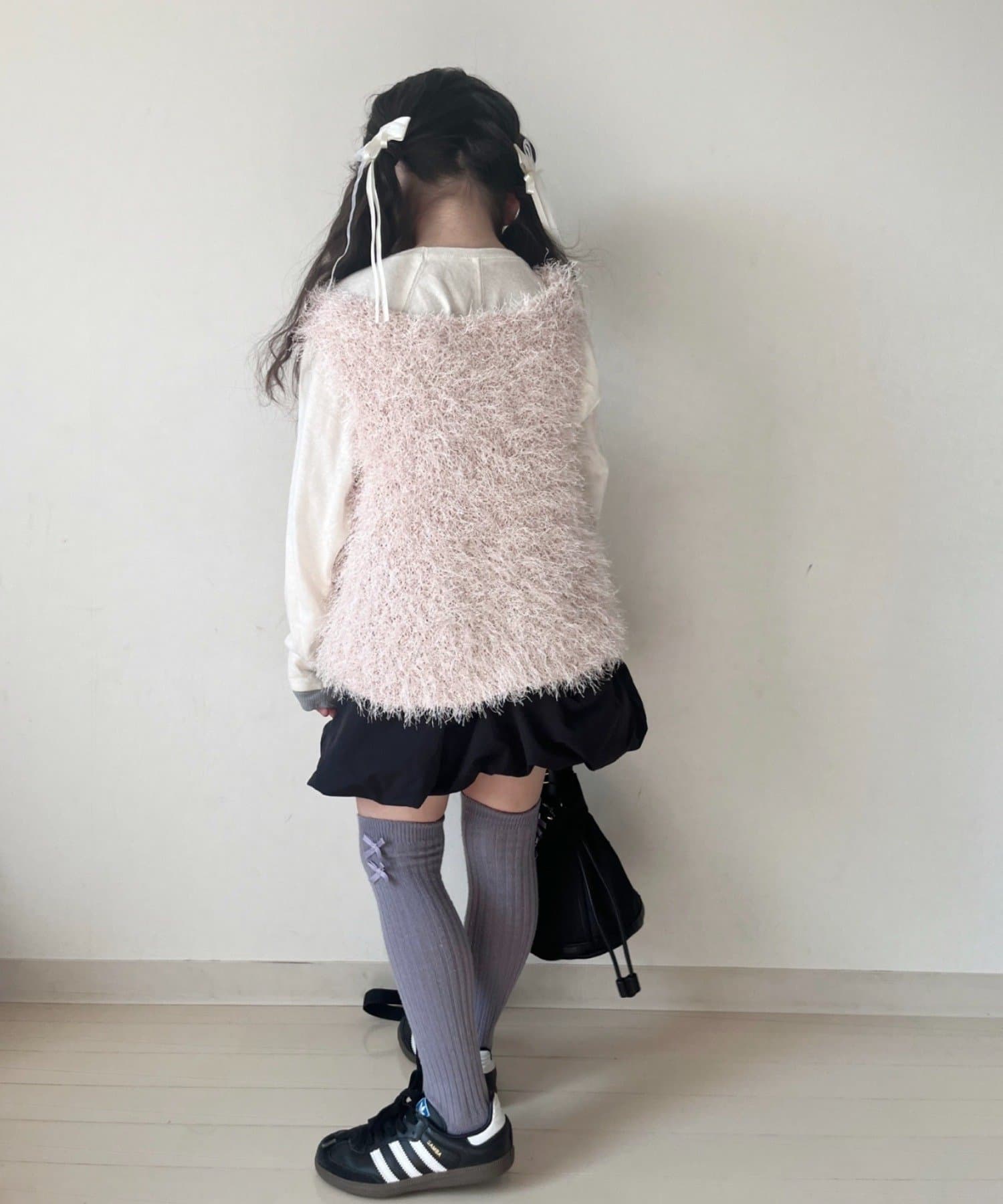 フリルトップスやシャギーベストなどかわいらしいアイテムと