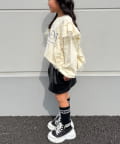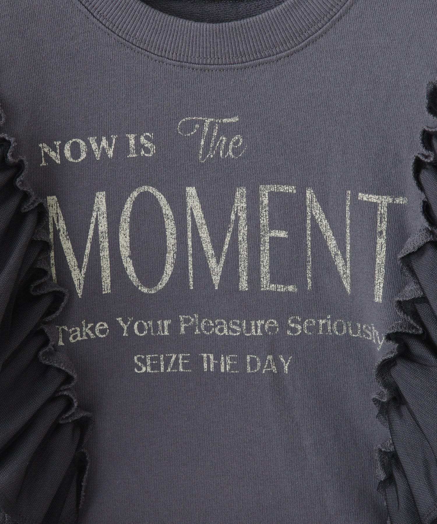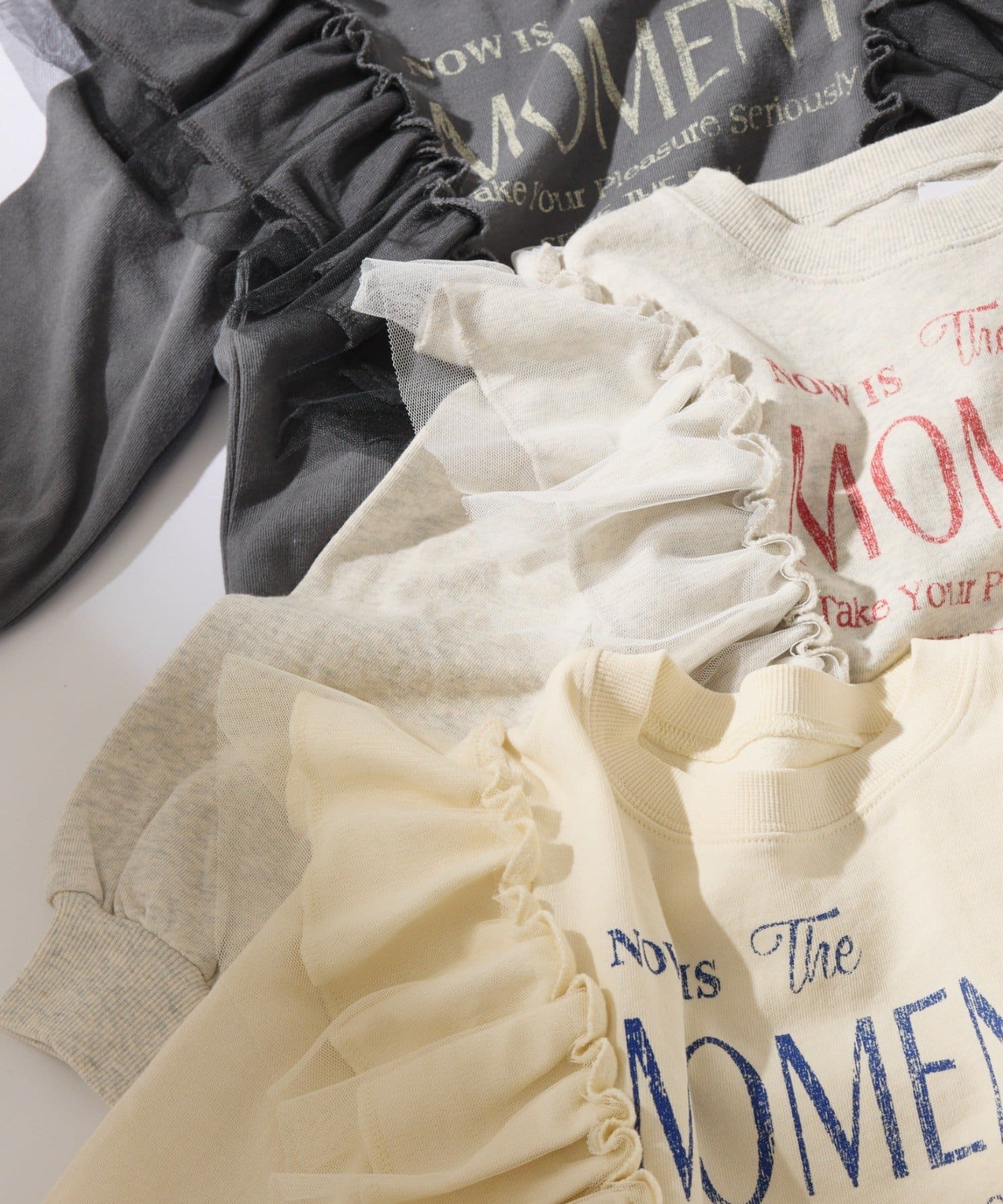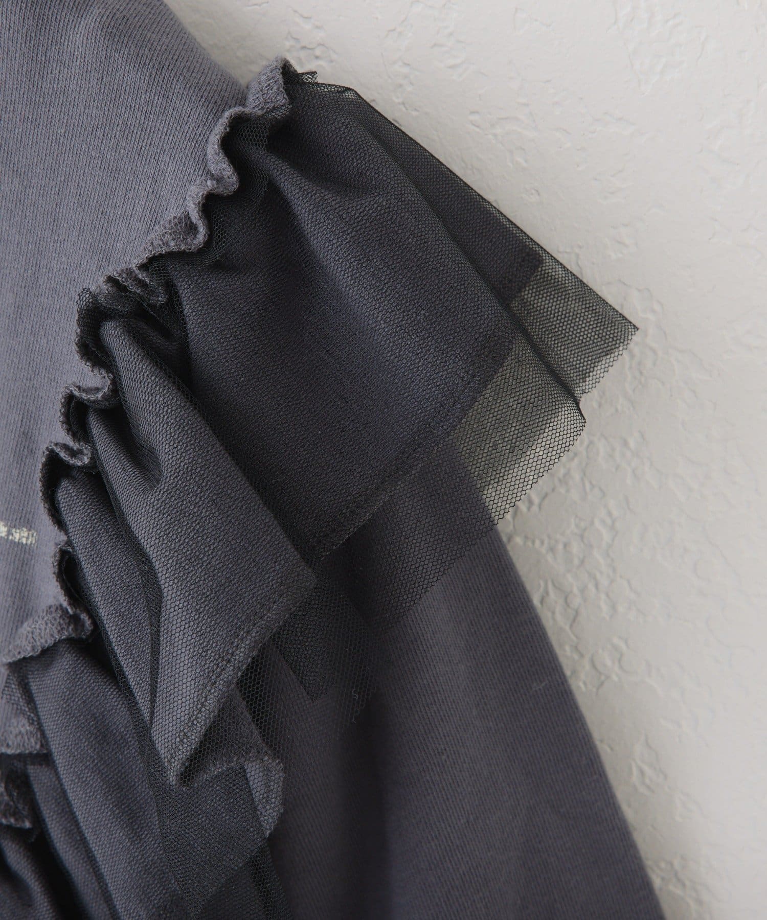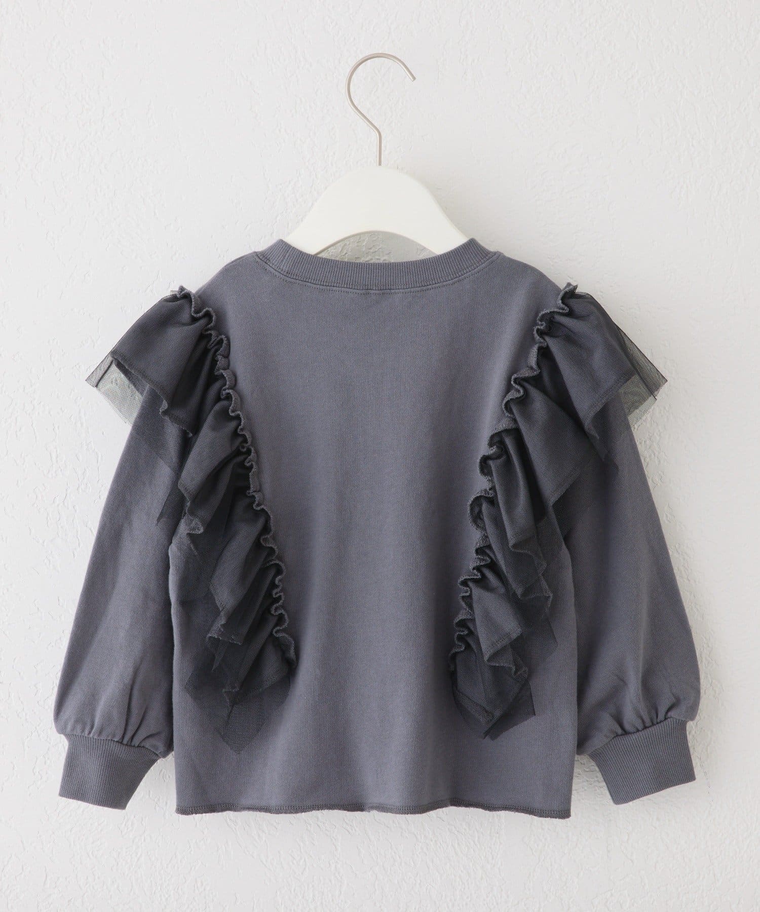 サイドに施したボリュームたっぷりのフリルチュールが目を引くスウェット。
