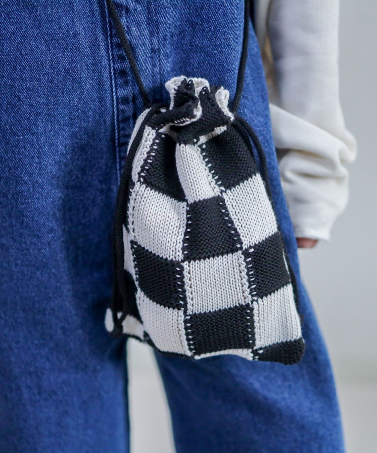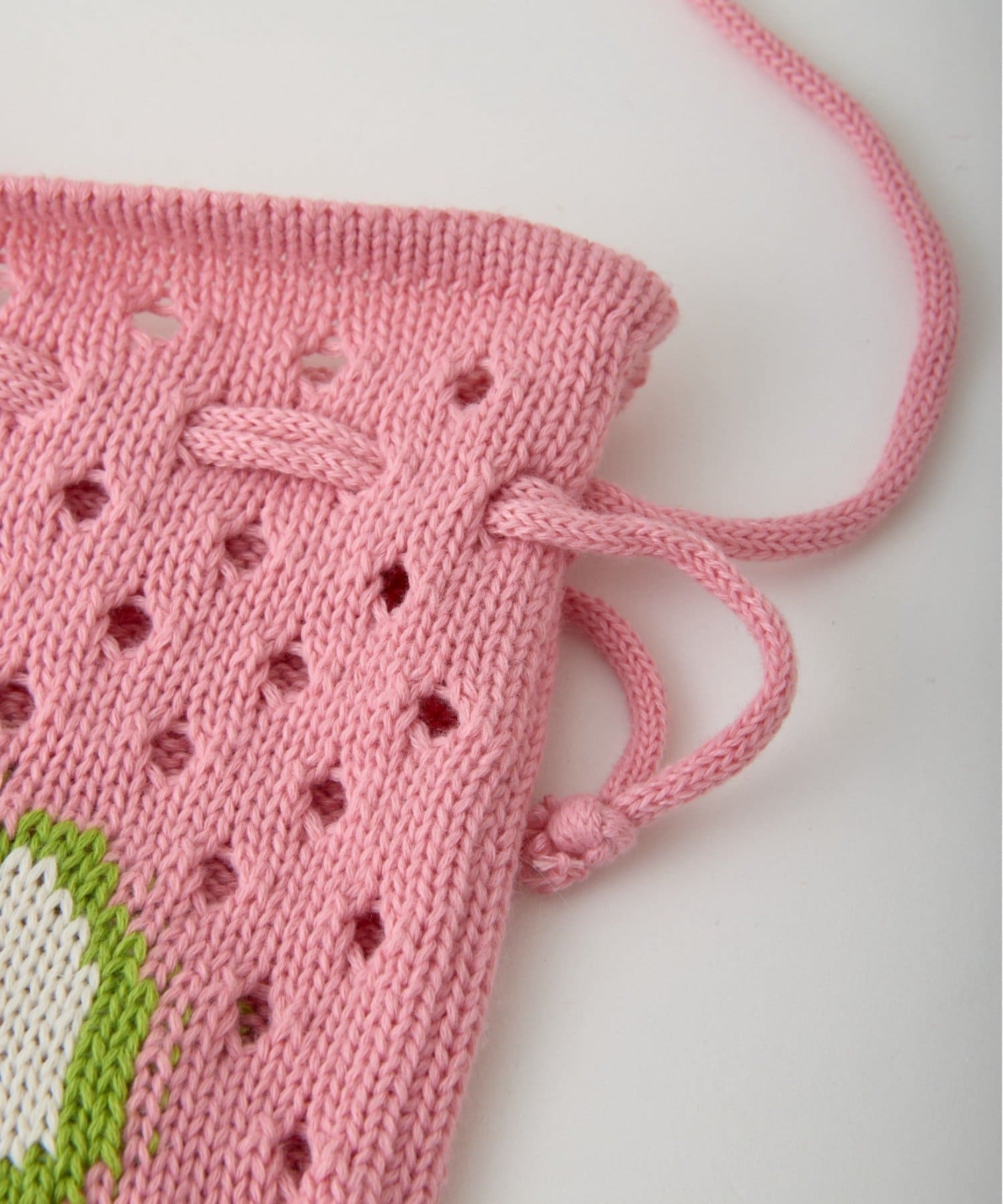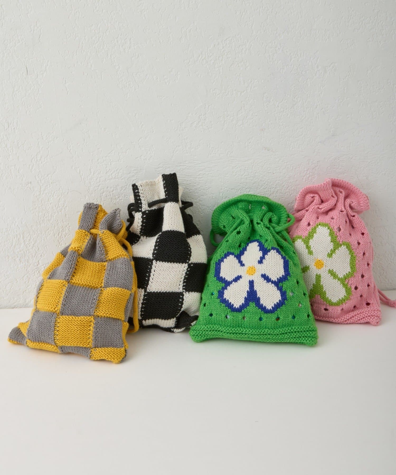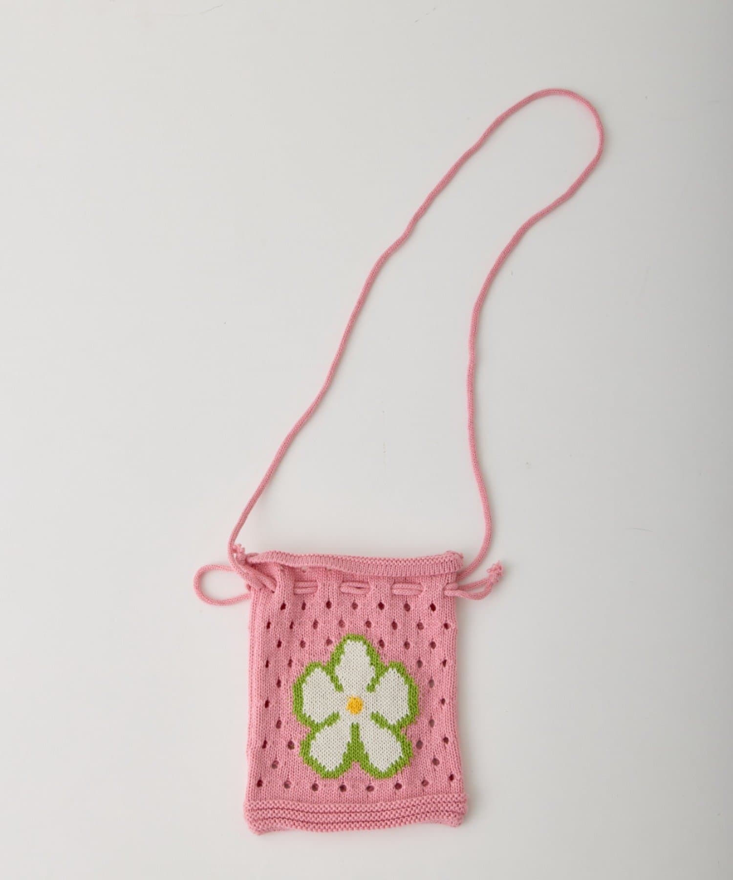 POPな柄が目を引くニット巾着バック