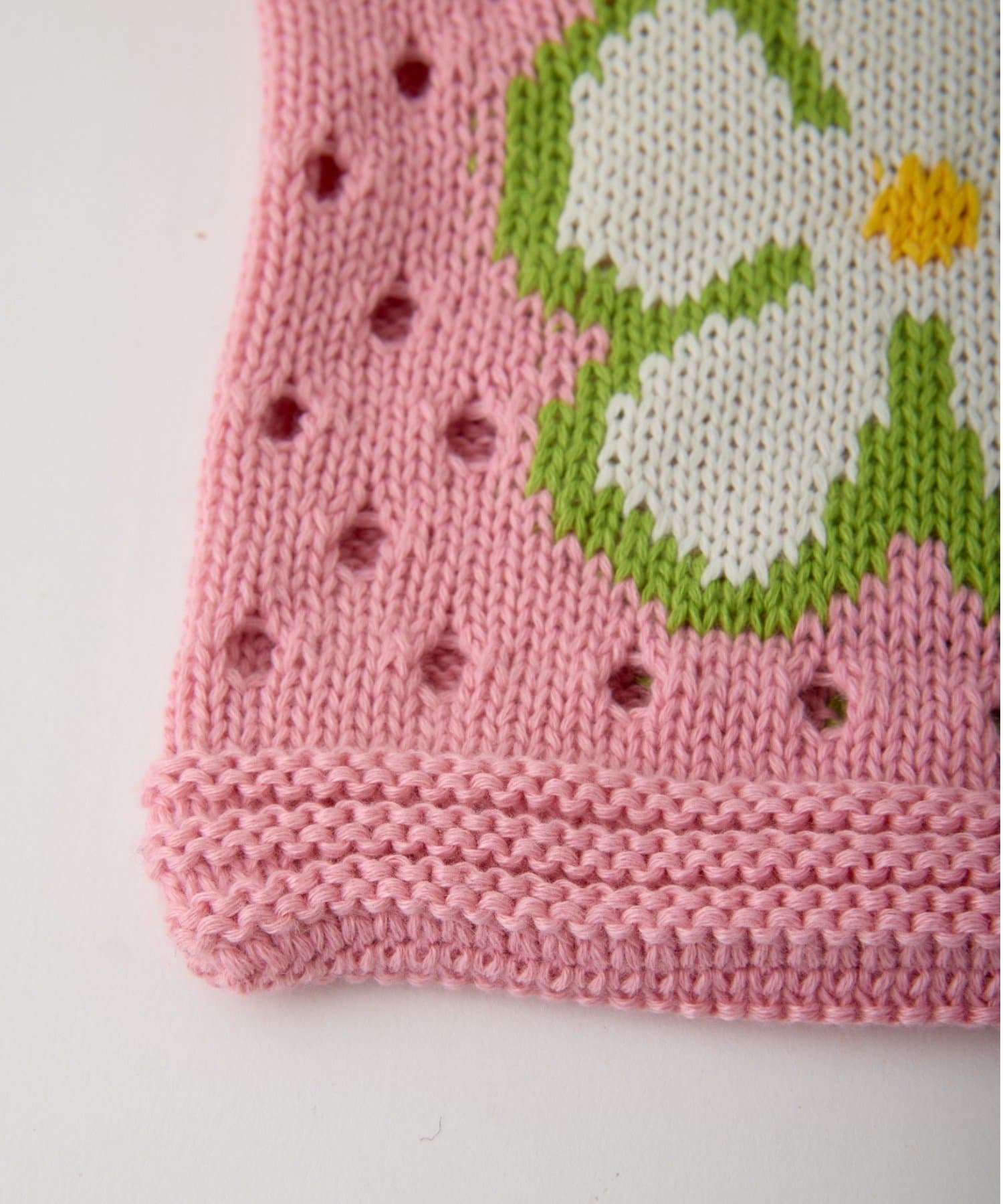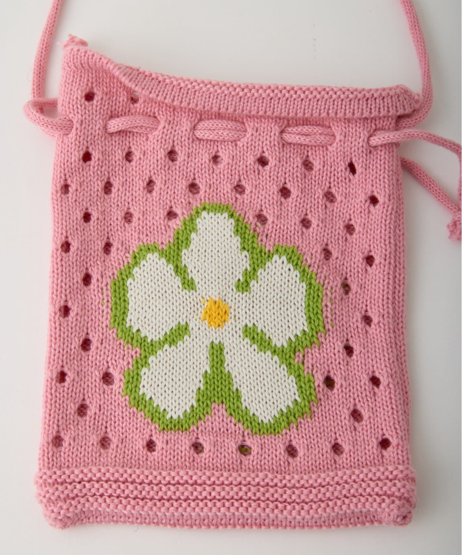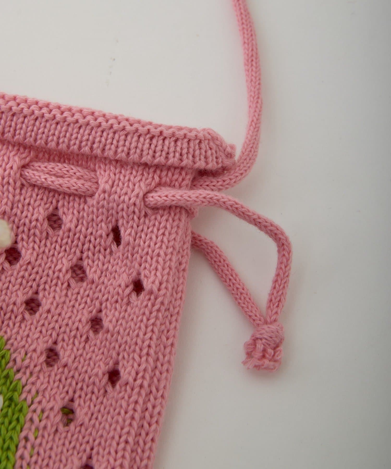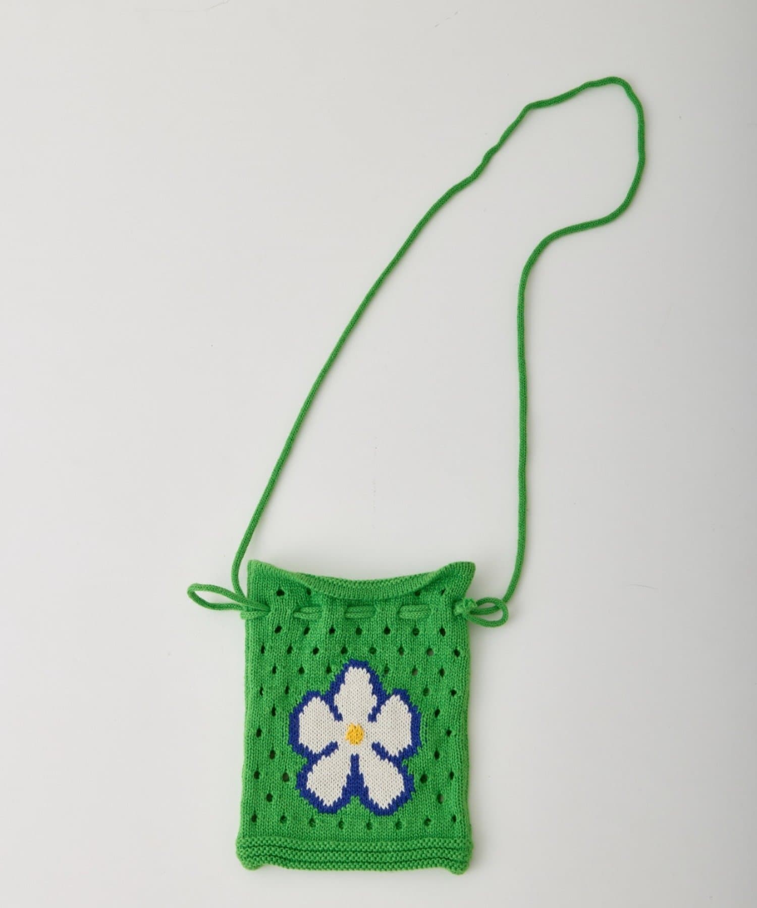 POPな柄が目を引くニット巾着バック