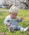 アシメデザインでトレンドライクなロンパースに仕上げました。