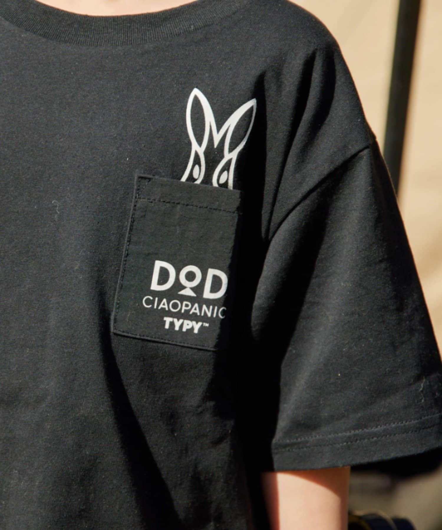 DOD × CIAOPANIC TYPYのロゴとポケットから顔を出しているうさぎがかわいい♪