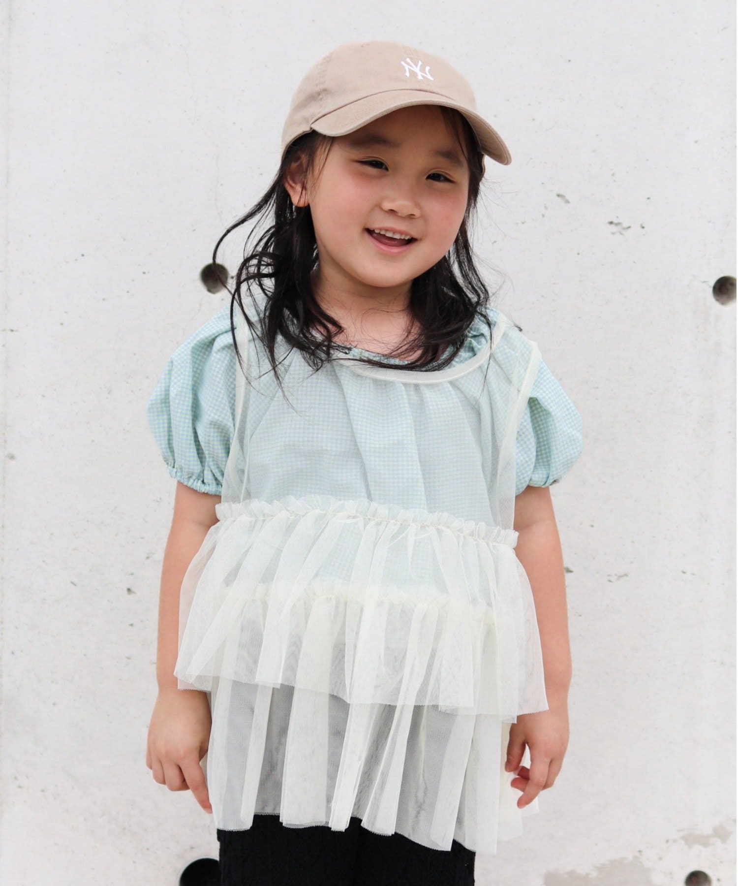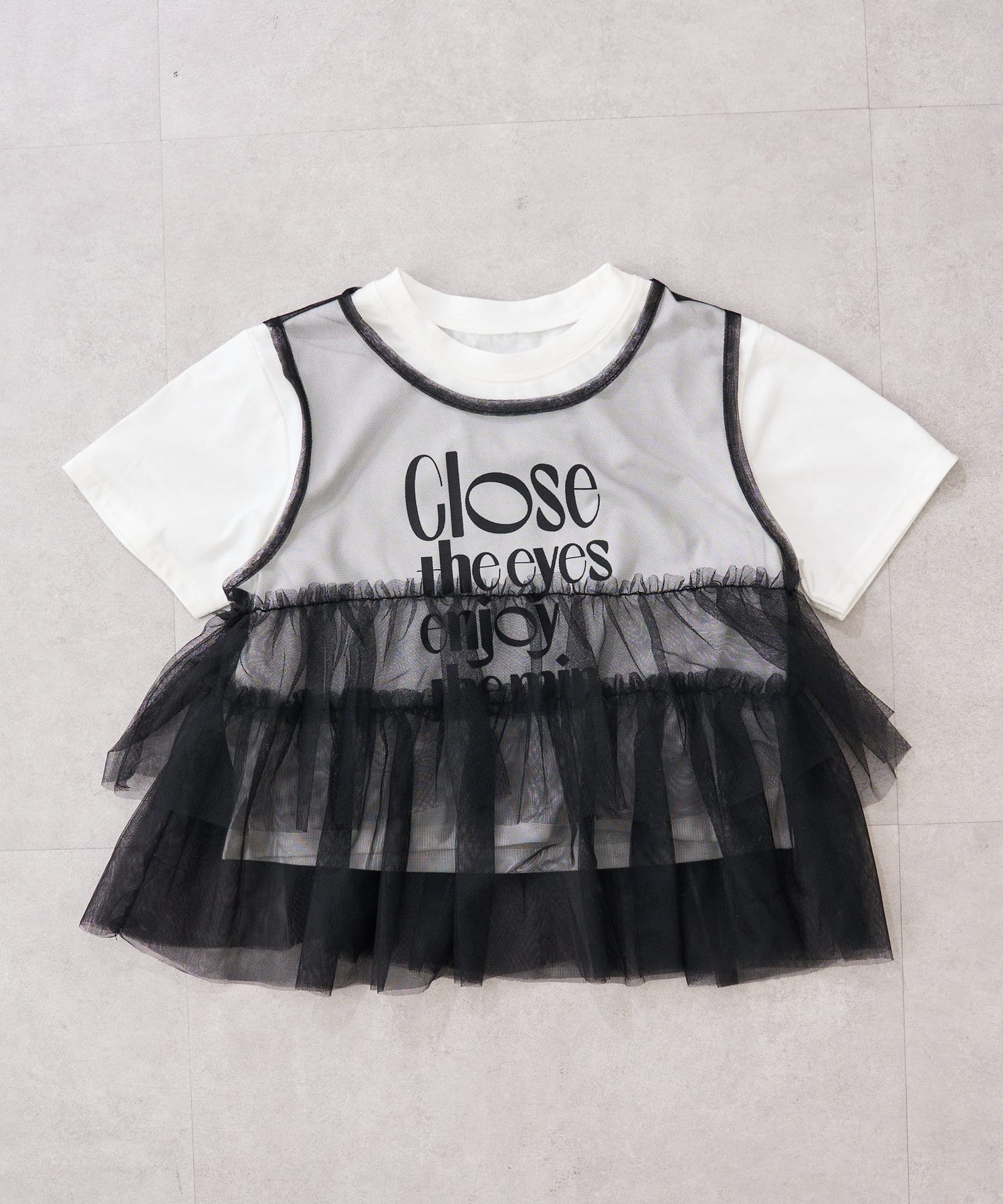 【KIDS】レイヤードチュール付きロゴトップス