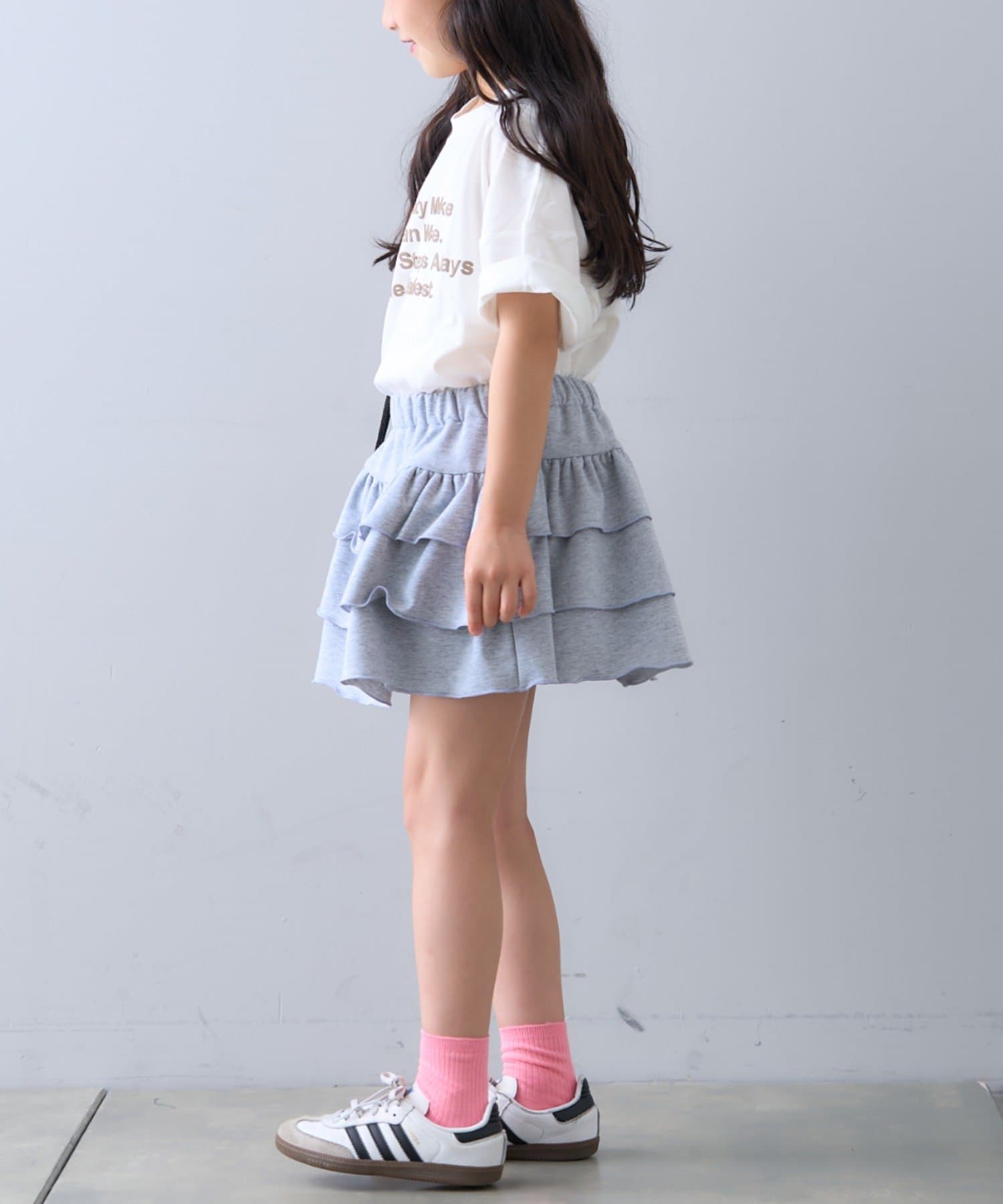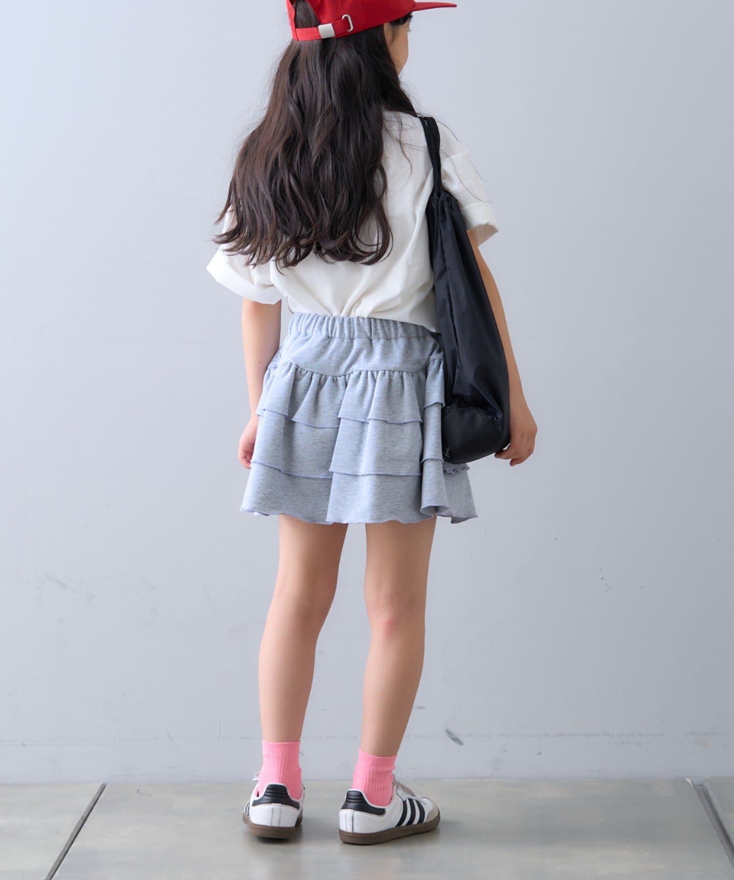 ふんわりと広がるフリルが、女の子らしさを引き立てコーディネートがパッと華やかに。