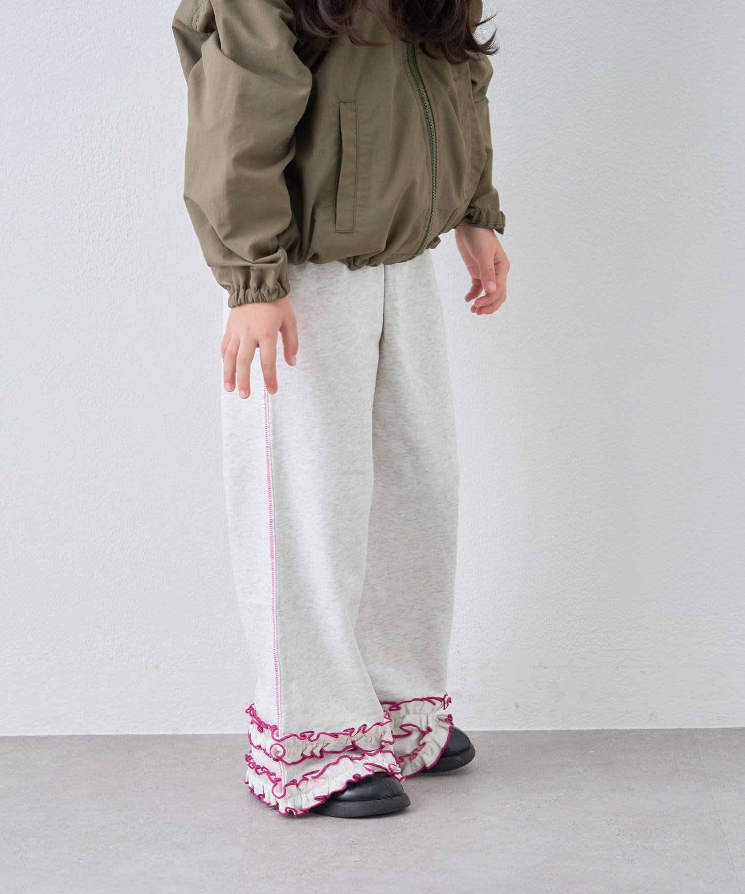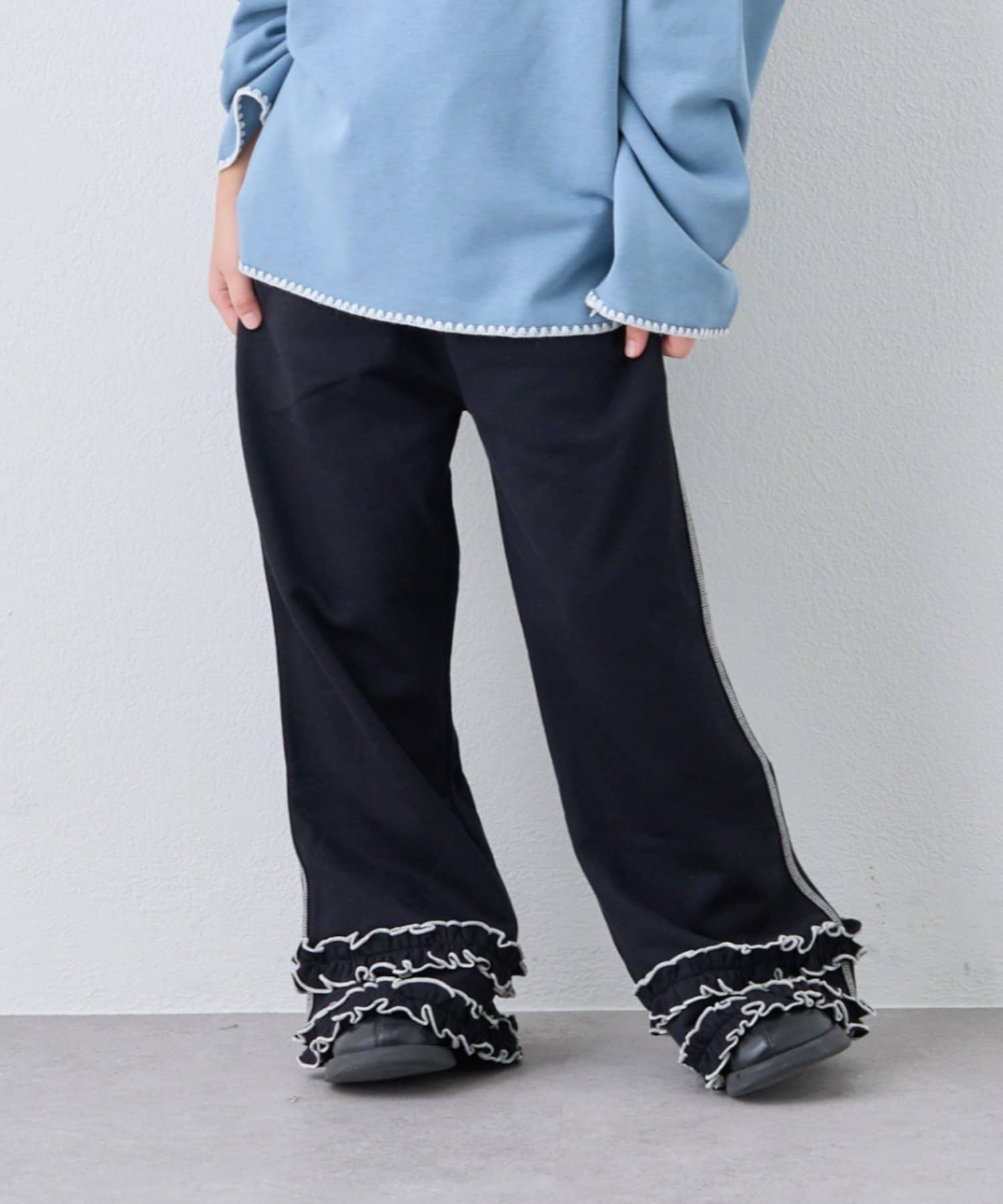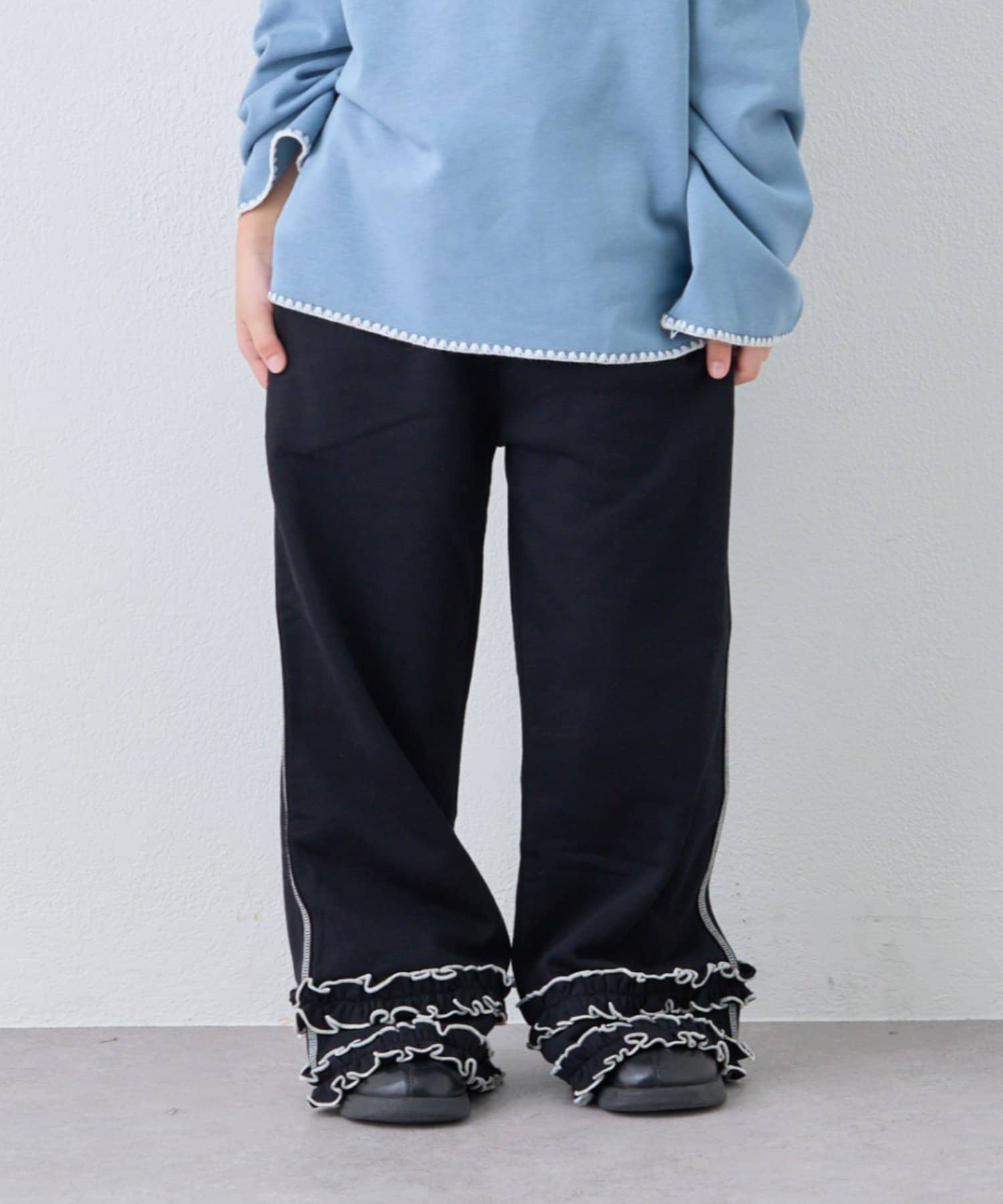 【WEB限定】【KIDS】裾フリル配色ステッチスウェットパンツ