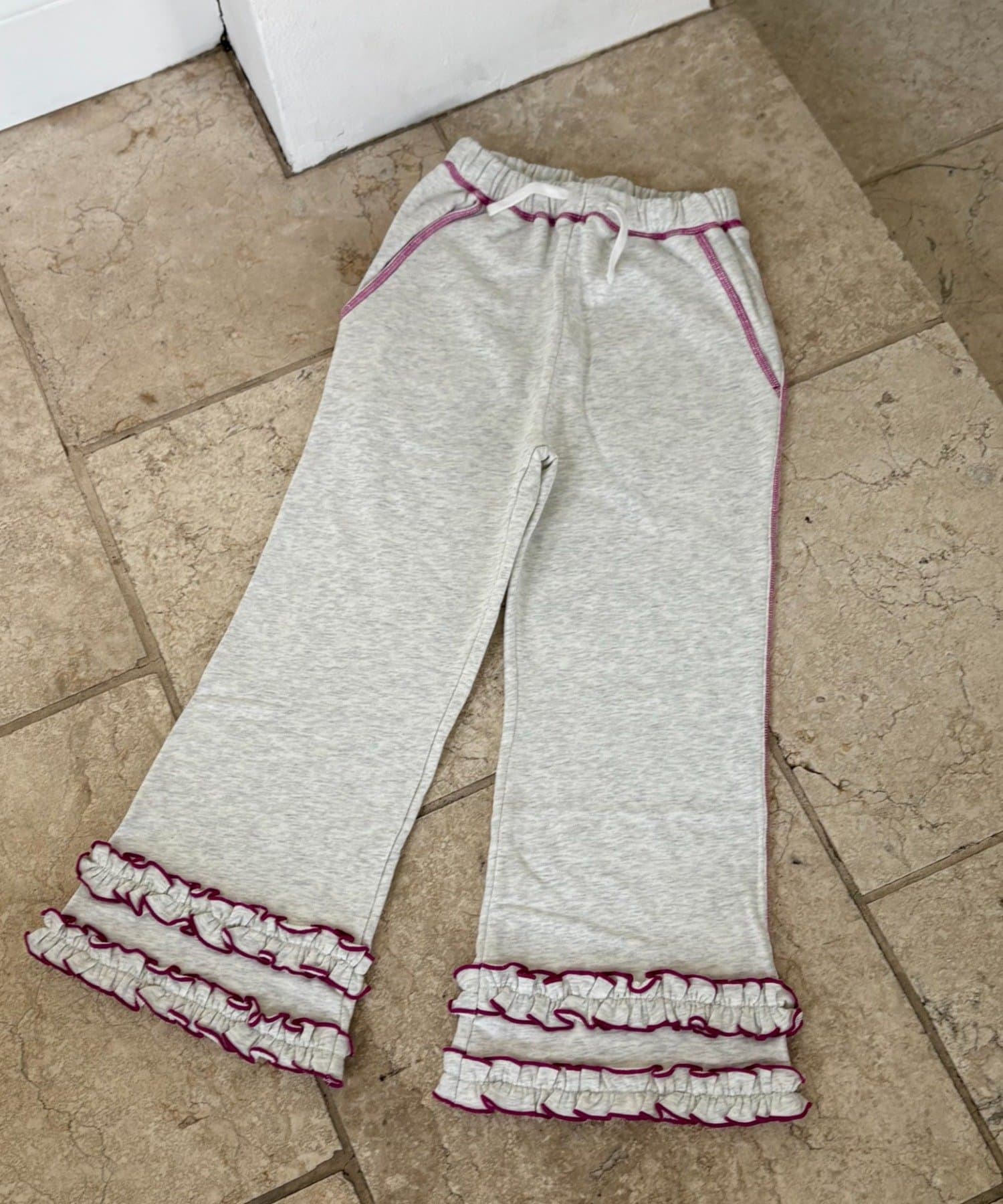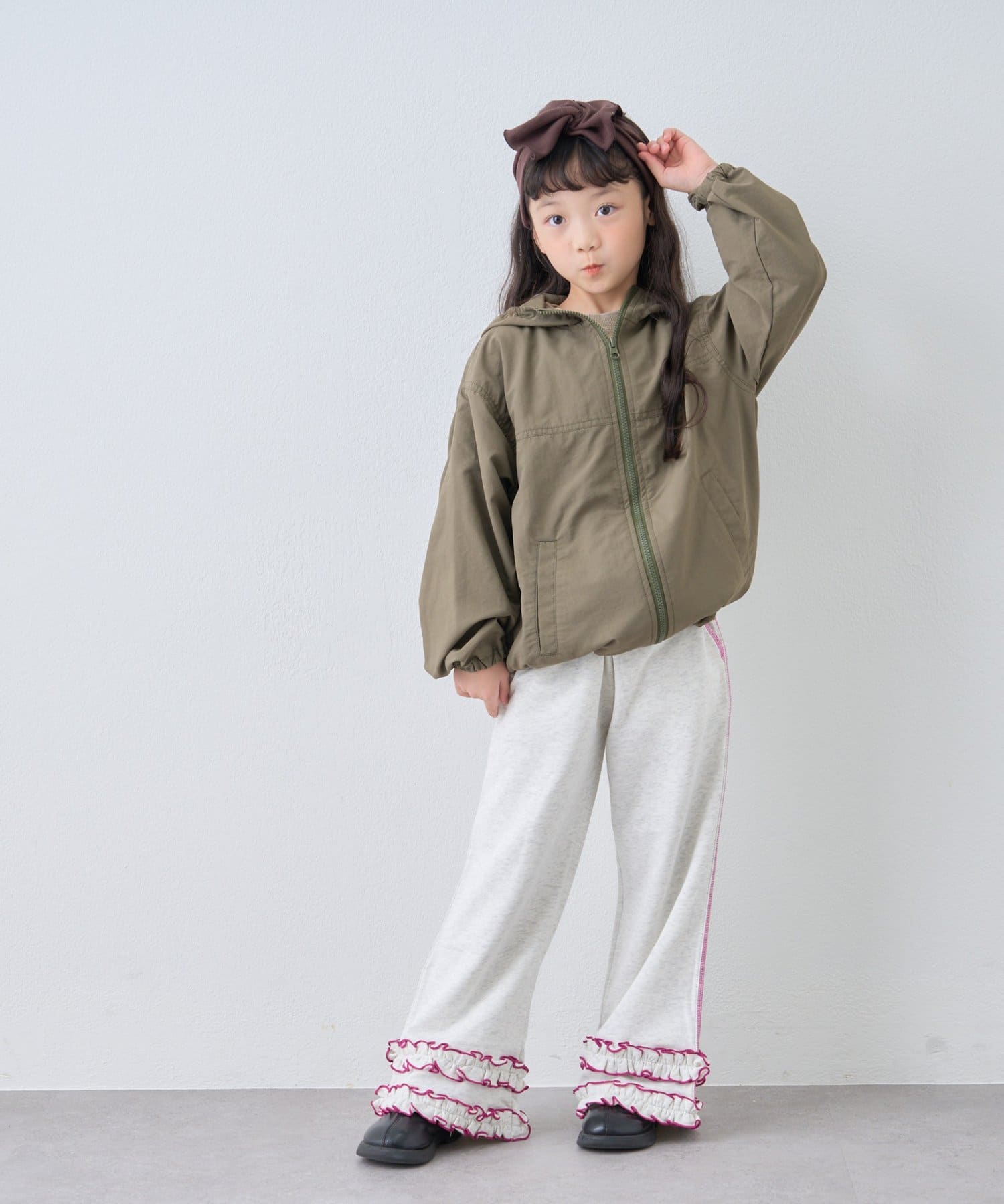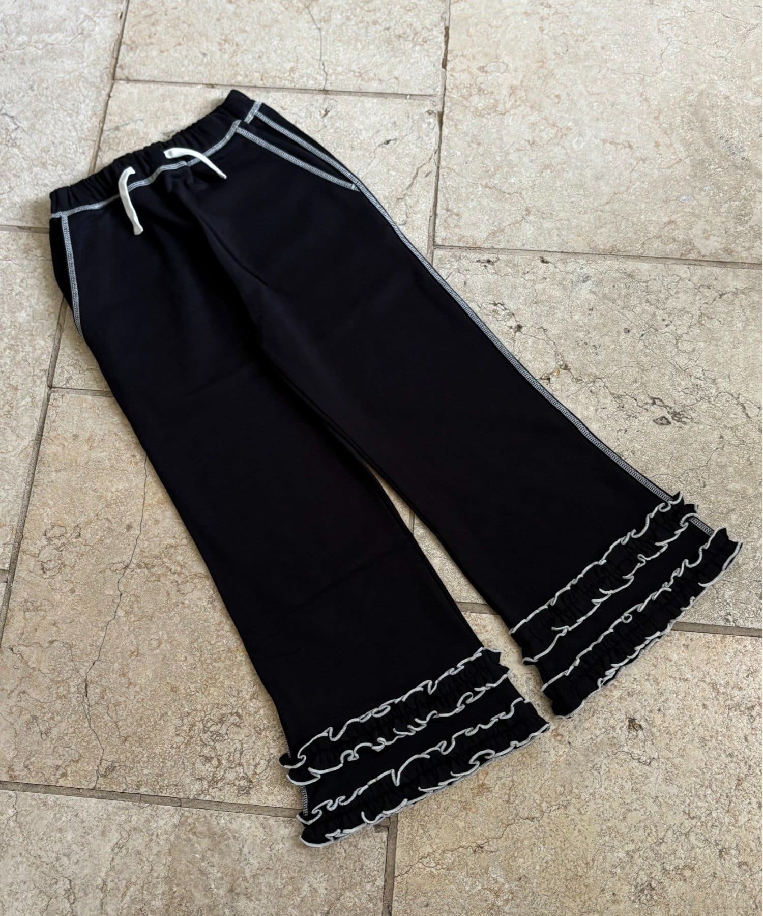 【WEB限定】【KIDS】裾フリル配色ステッチスウェットパンツ