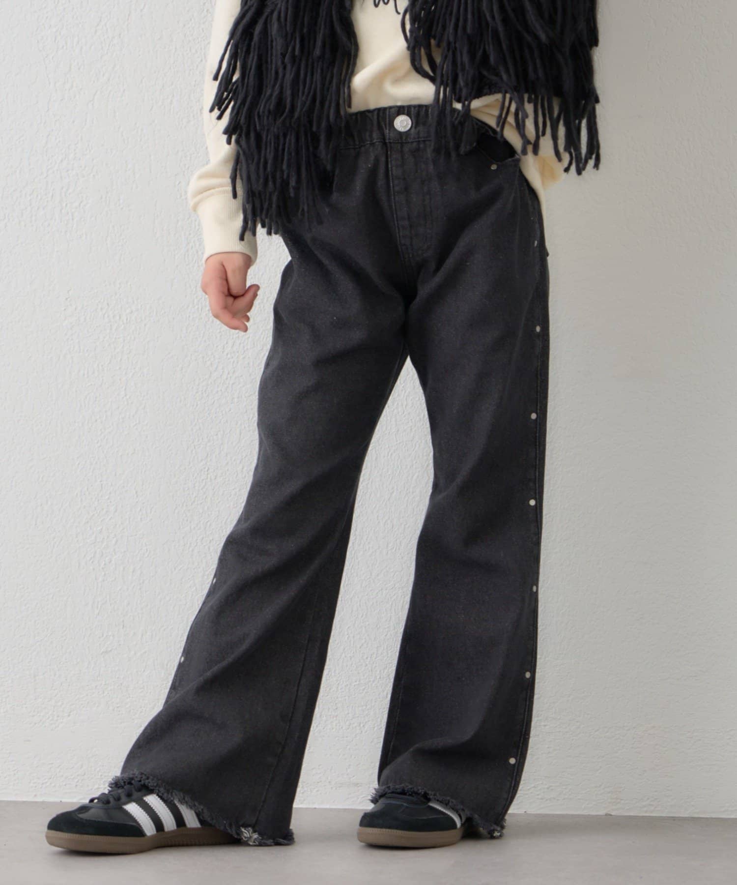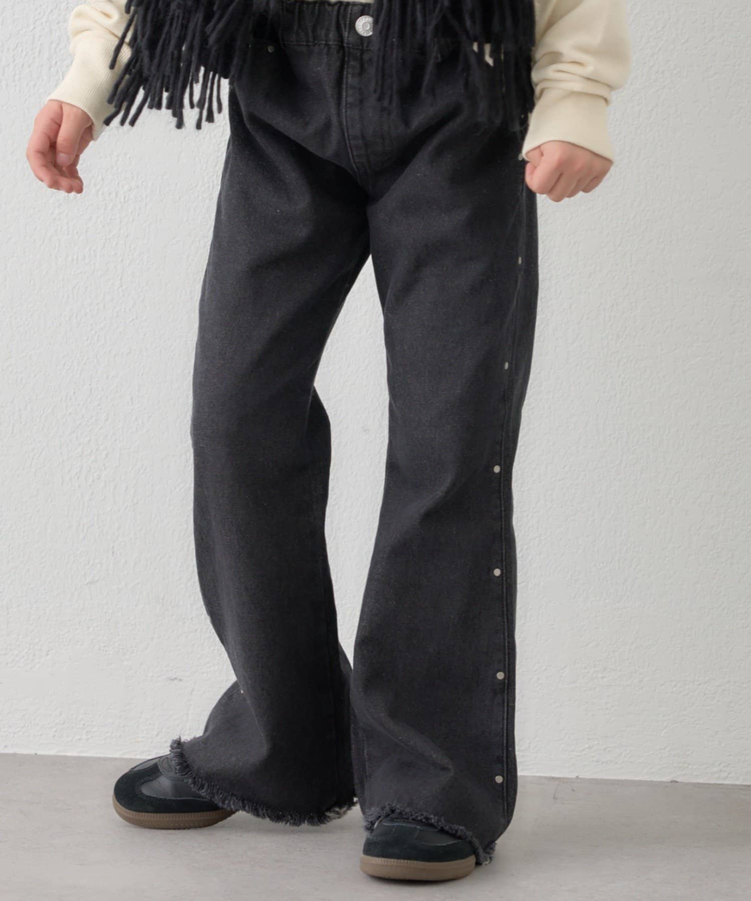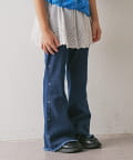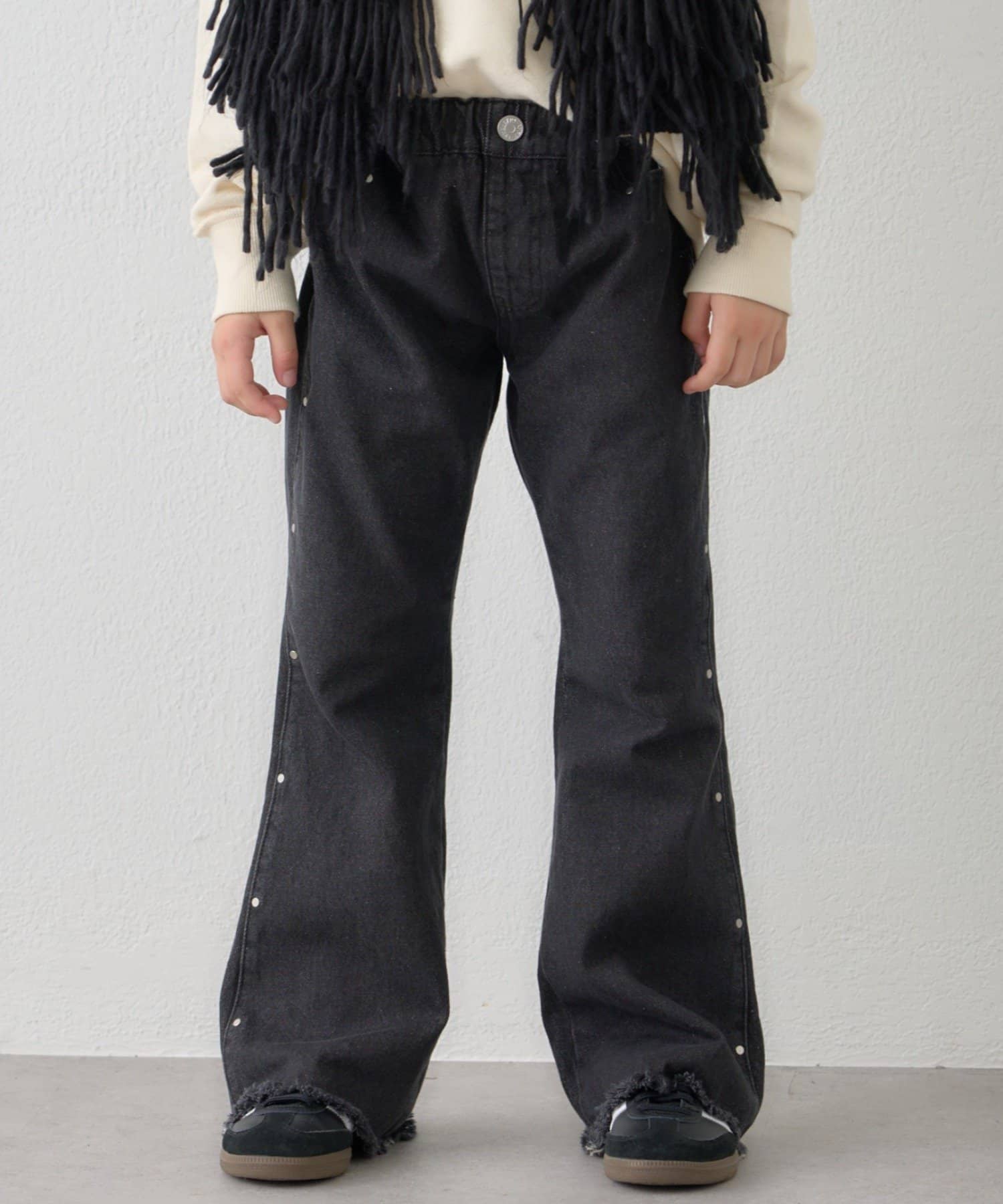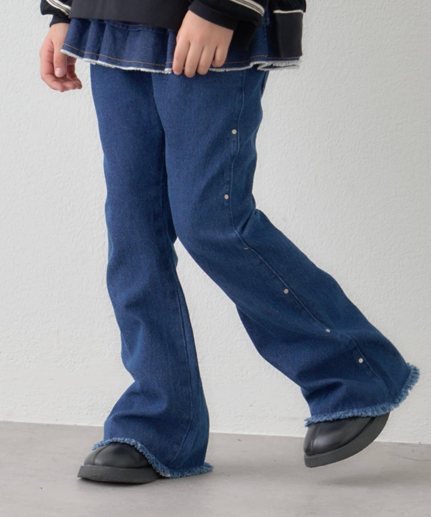 【KIDS】《ジュニアサイズあり》洗えるスタッズフレア柔らかデニム
