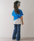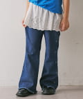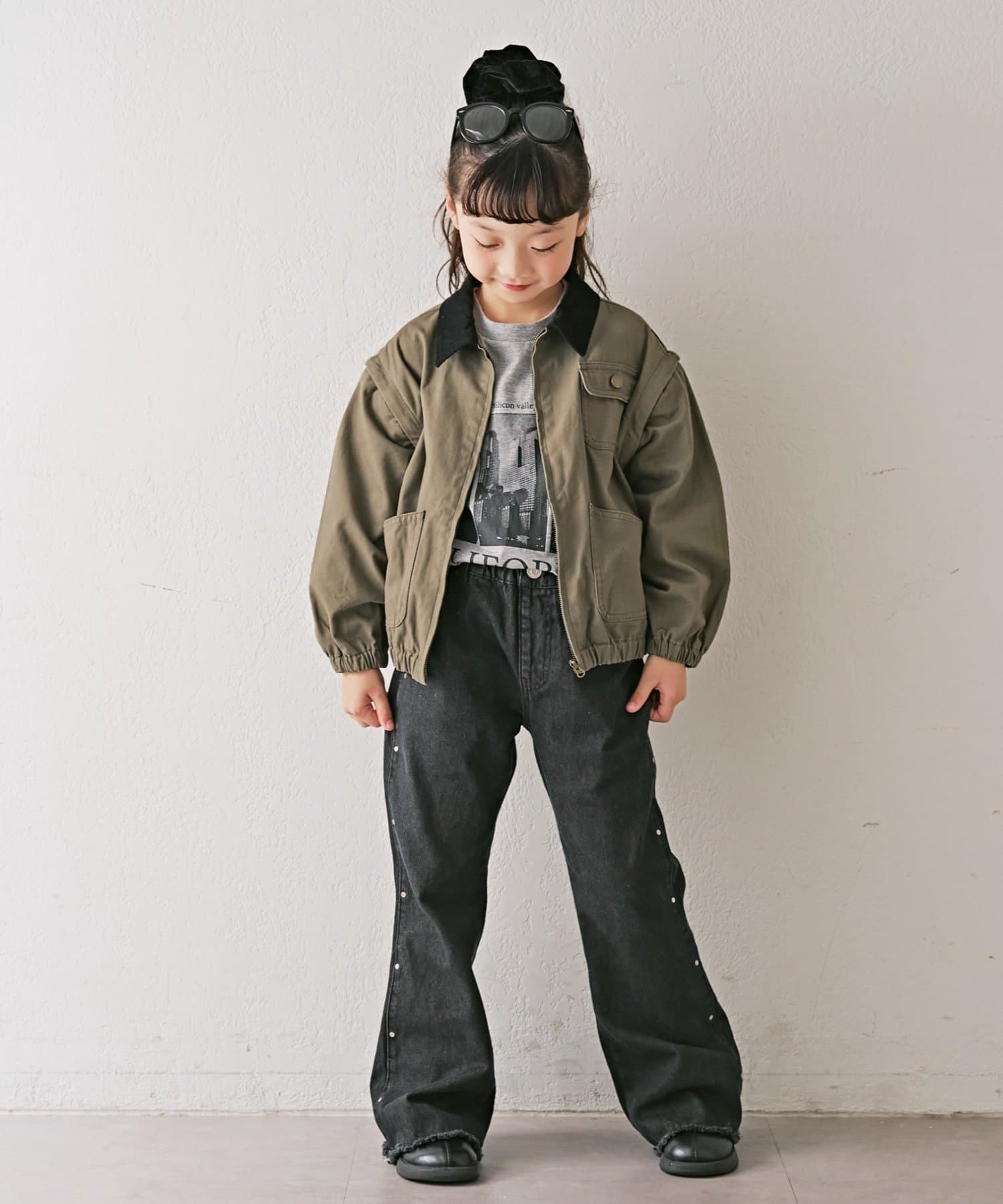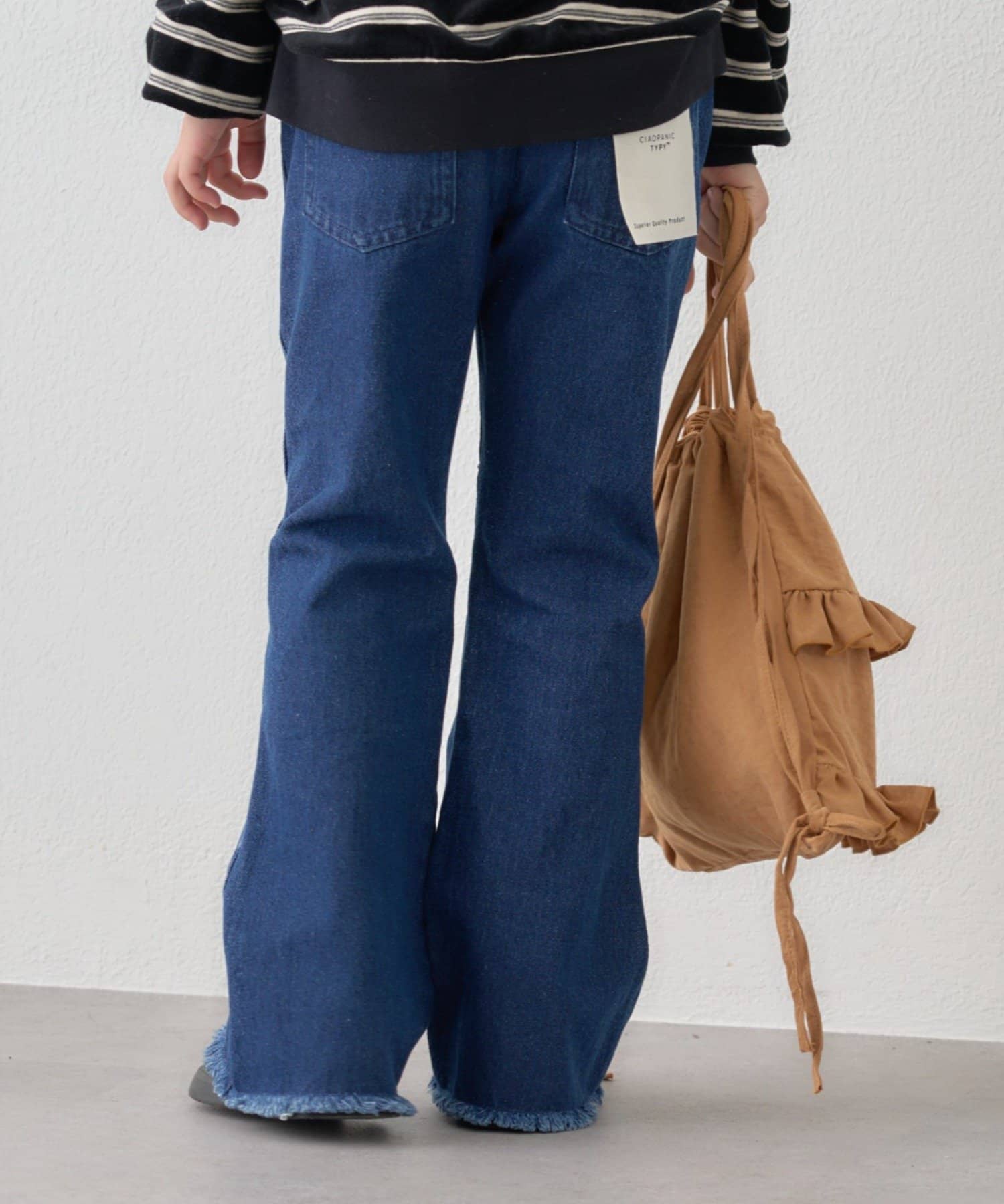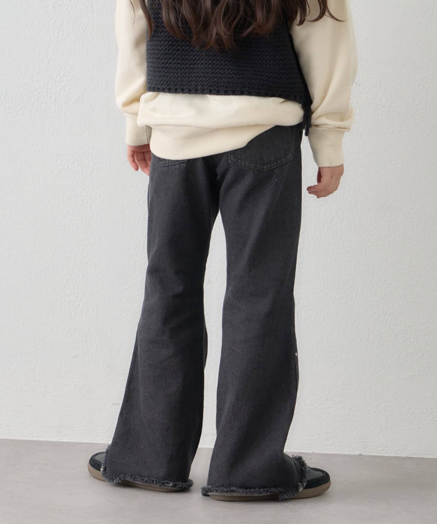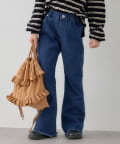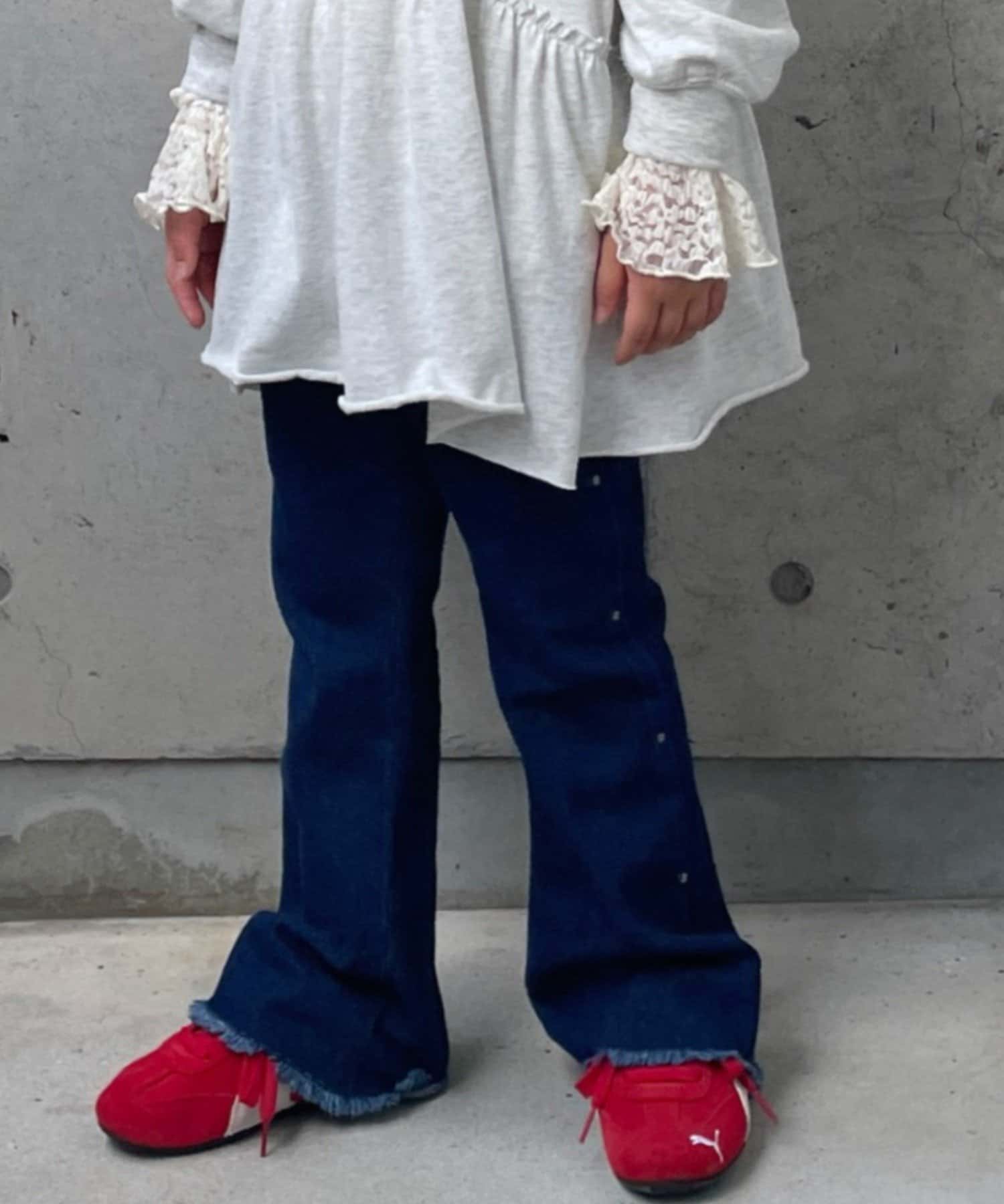【KIDS】《ジュニアサイズあり》洗えるスタッズフレア柔らかデニム