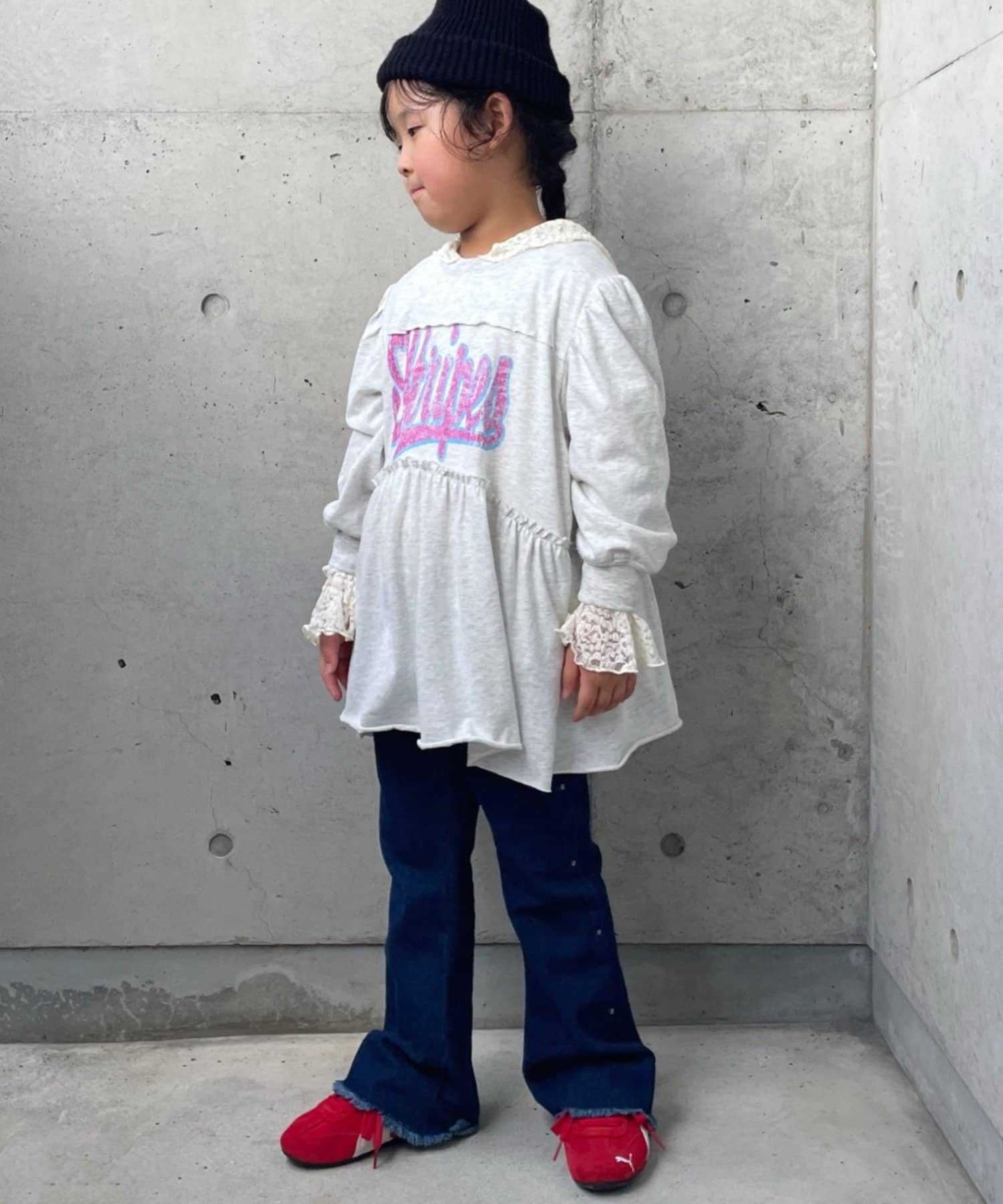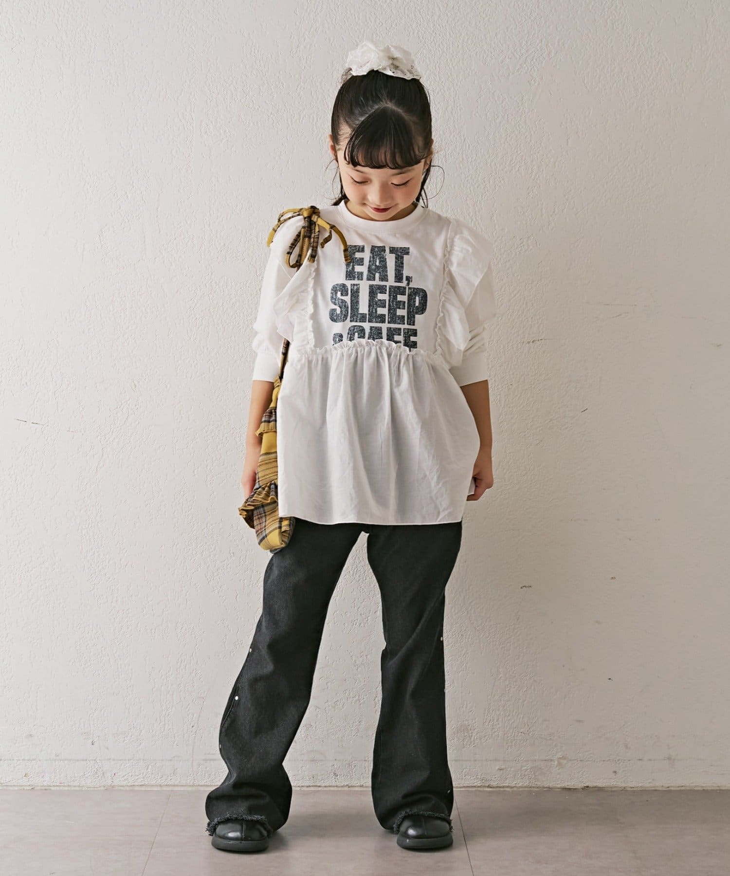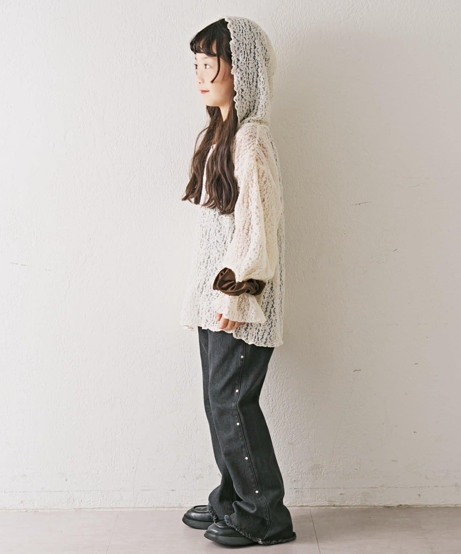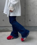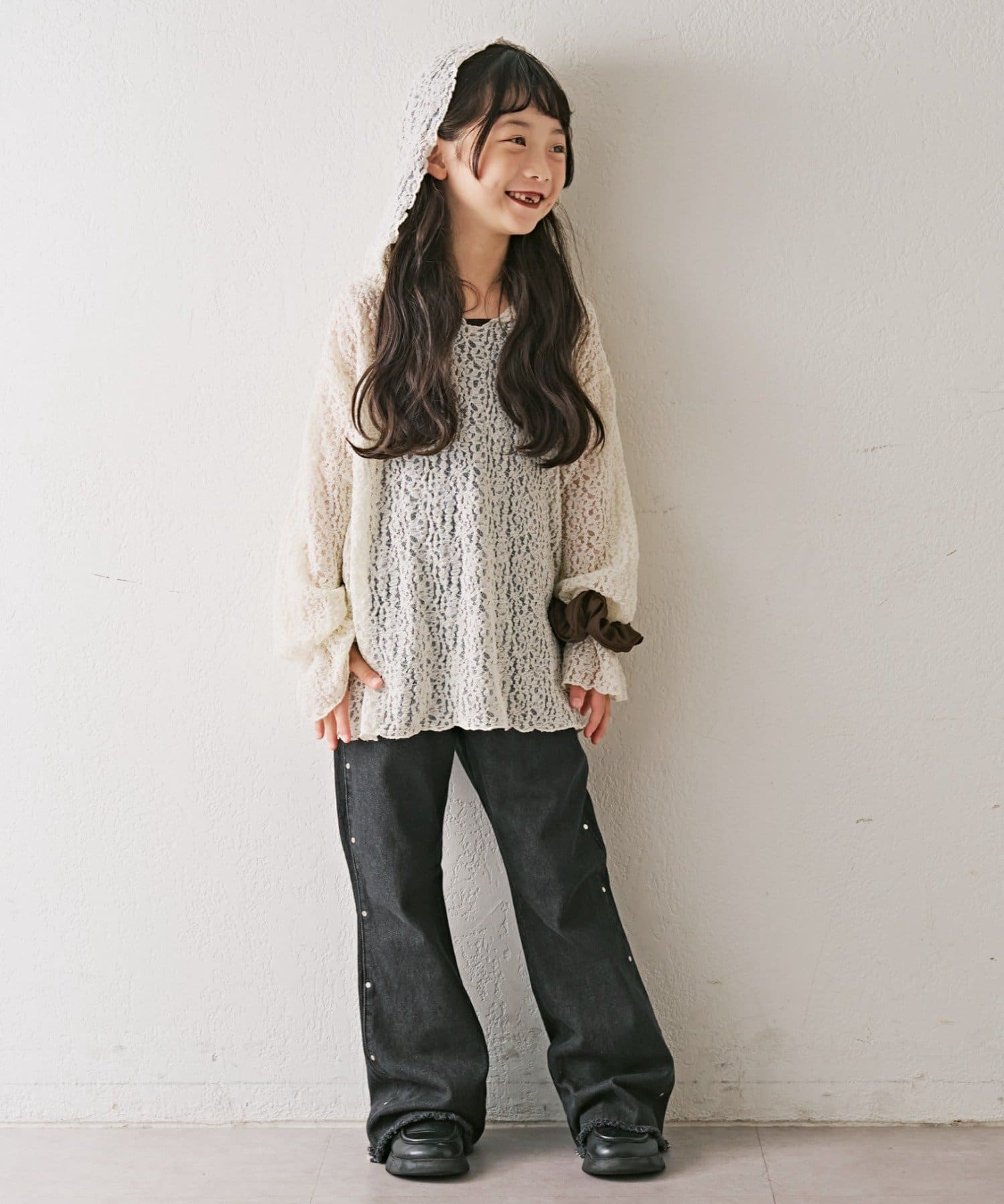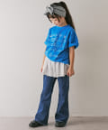 【KIDS】《ジュニアサイズあり》洗えるスタッズフレア柔らかデニム